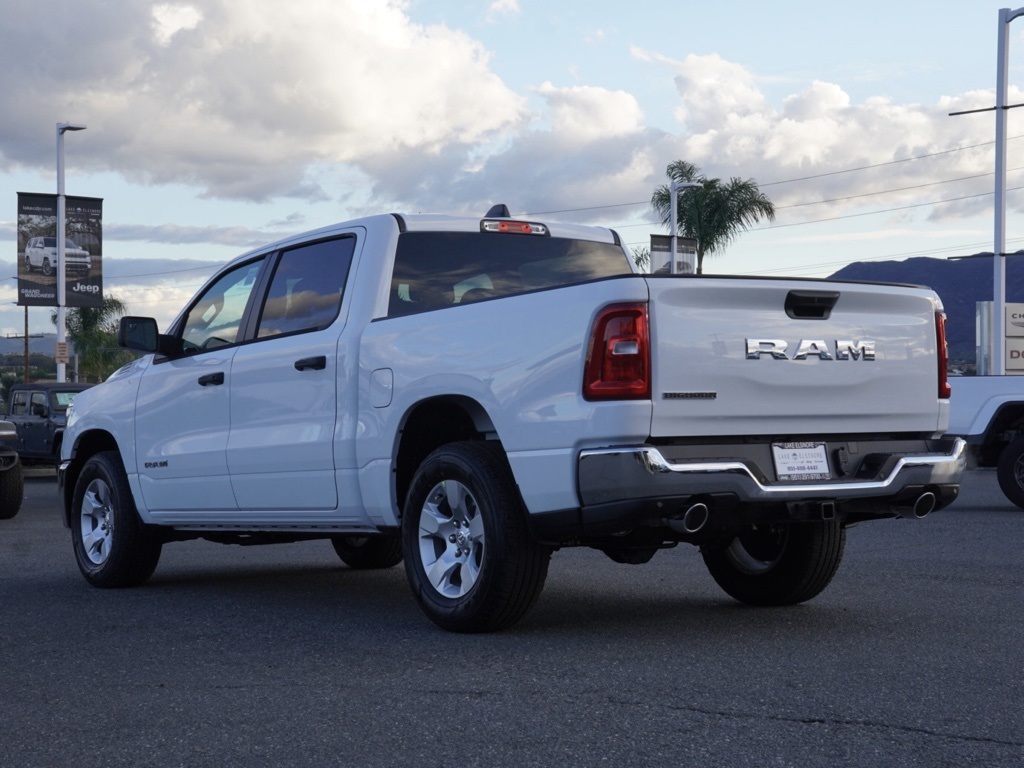New2026 Bright White Clearcoat Ram 1500 Big Horn 4D Crew Cab $7,336 off MSRP!All vehicles subject to prior sale. New vehicle pricing includes all offers and incentives. The estimated selling price that appears after calculating dealer offers is for informational purposes, only. You may not qualify for all the offers, incentives, discounts, or financing on this page. Offers, incentives, discounts, or financing are subject to expiration and other restrictions. See Lake Elsinore Chrysler Dodge Jeep Ram for qualifications and complete details or by calling (951) 291-9777. All prices plus government fees and taxes, any finance charges, $85 documentary fee, $33 electronic vehicle registration fee, any emission testing charge and $1.75 per new tire state tire fee. The advertised sale price does not apply to a lease. Offers and prices are not available to other dealers, wholesalers, or brokers. For out-of-state purchase customers, customers must be present to purchase. If shipping is required, dealership must facilitate, no exceptions. The sales price may not be combined with any other offer. The Factory Rebates may not be available on this vehicle if you elect to take advantage of a Special Alternative APR or Special Lease program. Some Factory Rebates are California Resident specific and may vary for residents of other states. The Advertised Price for any/all vehicles offered for sale does not include optional dealer pre-installed accessories or commercial upfits or aftermarket lift kit packages which can be purchased for an additional cost. Contact us for additional information at (951) 291-9773. The sales price includes factory rebates and trade in incentives on this vehicle that are valid on a cash or financed purchase only by an individual for their personal use. All prices will be honored as cash. Some Factory Rebates and trade in incentives are California Resident specific and may be qualifying based and they may also vary for residents of other states.ABS brakes, Active Cruise Control, Alloy wheels, Compass, Electronic Stability Control, Heated door mirrors, Illuminated entry, Low tire pressure warning, Manual Folding Exterior Mirrors, Quick Order Package 21Z Big Horn, Remote keyless entry, Traction control.Priced to Go! Unbeatable Prices: Our dynamic pricing ensures you get unbeatable prices on vehicles that not only fit your budget but also exceed your expectations. We understand the importance of getting the most value for your hard-earned money. Schedule Your Test Drive: Don’t miss out on this opportunity. Schedule your test drive now before the vehicle you desire is gone. Call us at (951) 291-9773 or visit our dealership at lakecdjr.com to experience the thrill of driving your new dream car. Join the ranks of our satisfied customers from Palm Springs, Lake Elsinore, San Jacinto, Sun City, Riverside, Menifee, Murrieta, Temecula, Moreno Valley, Perris, Escondido, Corona, and San Diego County. They’ve discovered the exceptional value we offer, and you can too.18/25 City/Highway MPG The equipment and photo display is intended to be used as an informational listing of the factory stock equipment and features for this vehicle. Equipment and features may have changed for this vehicle since its original digitally uploaded listing. All information is believed to be accurate but is not guaranteed. For specific accurate pricing information, mileage, availability, options, etc., please contact Lake Elsinore Chrysler Dodge Jeep Ram at (951) 291-9777. Applicable Incentives and Manufacturer Rebate and Expiration Breakdown’s for this vehicle are as follows. Net Cost Price does include:$1000 – 2026 West BC Bonus Cash . Exp. 01/05/2026 $3500 – 2026 National Retail Consumer Cash . Exp. 01/05/2026 $500 – 2026 National 2026 Military Bonus Cash . Exp. 01/05/2026