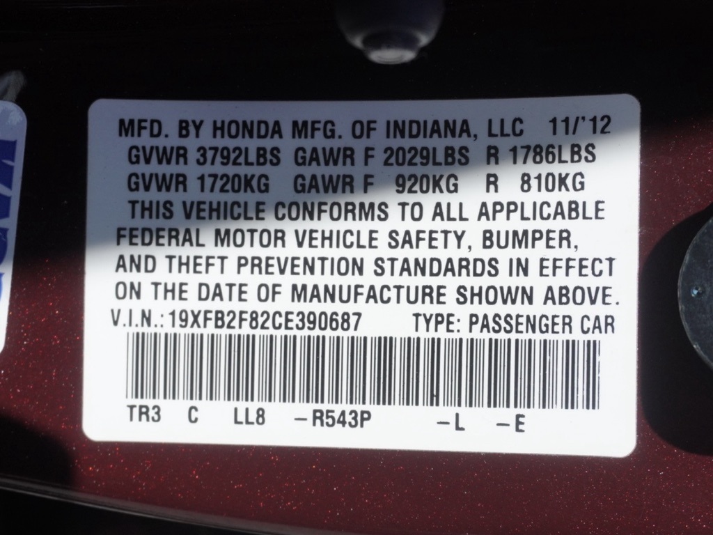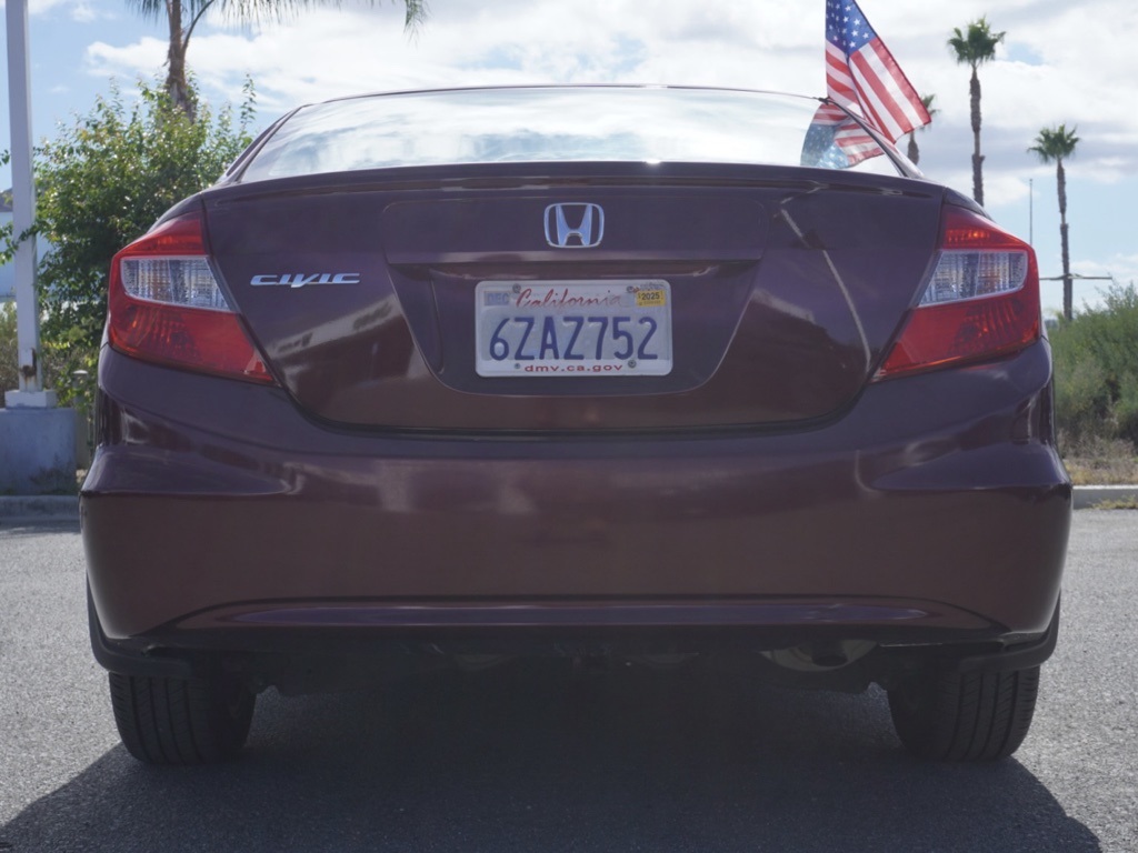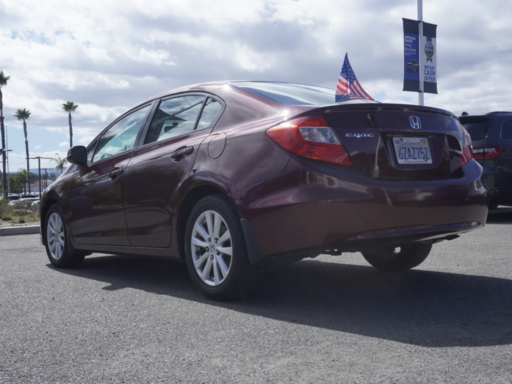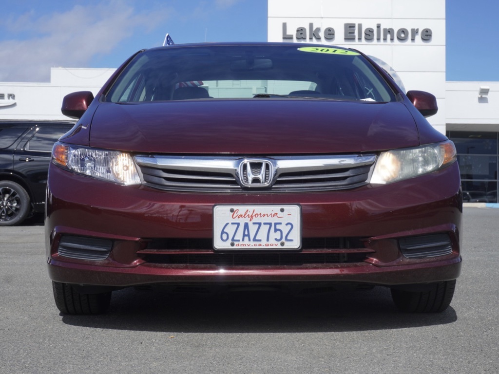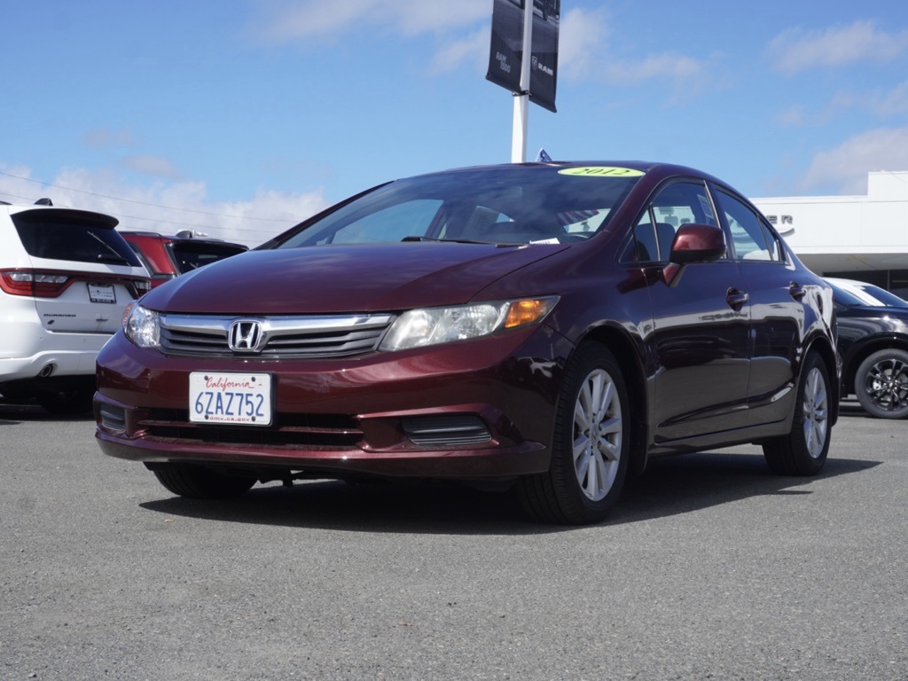 Used2012 Crimson Pearl Certified. Honda Civic 4D Sedan EX CARFAX One-Owner.Certification Program Details: • 3 Month/3,000 Mile Powertrain Limited Warranty (whichever comes first) • Covers repair or replacement of most major powertrain components, including transmission, engine and driveline. • 125-Point Vehicle Inspection. • CarFax Vehicle History Report. • A deductible applies per covered repair visit. Priced to Go! Unbeatable Prices: Our dynamic pricing ensures you get unbeatable prices on vehicles that not only fit your budget but also exceed your expectations. We understand the importance of getting the most value for your hard-earned money. Schedule Your Test Drive: Don’t miss out on this opportunity. Schedule your test drive now before the vehicle you desire is gone. Call us at (951) 291-9773 or visit our dealership at lakecdjr.com to experience the thrill of driving your new dream car. Join the ranks of our satisfied customers from Palm Springs, Lake Elsinore, San Jacinto, Sun City, Riverside, Menifee, Murrieta, Temecula, Moreno Valley, Perris, Escondido, Corona, and San Diego County. They’ve discovered the exceptional value we offer, and you can too.All vehicles subject to prior sale. The estimated selling price that appears after calculating dealer offers, financing and discounts is for informational purposes, only. You may not qualify for all the offers, incentives or financing on this page. Offers, incentives, or financing are subject to expiration, credit worthiness and other restrictions. See Lake Elsinore Chrysler Dodge Jeep Ram for qualifications and complete details or by calling (951) 291-9777. All prices plus government fees and taxes, any finance charges, $85 documentary fee, $33 electronic vehicle registration fee, any emission testing charge and $1.75 per new tire state tire fee. Offers and prices are not available to other dealers, wholesalers, or brokers. For out-of-state purchase customers, customers must be present to purchase. If shipping is required, dealership must facilitate, no exceptions. The sales price may not be combined with any other offer. The Advertised Price for any/all vehicles offered for sale does not include optional dealer pre-installed accessories or commercial upfits or aftermarket lift kit packages which can be purchased for an additional cost. Contact us for additional information at (951) 291-9773. All prices will be honored as cash.5-Speed Automatic FWD 2012 Honda Civic EX Sedan 4D KARR Bluetooth Security System Anti-Theft Vehicle Security System & Protection Program, Global Positioning Tracking System (S.W.A.T.) Guaranteed Protection & Recovery Program, Finishing Touch Complete Synthetic Paint Sealant Application & Protection Program, NitroFill Advantage Nitrogen Filled Tires & Protection Program, Genuine Mopar Wheel Locks Anti-Theft Vehicle Wheel Protection, ParkView® / Park Assist Rear Back–Up Camera, Blind–Spot and Cross–Path Detection, Bluetooth Car Audio Receiver, SiriusXM® Satelite Radio, Apple Car Play/Android Auto, Automatic Climate Control, Backup Camera, Civic EX Sedan 4D, 4D Sedan, 1.8L I4 SOHC 16V i-VTEC, 5-Speed Automatic, FWD, Crimson Pearl, Stone w/Cloth Seat Trim, 4-Wheel Disc Brakes, 6 Speakers, ABS brakes, Air Conditioning, Alloy wheels, AM/FM radio, AM/FM radio: SiriusXM, Brake assist, Bumpers: body-color, CD player, Cloth Seat Trim, Delay-off headlights, Driver door bin, Driver vanity mirror, Dual front impact airbags, Dual front side impact airbags, Electronic Stability Control, Four wheel independent suspension, Front anti-roll bar, Front Bucket Seats, Front Center Armrest, Front reading lights, Illuminated entry, Low tire pressure warning, Occupant sensing airbag, Outside temperature display, Overhead airbag, Panic alarm, Passenger door bin, Passenger vanity mirror, Power door mirrors, Power moonroof, Power steering, Power windows, Radio data system, Rear anti-roll bar, Rear seat center armrest, Rear window defroster, Reclining Front