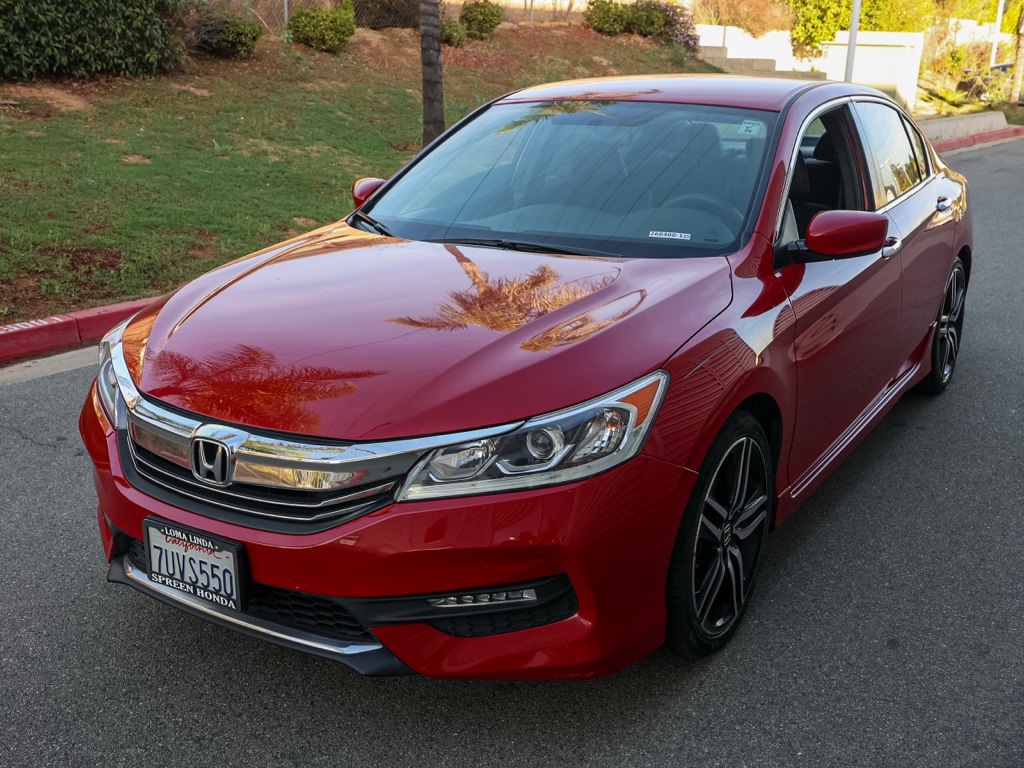 UsedThis 2016 San Marino Red Honda Accord Sport FWD is well equipped and includes these features and benefits: Accord Sport, 4D Sedan, 2.4L I4 DOHC i-VTEC 16V, CVT, FWD, San Marino Red, Black w/Cloth Seat Trim, 160-Watt AM/FM/CD Audio System, 19″ Alloy Wheels, 4 Speakers, 4-Wheel Disc Brakes, ABS brakes, Air Conditioning, Alloy wheels, AM/FM radio, Automatic temperature control, Brake assist, Bumpers: body-color, CD player, Cloth Seat Trim, Delay-off headlights, Driver door bin, Driver vanity mirror, Dual front impact airbags, Dual front side impact airbags, Electronic Stability Control, Exterior Parking Camera Rear, Four wheel independent suspension, Front anti-roll bar, Front Bucket Seats, Front Center Armrest, Front dual zone A/C, Front fog lights, Front reading lights, Fully automatic headlights, Illuminated entry, Leather Shift Knob, Low tire pressure warning, Occupant sensing airbag, Outside temperature display, Overhead airbag, Overhead console, Panic alarm, Passenger door bin, Passenger vanity mirror, Power door mirrors, Power driver seat, Power steering, Power windows, Radio data system, Rear anti-roll bar, Rear seat center armrest, Rear window defroster, Remote keyless entry, Security system, Speed control, Speed-sensing steering, Speed-Sensitive Wipers, Split folding rear seat, Spoiler, Steering wheel mounted audio controls, Tachometer, Telescoping steering wheel, Tilt steering wheel, Traction control, Trip computer, and Variably intermittent wipers. Recent Arrival!New Price!Odometer is 18739 miles below market average! 26/35 City/Highway MPG CARFAX One-Owner.We have many different makes and models available including a wide selection of cars, trucks, vans, and SUVs. Raceway Nissan in Riverside County has access to thousands of new and used vehicles which means we can find the right vehicle for you and your family. We are proud to serve the city of Riverside, all of the Metro Riverside County area, and the Inland Empire from our location in Moreno Valley. We are conveniently located in Riverside near the cities of San Bernardino, Redlands, Ontario, Corona, Perris, Beaumont, Temecula, Hemet and many others. We offer military discounts and work with many Credit Unions.