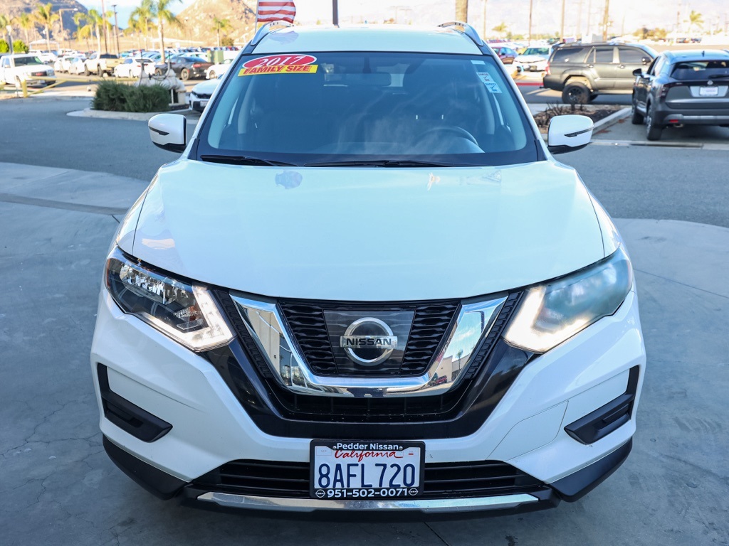 UsedThis 2017 Glacier White Nissan Rogue S FWD is well equipped and includes these features and benefits: 4 Speakers, 4-Wheel Disc Brakes, ABS brakes, Air Conditioning, AM/FM radio: SiriusXM, Anti-whiplash front head restraints, Black Splash Guards (Set of 4), Brake assist, Bumpers: body-color, CD player, Chrome Rear Bumper Protector, Cloth Seat Trim, Driver door bin, Driver vanity mirror, Dual front impact airbags, Dual front side impact airbags, Electronic Stability Control, Four wheel independent suspension, Front anti-roll bar, Front Bucket Seats, Front Center Armrest w/Storage, Front reading lights, Illuminated entry, Low tire pressure warning, Occupant sensing airbag, Outside temperature display, Overhead airbag, Overhead console, Panic alarm, Passenger door bin, Passenger vanity mirror, Power door mirrors, Power steering, Power windows, Radio data system, Radio: AM/FM/CD/AUX, Rear anti-roll bar, Rear seat center armrest, Rear window defroster, Rear window wiper, Remote keyless entry, Security system, Speed control, Speed-sensing steering, Split folding rear seat, Spoiler, Steering wheel mounted audio controls, Tachometer, Telescoping steering wheel, Tilt steering wheel, Traction control, Trip computer, Variably intermittent wipers, and Wheels: 17″ Steel w/Full Covers Plus 3 Month 3000 Mile Warranty. See Dealer For Details. We have many different makes and models available including a wide selection of cars, trucks, vans, and SUV’s. Don’t see something you like! Pedder Nissan has access to thousands of new and used vehicles which means we can find the right vehicle FOR YOU. The Advertised Price for any vehicle does not include dealer installed accessories. These accessories can be purchased for an additional cost. All vehicles subject to prior sale. All prices plus government fees and taxes, any finance charges, any dealer document processing charges ($85), any electronic filing charge, and any emission testing charge. Offers and prices not available to other dealers, wholesalers, or brokers. This price may not be combined with any other offer. While every reasonable effort is made to ensure the accuracy of this information, we are not responsible for any errors or omissions contained on these pages. We are proud to serve the Hemet area from our Auto Mall Location. We work with most Credit Unions and we offer Military and First Responder discounts. Please verify all pricing, vehicle equipment, and any additional information in question with Pedder Nissan (951) 766-1446. Apple Car Play/Android Auto, Automatic Climate Control, Backup Camera. 2017 Nissan Rogue SClean CARFAX. 26/33 City/Highway MPGAwards: * 2017 KBB.com 10 Best SUVs Under $25,000