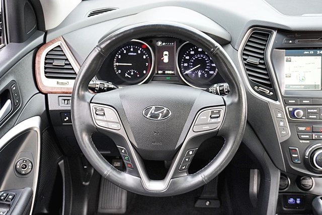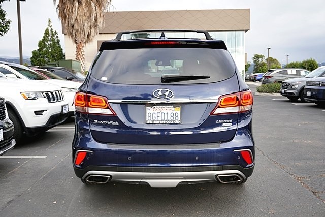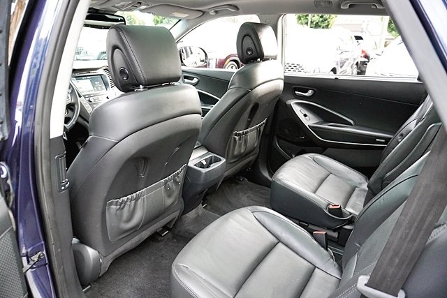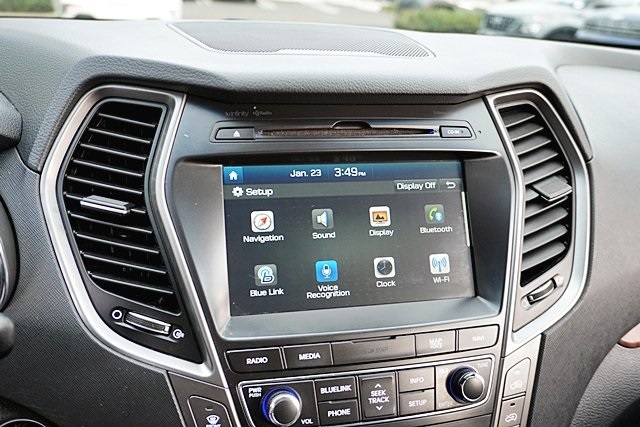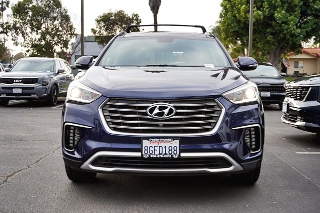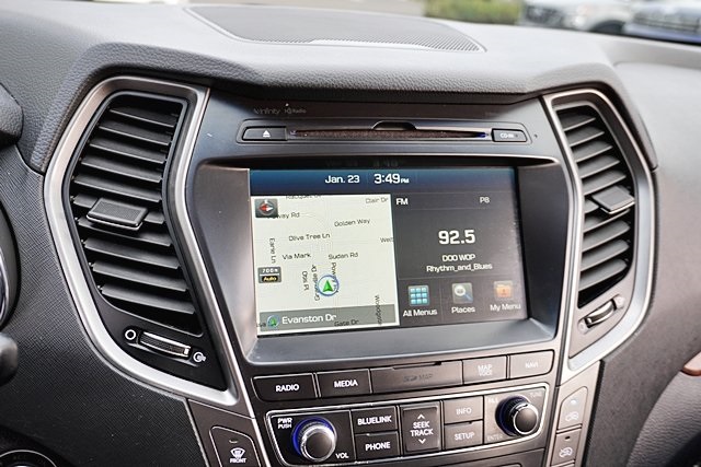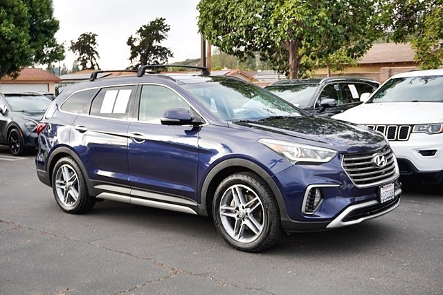 UsedThis 2018 Storm Blue Hyundai Santa Fe Limited Ultimate FWD is well equipped and includes these features and benefits: Option Group 01, Black Leather, 12 Speakers, 19″ Alloy Wheels, 3.041 Axle Ratio, 3rd row seats: split-bench, 4-Wheel Disc Brakes, ABS brakes, Air Conditioning, Alloy wheels, AM/FM radio: SiriusXM, Apple CarPlay & Android Auto, Auto-dimming Rear-View mirror, Automatic temperature control, Brake assist, Bumper Applique, Bumpers: body-color, Cargo Cover, Cargo Net, Cargo Tray, Carpeted Floor Mats, CD player, Compass, Delay-off headlights, Driver door bin, Driver vanity mirror, Dual front impact airbags, Dual front side impact airbags, Electronic Stability Control, Emergency communication system: Blue Link, Exterior Parking Camera Rear, First Aid Kit, Four wheel independent suspension, Front anti-roll bar, Front Bucket Seats, Front Center Armrest, Front dual zone A/C, Front fog lights, Front reading lights, Fully automatic headlights, Garage door transmitter: HomeLink, Heated & Ventilated Front Bucket Seats, Heated door mirrors, Heated front seats, Heated rear seats, Heated steering wheel, Illuminated entry, Knee airbag, Leather Seating Surfaces, Leather steering wheel, Low tire pressure warning, Memory seat, Navigation System, Occupant sensing airbag, Outside temperature display, Overhead airbag, Overhead console, Panic alarm, Passenger door bin, Passenger vanity mirror, Power door mirrors, Power driver seat, Power Liftgate, Power moonroof, Power passenger seat, Power steering, Power windows, Radio: AM/FM/HD/CD/MP3 Infinity Premium Audio, Rear anti-roll bar, Rear Parking Sensors, Rear window defroster, Rear window wiper, Remote keyless entry, Roof Rack Cross Bars, Roof rack: rails only, Security system, Speed control, Speed-sensing steering, Split folding rear seat, Spoiler, Steering wheel mounted audio controls, Tachometer, Telescoping steering wheel, Tilt steering wheel, Traction control, Trip computer, Turn signal indicator mirrors, Variably intermittent wipers, and Ventilated front seats. Apple Car Play/Android Auto, Automatic Climate Control, Backup Camera, Black Leather.CARFAX One-Owner.Poway Hyundai located at 13910 Poway Road, and Poway CDJR are both proud members of the Pedder Auto Group. Like our sister stores, we take great pride in serving all of San Diego County with friendly and professional sales, service and parts. We have one of the largest inventories of quality pre-owned vehicles in the county including a huge selection of Certified Pre-owned Hyundai products to choose from. We offer excellent financing, and a relaxed, no-pressure environment. All prices exclude government fees and taxes, any finance charges, any dealer document preparation charge, dealer installed options, and any emissions test charge. The equipment display is intended to be used as an informational listing of the factory stock equipment and features for this vehicle. Equipment and features may have changed for this vehicle. All information is believed to be accurate but is not guaranteed. For accurate information, pls see dealer for details. Some incentives are OAC and in lieu of others.
