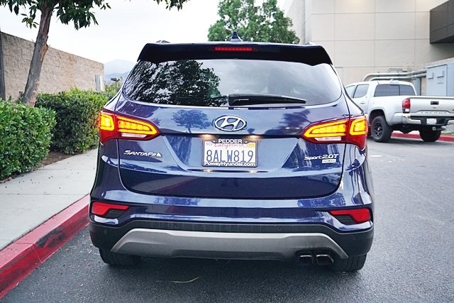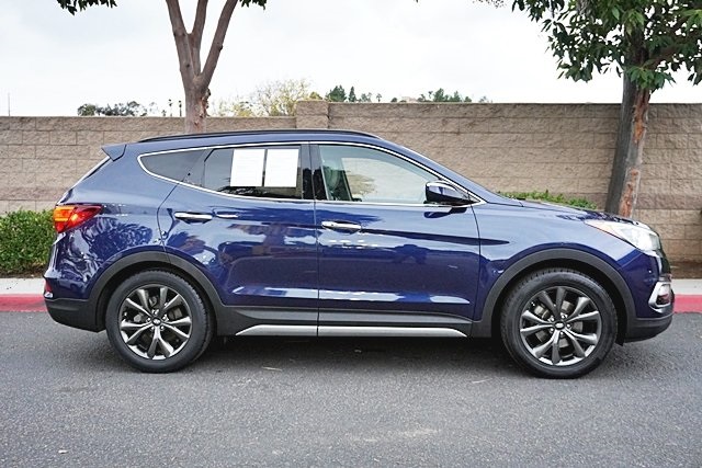 UsedThis 2018 Nightfall Blue Hyundai Santa Fe Sport 2.0T Ultimate FWD is well equipped and includes these features and benefits: Option Group 01, 12 Speakers, 4-Wheel Disc Brakes, ABS brakes, Air Conditioning, All Weather Floor Mats, Alloy wheels, AM/FM radio: SiriusXM, Apple CarPlay & Android Auto, Auto-dimming Rear-View mirror, Automatic temperature control, Axle Ratio 3.195, Brake assist, Bumpers: body-color, Cargo Cover, Cargo Net, Cargo Tray, CD player, Compass, Delay-off headlights, Driver door bin, Driver vanity mirror, Dual front impact airbags, Dual front side impact airbags, Electronic Stability Control, Emergency communication system: Blue Link, Exterior Parking Camera Rear, First Aid Kit, Four wheel independent suspension, Front anti-roll bar, Front Bucket Seats, Front Center Armrest, Front dual zone A/C, Front fog lights, Front reading lights, Fully automatic headlights, Garage door transmitter: HomeLink, Heated & Ventilated Multi-Adjustable Bucket Seats, Heated door mirrors, Heated front seats, Heated rear seats, Heated steering wheel, High-Intensity Discharge Headlights, Illuminated entry, Knee airbag, Leather Seating Surface, Leather steering wheel, Low tire pressure warning, Memory seat, Navigation System, Occupant sensing airbag, Outside temperature display, Overhead airbag, Overhead console, Panic alarm, Passenger door bin, Passenger vanity mirror, Power door mirrors, Power driver seat, Power Liftgate, Power moonroof, Power passenger seat, Power steering, Power windows, Radio: AM/FM/SiriusXM/CD/HD/MP3 Infinity Audio, Rear anti-roll bar, Rear Parking Sensors, Rear seat center armrest, Rear window defroster, Rear window wiper, Remote keyless entry, Roof rack: rails only, Security system, Speed control, Speed-sensing steering, Split folding rear seat, Spoiler, Steering wheel mounted audio controls, Tachometer, Telescoping steering wheel, Tilt steering wheel, Traction control, Trip computer, Turn signal indicator mirrors, Variably intermittent wipers, Ventilated front seats, and Wheels: 19″ x 7.5″ Alloy. Apple Car Play/Android Auto, Automatic Climate Control, Backup Camera.Priced below KBB Fair Purchase Price!CARFAX One-Owner.Poway Hyundai located at 13910 Poway Road, and Poway CDJR are both proud members of the Pedder Auto Group. Like our sister stores, we take great pride in serving all of San Diego County with friendly and professional sales, service and parts. We have one of the largest inventories of quality pre-owned vehicles in the county including a huge selection of Certified Pre-owned Hyundai products to choose from. We offer excellent financing, and a relaxed, no-pressure environment. All prices exclude government fees and taxes, any finance charges, any dealer document preparation charge, dealer installed options, and any emissions test charge. The equipment display is intended to be used as an informational listing of the factory stock equipment and features for this vehicle. Equipment and features may have changed for this vehicle. All information is believed to be accurate but is not guaranteed. For accurate information, pls see dealer for details. Some incentives are OAC and in lieu of others.