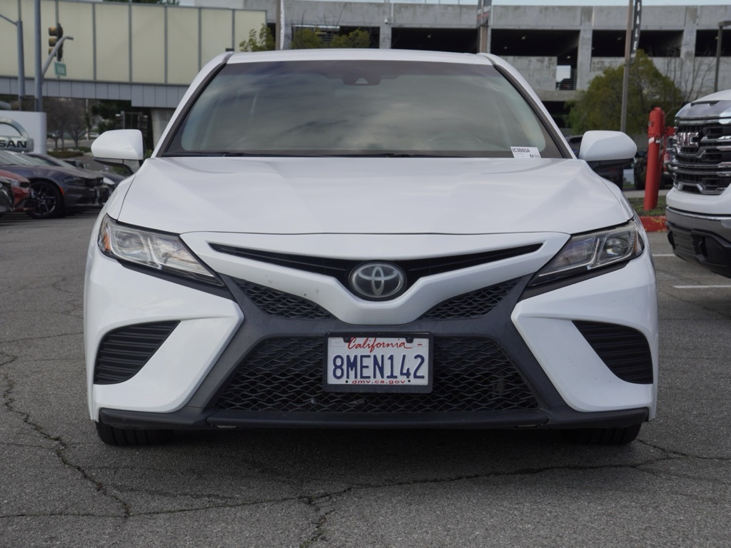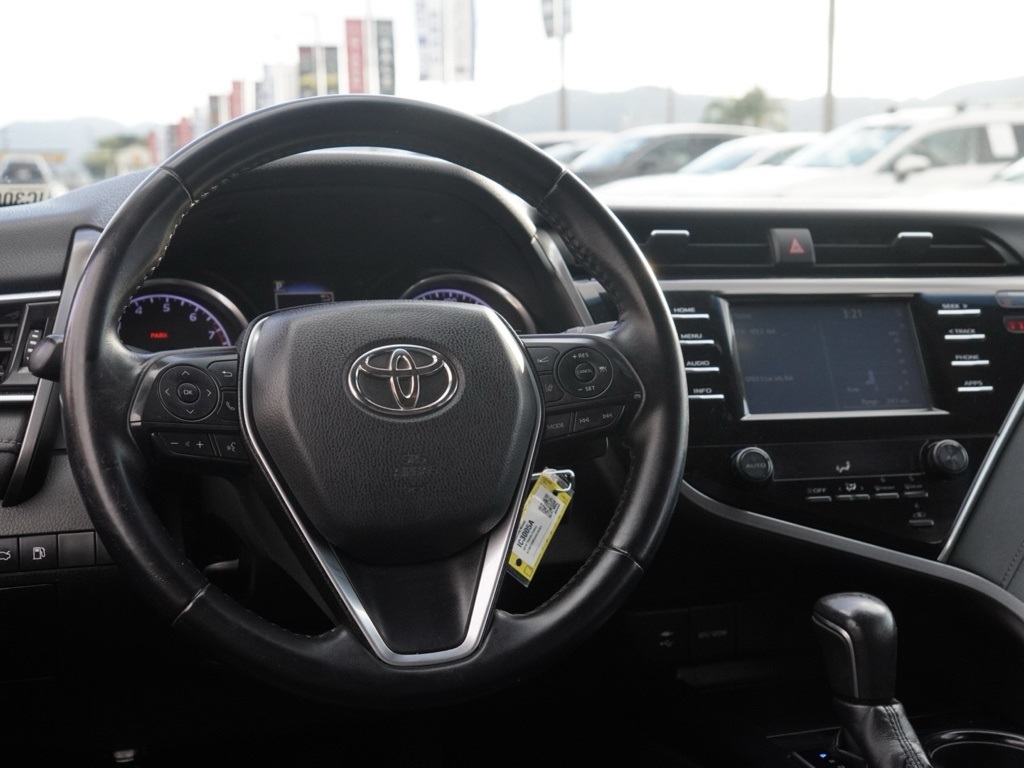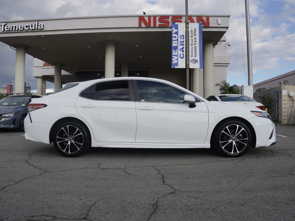 UsedCertified. 2018 Super White Clean CARFAX. Toyota Camry 4D Sedan SE Global Positioning Tracking System (S.W.A.T.) Guaranteed Protection & Recovery Program, Finishing Touch Complete (Synthetic Paint Sealant Application & Protection Program), NitroFill Advantage (Nitrogen Filled Tires & Protection Program), Genuine Nissan Wheel Locks (Anti-Theft Vehicle Wheel Protection), ParkView® / Park Assist Rear Back–Up Camera, Blind–Spot and Cross–Path Detection, Bluetooth Car Audio Receiver, SiriusXM® Satelite Radio, Apple Car Play/Android Auto, Automatic Climate Control, Camry SE Sedan 4D, 4D Sedan, 2.5L I4 DOHC 16V, 8-Speed Automatic, FWD, Super White, Black w/Fabric Seat Trim w/SofTex, 4-Wheel Disc Brakes, 6 Speakers, ABS brakes, Active Cruise Control, Air Conditioning, Alloy wheels, AM/FM radio, Auto High-beam Headlights, Automatic temperature control, Blind Spot Monitor w/Rear Cross Traffic Alert, Brake assist, Bumpers: body-color, Carpeted Floor Mats & Trunk Mat Package, Delay-off headlights, Door Edge Guards, Driver door bin, Driver vanity mirror, Dual Automatic Air Conditioning, Dual front impact airbags, Dual front side impact airbags, Electronic Stability Control, Exterior Parking Camera Rear, Fabric Seat Trim w/SofTex, Four wheel independent suspension, Front anti-roll bar, Front Bucket Seats, Front Center Armrest, Front reading lights, Fully automatic headlights, Illuminated entry, Knee airbag, Leather Shift Knob, Low tire pressure warning, Occupant sensing airbag, Outside temperature display, Overhead airbag, Overhead console, Panic alarm, Passenger door bin, Passenger vanity mirror, Power door mirrors, Power driver seat, Power steering, Power windows, Protection Package (Q1), Radio data system, Radio: Entune 3.0 Audio, Rear anti-roll bar, Rear Bumper Applique (Black), Rear reading lights, Rear seat center armrest, Rear side impact airbag, Rear window defroster, Remote keyless entry, Security system, Speed control, Speed-sensing steering, Split folding rear seat, Spoiler, Sport steering wheel, Steering wheel mounted audio controls, Tachometer, Telescoping steering wheel, Tilt steering wheel, Traction control, Trip computer, Variably intermittent wipers, Wheels: 8.0J x 18″ Black Machined-Finish Alloy.Certification Program Details: • 3 Month/3,000 Mile Powertrain Limited Warranty (whichever comes first) • Covers repair or replacement of most major powertrain components, including transmission, engine and driveline. • Multi-Point Vehicle Inspection. • CarFax Vehicle History Report. • A deductible applies per covered repair visit.Searching for an affordable, dependable car for your family? Temecula Nissan has you covered with the lowest prices in California and the biggest selection—over 300 used, certified pre-owned, nearly new, and low-mileage vehicles ready for you! Our no-haggle, limited-time sale prices make it easy to save big, but hurry—our inventory is flying off the lot, and when a car is gone, so is the deal. Don’t let credit worries hold you back; we approve everyone, whether you have bad credit, bankruptcy, or are a first-time buyer. We believe everyone deserves a quality car! Hablamos Español y negociamos en su idioma—serving all families in our community. Imagine driving home today with zero to little money down and payments as low as $199 a month on an extensive selection of vehicles. Your dream car fits your budget and exceeds your expectations. Don’t miss this chance—schedule your test drive now and take advantage of these exclusive savings before they disappear! Call us at (951) 972-8441 or start online at TemeculaNissan.Com. All prices plus government fees and taxes, any finance charges, $85 documentary fee, $33 electronic vehicle registration fee, emission testing charges, and $1.75 per new tire state tire fee. Advertised prices exclude optional dealer pre-installed accessories, available for additional cost. Join thousands of happy families from Palm Springs, Inland Empire,
