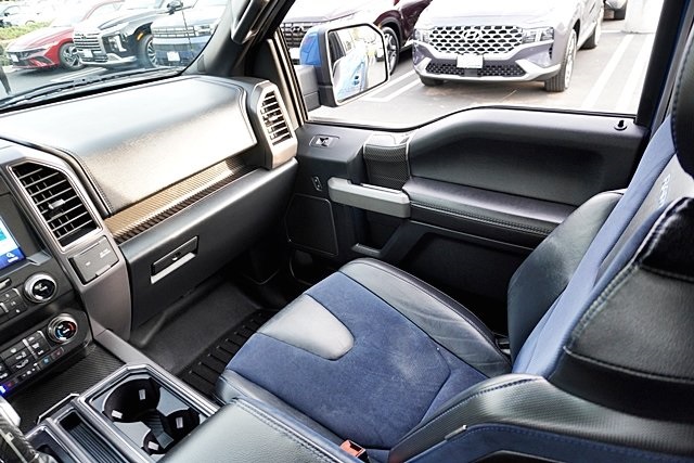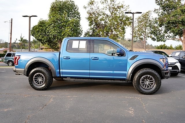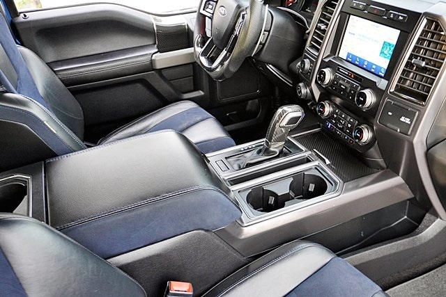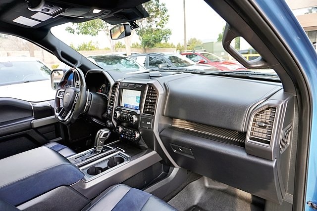 UsedThis 2019 Blue Ford F-150 Raptor 4WD is well equipped and includes these features and benefits: Equipment Group 802A Luxury (10-Way Power Driver & Passenger Seats, 360 Degree Camera, 4.10 Front Axle w/Torsen Differential, 8″ Productivity Screen, Advanced Security Pack, Ambient Lighting – Ice Blue Color Only, BLIS Blind Spot Information System, Dual-Zone Electronic Automatic Temperature Control, Heated Steering Wheel, Inflatable Rear Safety Belts, Integrated Trailer Brake Controller, Intelligent Access w/Push-Button Start, LED Box Lighting, LED Sideview Mirror Spotlights, Memory System (Seat, Pedal, Exterior Mirror), Power Glass Heated Sideview Mirrors, Power Tilt/Telescoping Steering Column w/Memory, Power-Adjustable Pedals, Power-Sliding Rear Window, Pro Trailer Backup Assist, Radio: B&O Sound System by Bang & Olufsen, Remote Start System w/Remote Tailgate Release, SYNC 3, Tailgate Applique FORD, Universal Garage Door Opener, and Voice-Activated Touchscreen Navigation), GVWR: 7,050 lbs Payload Package, Raptor Interior Color Blue Accent Package (Recaro Unique Leather Insert 40/Console/40 Seats and Unique High Gloss Black Carbon Fiber Shift Knob), Raptor Technology Package (Adaptive Cruise Control w/Stop-and-Go, Lane Keeping System w/Alert & Assist, and Rain-Sensing Windshield Wipers), 4WD, 17″ Cast Aluminum Wheels, 17″ Forged Aluminum Bead-Lock Capable Wheels, 4-Wheel Disc Brakes, 7 Speakers, 8-Way Power Driver’s Seat w/Power Lumbar, ABS brakes, Air Conditioning, Alloy wheels, AM/FM radio: SiriusXM, AppLink/Apple CarPlay and Android Auto, Auto High-beam Headlights, Auto-dimming Rear-View mirror, Brake assist, Compass, Delay-off headlights, Driver door bin, Driver vanity mirror, Dual front impact airbags, Dual front side impact airbags, Electronic Locking w/4.10 Axle Ratio, Electronic Stability Control, Emergency communication system: SYNC 3 911 Assist, Exterior Parking Camera Rear, Front anti-roll bar, Front Bucket Seats, Front Center Armrest, Front reading lights, Front wheel independent suspension, Fully automatic headlights, Heated Leather 40/Console/40 Front Seats, Illuminated entry, Leather steering wheel, Low tire pressure warning, Occupant sensing airbag, Outside temperature display, Overhead airbag, Overhead console, Panic alarm, Passenger door bin, Passenger vanity mirror, Power door mirrors, Power driver seat, Power steering, Power windows, Radio data system, Radio: SiriusXM w/7 Speakers, Rear Parking Sensors, Rear reading lights, Rear step bumper, Rear window defroster, Remote keyless entry, Remote Start System, Second-Row Heated Seats, Security system, Speed control, Speed-sensing steering, Split folding rear seat, Steering wheel mounted audio controls, Tachometer, Tailgate Step w/Tailgate Lift Assist, Telescoping steering wheel, Tilt steering wheel, Traction control, Trip computer, Unique Cloth Trim Seats, and Variably intermittent wipers. Apple Car Play/Android Auto, Automatic Climate Control, Backup Camera, 4WD.Poway Hyundai located at 13910 Poway Road, and Poway CDJR are both proud members of the Pedder Auto Group. Like our sister stores, we take great pride in serving all of San Diego County with friendly and professional sales, service and parts. We have one of the largest inventories of quality pre-owned vehicles in the county including a huge selection of Certified Pre-owned Hyundai products to choose from. We offer excellent financing, and a relaxed, no-pressure environment. All prices exclude government fees and taxes, any finance charges, any dealer document preparation charge, dealer installed options, and any emissions test charge. The equipment display is intended to be used as an informational listing of the factory stock equipment and features for this vehicle. Equipment and features may have changed for this vehicle. All information is believed to be accurate but is not guaranteed. For accurate information, pls see dealer for details. Some incentives are OAC and in lieu of others.