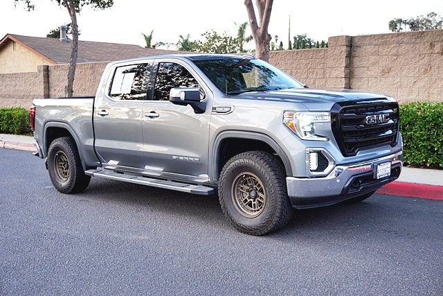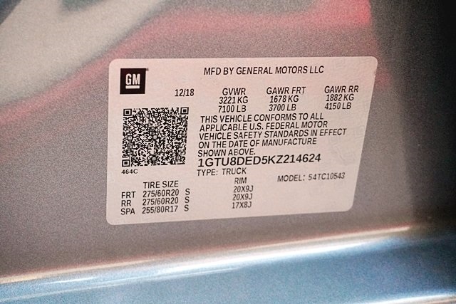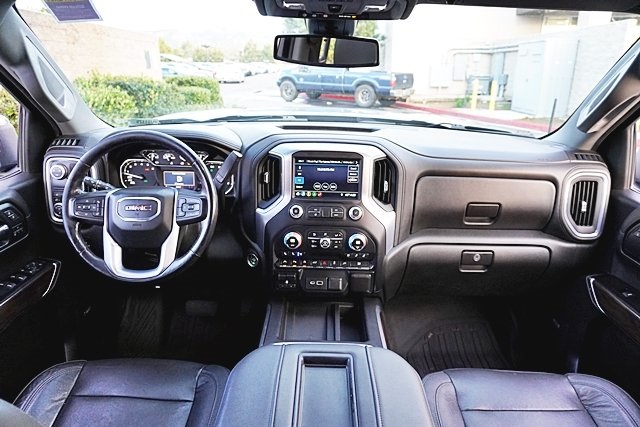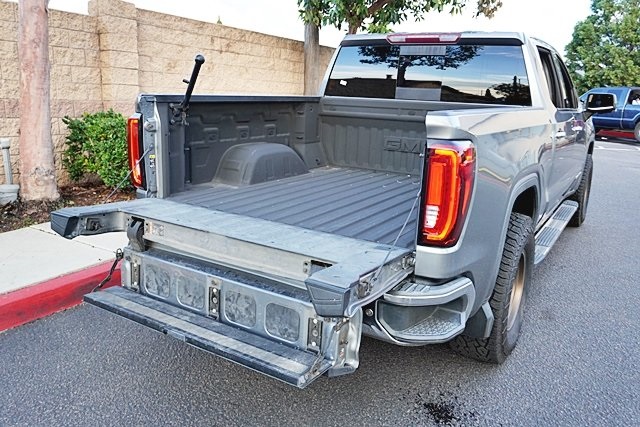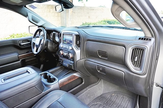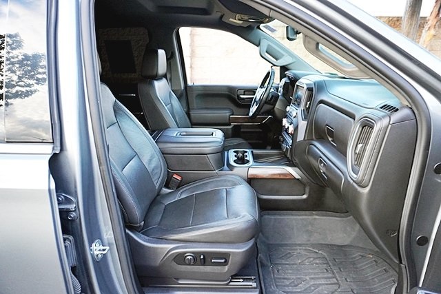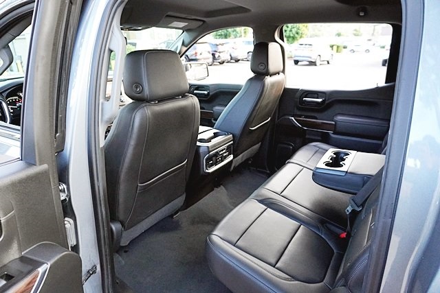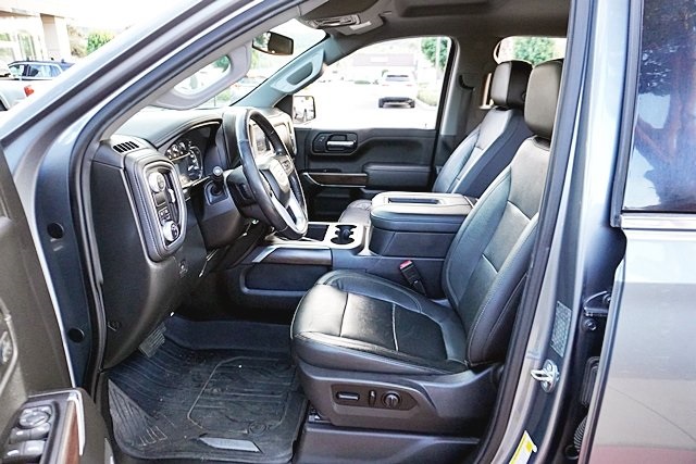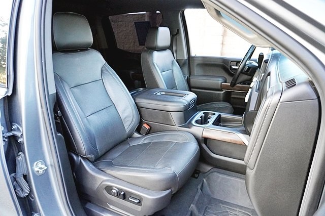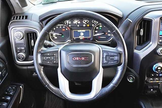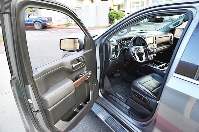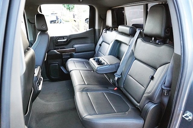 This 2019 Satin Steel Metallic GMC Sierra 1500 SLT RWD is well equipped and includes these features and benefits: Driver Alert Package I (Front Frame-Mounted Black Recovery Hooks, Lane Change Alert w/Side Blind Zone Alert, Perimeter Lighting, Rear Cross Traffic Alert, and Ultrasonic Front & Rear Park Assist), Driver Alert Package II (Following Distance Indicator, Forward Collision Alert, Front Pedestrian Braking, IntelliBeam Automatic High Beam On/Off, Lane Keep Assist w/Lane Departure Warning, Low Speed Forward Automatic Braking, and Safety Alert Seat), Max Trailering Package (220 Amp Alternator, Enhanced Cooling Radiator, Heavier Duty Rear Springs, and Increased RGAWR), Preferred Equipment Group 4SA (12-Volt Rear Auxiliary Power Outlet, 120-Volt Bed Mounted Power Outlet, 120-Volt Instrument Panel Power Outlet, 170 Amp Alternator, Auxiliary External Transmission Oil Cooler, Chrome Grille, Color-Keyed Carpeting Floor Covering, Compass, Deep-Tinted Glass, Electric Rear-Window Defogger, Electrical Lock Control Steering Column, GMC 4G LTE, GMC Connected Access, HD Radio, Heated Driver & Front Passenger Seating, Heavy-Duty Rear Locking Differential, Hitch Guidance, Hitch Guidance w/Hitch View, In-Vehicle Trailering App, Integrated Trailer Brake Controller, Keyless Open & Start, LED Cargo Area Lighting, Manual Tilt-Wheel & Telescoping Steering Column, OnStar & GMC Connected Services Capable, Power Door Locks, Power Front Passenger Windows w/Express Up/Down, Power Front Windows w/Driver Express Up/Down, Power Rear Windows w/Express Down, Rear Dual USB Charging-Only Ports, Rear Wheelhouse Liners, Remote Vehicle Starter System, Steering Wheel Audio Controls, and Theft Deterrent System (Unauthorized Entry)), SLT Convenience Package (2 USB Ports, 2 USB Ports (1st Row), Floor Mounted Console, Front Bucket Seats, Heated 2nd Row Outboard Seats, Power Sliding Rear Window w/Rear Defogger, Universal Home Remote, and Ventilated Driver & Front Passenger Seats), SLT Preferred Package (Premium Bose 7-Speaker Sound System, Radio: Premium GMC Infotainment Sys w/Navigation, SiriusXM Radio, and Wireless Charging), SLT Premium Plus Package (Chrome Assist Steps, Spray-On Pickup Bed Liner w/GMC Logo, and Trailer Tire Pressure Monitor System), Trailering Package, 8-Speed Automatic, Jet Black Leather, 10-Way Power Driver Seat Adjuster w/Lumbar, 10-Way Power Passenger Seat Adjuster w/Lumbar, 20″ x 9″ Polished Aluminum Wheels, 4-Wheel Disc Brakes, 6 Speakers, 6-Speaker Audio System Feature, ABS brakes, Air Conditioning, Alloy wheels, AM/FM radio: SiriusXM, Apple CarPlay/Android Auto, Auto-dimming door mirrors, Auto-dimming Rear-View mirror, Automatic temperature control, Brake assist, Bumpers: chrome, Delay-off headlights, Driver door bin, Driver Memory, Driver vanity mirror, Dual front impact airbags, Dual front side impact airbags, Electronic Stability Control, Front & Rear Black Molded Splash Guards (LPO), Front 40/20/40 Split-Bench Seat, Front anti-roll bar, Front Center Armrest w/Storage, Front dual zone A/C, Front fog lights, Front License Plate Kit, Front reading lights, Front wheel independent suspension, Fully automatic headlights, Heated door mirrors, Heated front seats, Heated steering wheel, Heavy Duty Suspension, Illuminated entry, Low tire pressure warning, Memory seat, Occupant sensing airbag, Outside temperature display, Overhead airbag, Overhead console, Panic alarm, Passenger door bin, Passenger vanity mirror, Perforated Leather-Appointed Seat Trim, Power door mirrors, Power driver seat, Power passenger seat, Power steering, Power windows, Premium audio system: GMC Infotainment System, Radio data system, Radio: Premium GMC Infotainment Sys w/Multi-Touch, Rear reading lights, Rear seat center armrest, Rear step bumper, Rear window defroster, Remote keyless entry, Security system, Speed control, Speed-sensing steering, Split folding rear seat, Steering wheel mounted audio controls, Tachometer, Telescoping steering wheel, Tilt steering wheel,