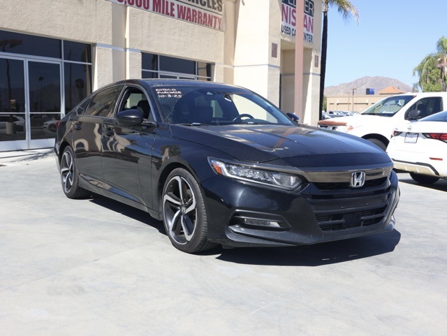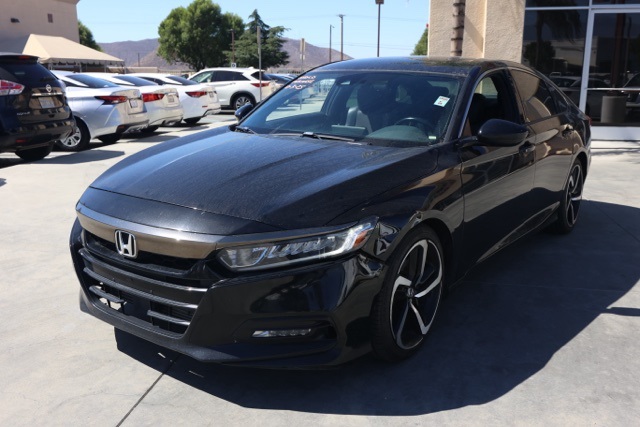 UsedThis 2019 Crystal Black Pearl Honda Accord Sport FWD is well equipped and includes these features and benefits: Black Cloth, 4-Wheel Disc Brakes, 8 Speakers, ABS brakes, Air Conditioning, Alloy wheels, AM/FM radio, Apple CarPlay/Android Auto, Auto High-beam Headlights, Automatic temperature control, Brake assist, Bumpers: body-color, Cloth Seat Trim, Delay-off headlights, Driver door bin, Driver vanity mirror, Dual front impact airbags, Dual front side impact airbags, Electronic Stability Control, Emergency communication system: HondaLink, Exterior Parking Camera Rear, Forward collision: Collision Mitigation Braking System (CMBS) + FCW mitigation, Four wheel independent suspension, Front anti-roll bar, Front Bucket Seats, Front Center Armrest, Front dual zone A/C, Front fog lights, Front reading lights, Fully automatic headlights, Illuminated entry, Knee airbag, Leather Shift Knob, Leather steering wheel, Low tire pressure warning, Occupant sensing airbag, Outside temperature display, Overhead airbag, Overhead console, Panic alarm, Passenger door bin, Passenger vanity mirror, Power door mirrors, Power driver seat, Power steering, Power windows, Radio data system, Radio: 180-Watt AM/FM Audio System, Rear anti-roll bar, Rear seat center armrest, Rear window defroster, Remote keyless entry, Security system, Speed control, Speed-sensing steering, Speed-Sensitive Wipers, Split folding rear seat, Spoiler, Steering wheel mounted audio controls, Tachometer, Telescoping steering wheel, Tilt steering wheel, Traction control, Trip computer, Variably intermittent wipers, and Wheels: 19″ Machine-Finished Alloy w/Black Inserts Plus 3 Month 3000 Mile Warranty. See Dealer For Details. We have many different makes and models available including a wide selection of cars, trucks, vans, and SUV’s. Don’t see something you like! Pedder Nissan has access to thousands of new and used vehicles which means we can find the right vehicle FOR YOU. The Advertised Price for any vehicle does not include dealer installed accessories. These accessories can be purchased for an additional cost. All vehicles subject to prior sale. All prices plus government fees and taxes, any finance charges, any dealer document processing charges ($85), any electronic filing charge, and any emission testing charge. Offers and prices not available to other dealers, wholesalers, or brokers. This price may not be combined with any other offer. While every reasonable effort is made to ensure the accuracy of this information, we are not responsible for any errors or omissions contained on these pages. We are proud to serve the Hemet area from our Auto Mall Location. We work with most Credit Unions and we offer Military and First Responder discounts. Please verify all pricing, vehicle equipment, and any additional information in question with Pedder Nissan (951) 766-1446. Apple Car Play/Android Auto, Automatic Climate Control, Backup Camera, Black Cloth. 2019 Honda Accord SportClean CARFAX. 26/35 City/Highway MPGAwards: * JD Power Automotive Performance, Execution and Layout (APEAL) Study * ALG Residual Value Awards, Residual Value Awards