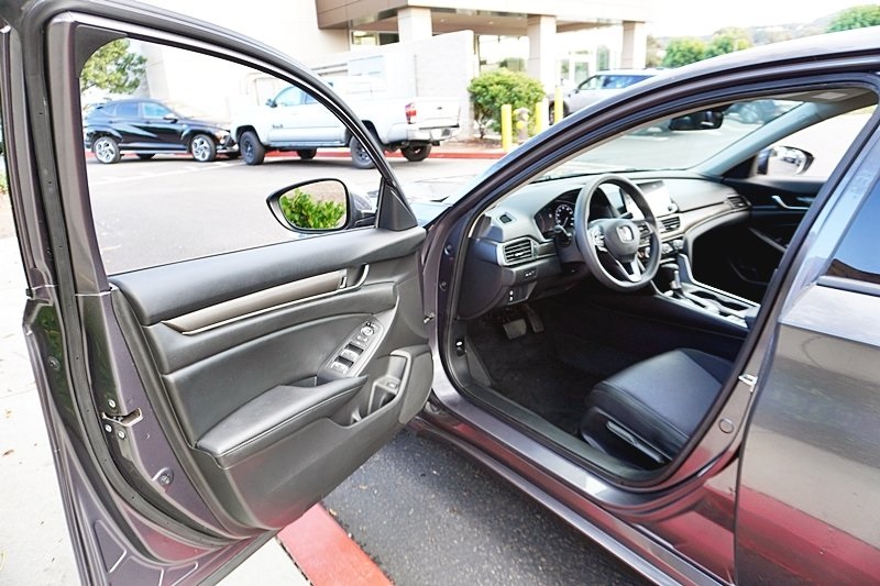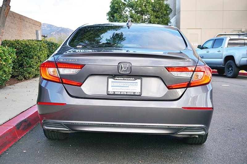 UsedThis 2019 Gray Honda Accord LX FWD is well equipped and includes these features and benefits: Black Cloth, 4 Speakers, 4-Wheel Disc Brakes, ABS brakes, Air Conditioning, Alloy wheels, AM/FM radio, Auto High-beam Headlights, Automatic temperature control, Brake assist, Bumpers: body-color, Cloth Seat Trim, Delay-off headlights, Driver door bin, Driver vanity mirror, Dual front impact airbags, Dual front side impact airbags, Electronic Stability Control, Exterior Parking Camera Rear, Forward collision: Collision Mitigation Braking System (CMBS) + FCW mitigation, Four wheel independent suspension, Front anti-roll bar, Front Bucket Seats, Front Center Armrest, Front dual zone A/C, Front reading lights, Fully automatic headlights, Illuminated entry, Knee airbag, Low tire pressure warning, Occupant sensing airbag, Outside temperature display, Overhead airbag, Overhead console, Panic alarm, Passenger door bin, Passenger vanity mirror, Power door mirrors, Power steering, Power windows, Radio data system, Radio: 160-Watt AM/FM Audio System, Rear anti-roll bar, Rear seat center armrest, Rear window defroster, Remote keyless entry, Security system, Speed control, Speed-sensing steering, Speed-Sensitive Wipers, Steering wheel mounted audio controls, Tachometer, Telescoping steering wheel, Tilt steering wheel, Traction control, Trip computer, Variably intermittent wipers, and Wheels: 17″ Silver-Painted Alloy. Apple Car Play/Android Auto, Automatic Climate Control, Backup Camera, Black Cloth.CARFAX One-Owner.New Price!Poway Hyundai located at 13910 Poway Road, and Poway CDJR are both proud members of the Pedder Auto Group. Like our sister stores, we take great pride in serving all of San Diego County with friendly and professional sales, service and parts. We have one of the largest inventories of quality pre-owned vehicles in the county including a huge selection of Certified Pre-owned Hyundai products to choose from. We offer excellent financing, and a relaxed, no-pressure environment. All prices exclude government fees and taxes, any finance charges, any dealer document preparation charge, dealer installed options, and any emissions test charge. The equipment display is intended to be used as an informational listing of the factory stock equipment and features for this vehicle. Equipment and features may have changed for this vehicle. All information is believed to be accurate but is not guaranteed. For accurate information, pls see dealer for details. Some incentives are OAC and in lieu of others.
