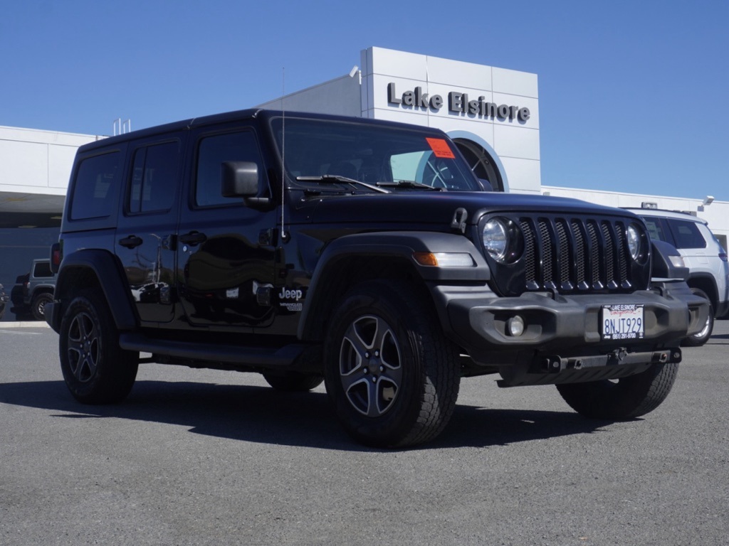 Used2019 Black Clearcoat Certified. Jeep Wrangler 4D Sport Utility 4-Door Sport S Clean CARFAX. Priced below KBB Fair Purchase Price!Certification Program Details: • 7 Year/100,000 Mile Powertrain Limited Warranty (whichever comes first) • Covers repair or replacement of most major powertrain components, including transmission, engine and driveline • 3 Month/3,000 Mile Max Care Limited Warranty (whichever comes first) • Maximum Care covers most vehicle components (over 5,000) • 125-Point Vehicle Inspection • CarFax Vehicle History Report • 45/Day Car Rental or Taxi Allowance • $100 “Sign-and-Go” Roadside Assistance • 3 Month Trial subscription to SiriusXM • A deductible applies per covered repair visit. Priced to Go! Unbeatable Prices: Our dynamic pricing ensures you get unbeatable prices on vehicles that not only fit your budget but also exceed your expectations. We understand the importance of getting the most value for your hard-earned money. Schedule Your Test Drive: Don’t miss out on this opportunity. Schedule your test drive now before the vehicle you desire is gone. Call us at (951) 291-9773 or visit our dealership at lakecdjr.com to experience the thrill of driving your new dream car. Join the ranks of our satisfied customers from Palm Springs, Lake Elsinore, San Jacinto, Sun City, Riverside, Menifee, Murrieta, Temecula, Moreno Valley, Perris, Escondido, Corona, and San Diego County. They’ve discovered the exceptional value we offer, and you can too.All vehicles subject to prior sale. The estimated selling price that appears after calculating dealer offers, financing and discounts is for informational purposes, only. You may not qualify for all the offers, incentives or financing on this page. Offers, incentives, or financing are subject to expiration, credit worthiness and other restrictions. See Lake Elsinore Chrysler Dodge Jeep Ram for qualifications and complete details or by calling (951) 291-9777. All prices plus government fees and taxes, any finance charges, $85 documentary fee, $33 electronic vehicle registration fee, any emission testing charge and $1.75 per new tire state tire fee. Offers and prices are not available to other dealers, wholesalers, or brokers. For out-of-state purchase customers, customers must be present to purchase. If shipping is required, dealership must facilitate, no exceptions. The sales price may not be combined with any other offer. The Advertised Price for any/all vehicles offered for sale does not include optional dealer pre-installed accessories or commercial upfits or aftermarket lift kit packages which can be purchased for an additional cost. Contact us for additional information at (951) 291-9773. All prices will be honored as cash.8-Speed Automatic 4WD 2019 Jeep Wrangler 4-Door Sport S 4X4 SUV KARR Bluetooth Security System Anti-Theft Vehicle Security System & Protection Program, Global Positioning Tracking System (S.W.A.T.) Guaranteed Protection & Recovery Program, Finishing Touch Complete Synthetic Paint Sealant Application & Protection Program, NitroFill Advantage Nitrogen Filled Tires & Protection Program, Genuine Mopar Wheel Locks Anti-Theft Vehicle Wheel Protection, ParkView® / Park Assist Rear Back–Up Camera, Blind–Spot and Cross–Path Detection, Bluetooth Car Audio Receiver, SiriusXM® Satelite Radio, Apple Car Play/Android Auto, Automatic Climate Control, Backup Camera, Wrangler 4-Door Sport S 4X4 SUV, 4D Sport Utility, 3.6L V6 24V VVT, 8-Speed Automatic, 4WD, Black Clearcoat, Black w/Cloth Low-Back Bucket Seats, 1-Yr SiriusXM Radio Service, 3.45 Rear Axle Ratio, 4-Wheel Disc Brakes, 8 Speakers, ABS brakes, Active Cruise Control, Active Noise Control System, Air Conditioning, Air Conditioning w/Auto Temperature Control, Air Filtering, AM/FM radio, Apple CarPlay, Automatic Headlamps, Black 3-Piece Hard Top, Blind Spot & Cross Path Detection, Brake assist, Cloth Low-Back Bucket Seats, Compass, Deep Tint Sunscreen Windows, Delay-off headli
