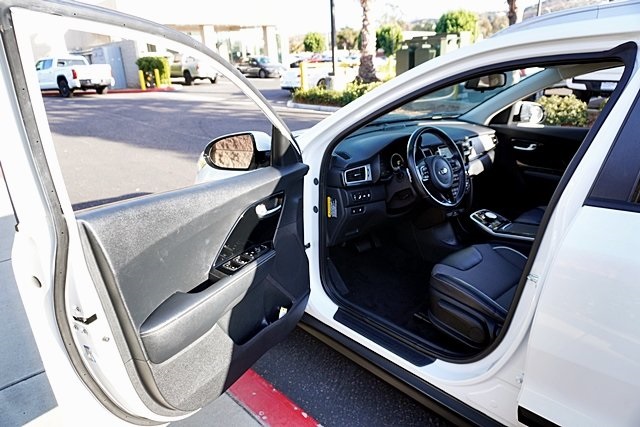 UsedThis 2019 Snow White Pearl Kia Niro EV EX FWD is well equipped and includes these features and benefits: 17″ Alloy Wheels, 4-Wheel Disc Brakes, 6 Speakers, 8.206 Axle Ratio, ABS brakes, Air Conditioning, Alloy wheels, AM/FM radio: SiriusXM, Apple CarPlay & Android Auto, Automatic temperature control, Bodyside moldings, Brake assist, Bumpers: body-color, Carpeted Floor Mats, Delay-off headlights, Driver door bin, Driver vanity mirror, Dual front impact airbags, Dual front side impact airbags, Electronic Stability Control, Emergency communication system: UVO eServices 911 Connect, Four wheel independent suspension, Front anti-roll bar, Front Bucket Seats, Front Center Armrest, Front fog lights, Front reading lights, Fully automatic headlights, Heated door mirrors, Illuminated entry, Knee airbag, Low tire pressure warning, Occupant sensing airbag, Outside temperature display, Overhead airbag, Overhead console, Panic alarm, Passenger door bin, Passenger vanity mirror, Power door mirrors, Power steering, Power windows, Radio: AM/FM/MP3/SiriusXM, Rear anti-roll bar, Rear seat center armrest, Rear window defroster, Rear window wiper, Remote keyless entry, Roof rack: rails only, Security system, Speed control, Speed-sensing steering, Split folding rear seat, Spoiler, Steering wheel mounted audio controls, Telescoping steering wheel, Tilt steering wheel, Traction control, Trip computer, Turn signal indicator mirrors, Variably intermittent wipers, and Woven Cloth & Artificial Leather-Trimmed Seats. Apple Car Play/Android Auto, Automatic Climate Control, Backup Camera.Priced below KBB Fair Purchase Price!CARFAX One-Owner.Poway Hyundai located at 13910 Poway Road, and Poway CDJR are both proud members of the Pedder Auto Group. Like our sister stores, we take great pride in serving all of San Diego County with friendly and professional sales, service and parts. We have one of the largest inventories of quality pre-owned vehicles in the county including a huge selection of Certified Pre-owned Hyundai products to choose from. We offer excellent financing, and a relaxed, no-pressure environment. All prices exclude government fees and taxes, any finance charges, any dealer document preparation charge, dealer installed options, and any emissions test charge. The equipment display is intended to be used as an informational listing of the factory stock equipment and features for this vehicle. Equipment and features may have changed for this vehicle. All information is believed to be accurate but is not guaranteed. For accurate information, pls see dealer for details. Some incentives are OAC and in lieu of others.