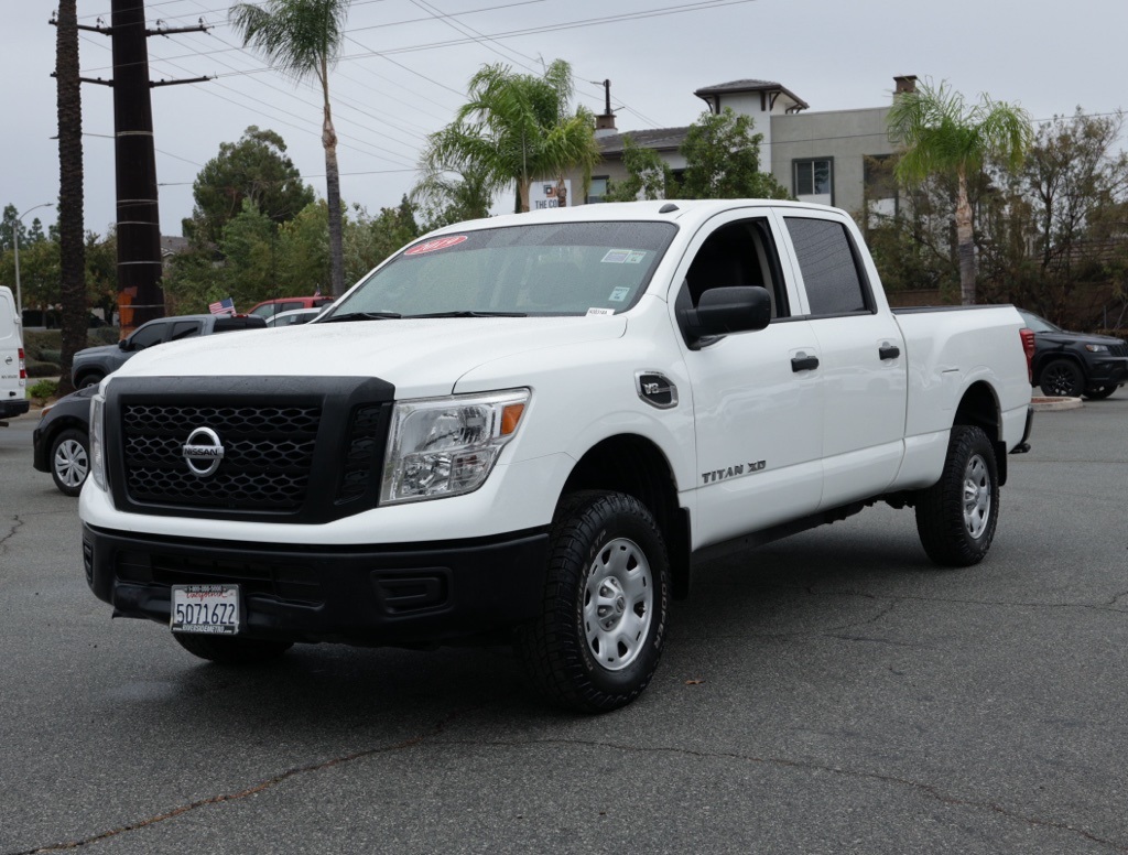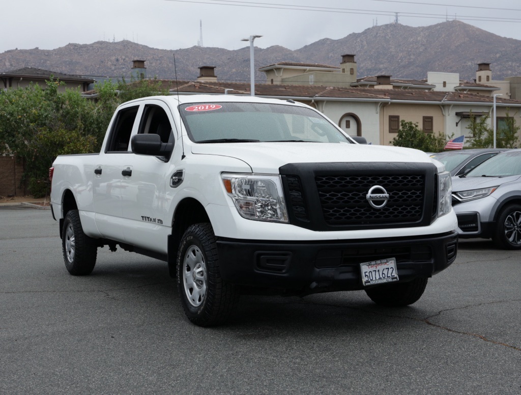UsedThis 2019 Glacier White Nissan Titan XD S 4WD is well equipped and includes these features and benefits: S Utility Package (4-Pin/7-Pin Wiring Harness Connector (Rear Bumper), Front Overhead Console, and Receiver Hitch), 3.357 Axle Ratio, 4-Wheel Disc Brakes, 6 Speaker System, 6 Speakers, ABS brakes, Air Conditioning, AM/FM radio, Brake assist, CD player, Cloth Seat Trim w/Vinyl Bolster, Driver door bin, Dual front impact airbags, Dual front side impact airbags, Electronic Stability Control, Front anti-roll bar, Front Center Armrest w/Storage, Front Split Bench Seat (40/20/40), Front wheel independent suspension, Illuminated entry, Low tire pressure warning, NissanConnect featuring Apple CarPlay and Android Auto, Outside temperature display, Overhead airbag, Panic alarm, Passenger door bin, Passenger vanity mirror, Power steering, Power windows, Radio data system, Radio: NissanConnect AM/FM, Rear anti-roll bar, Rear Bumper Step, Rear seat center armrest, Rear step bumper, Rear window defroster, Remote keyless entry, Security system, Speed control, Speed-sensing steering, Speed-Sensitive Wipers, Splash Guards (B93), Split folding rear seat, Steering wheel mounted audio controls, Tachometer, Telescoping steering wheel, Tilt steering wheel, Traction control, Variably intermittent wipers, and Wheels: 17″ x 7.5″ Silver Styled Steel.CARFAX One-Owner.We have many different makes and models available including a wide selection of cars, trucks, vans, and SUVs. Raceway Nissan in Riverside County has access to thousands of new and used vehicles which means we can find the right vehicle for you and your family. We are proud to serve the city of Riverside, all of the Metro Riverside County area, and the Inland Empire from our location in Moreno Valley. We are conveniently located in Riverside near the cities of San Bernardino, Redlands, Ontario, Corona, Perris, Beaumont, Temecula, Hemet and many others. We offer military discounts and work with many Credit Unions.