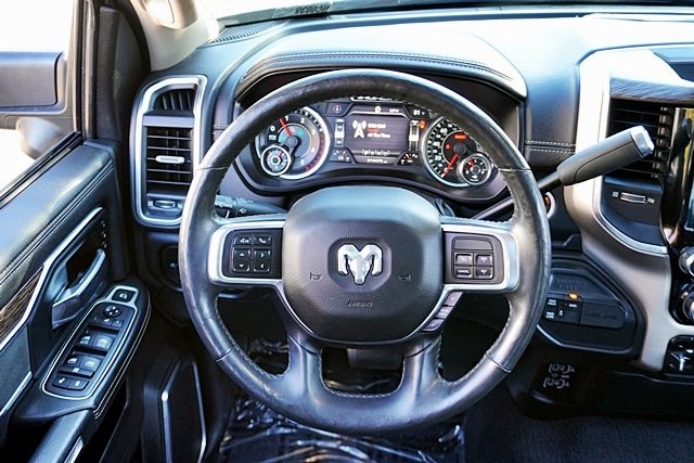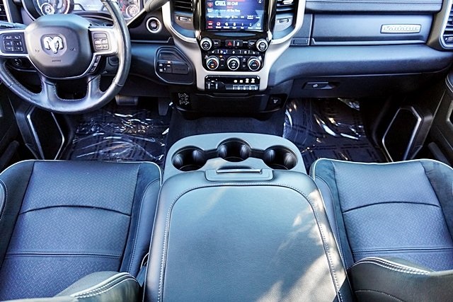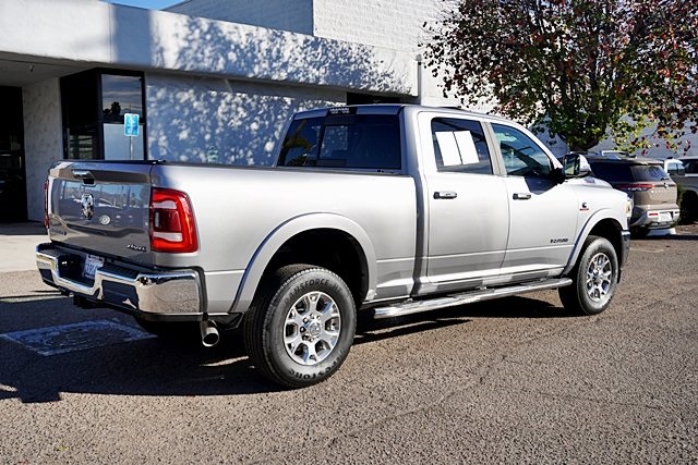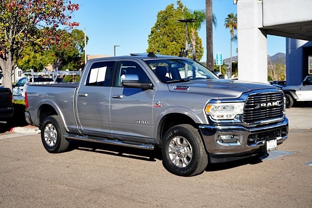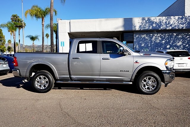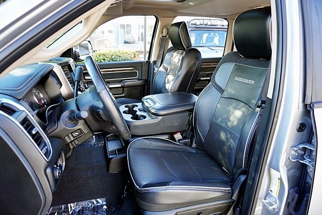 UsedThis 2019 Billet Silver Metallic Clearcoat Ram 2500 Laramie 4WD is well equipped and includes these features and benefits: Laramie Level 1 Equipment Group (2nd Row In Floor Storage Bins, Auto High Beam Headlamp Control, Blind Spot & Cross Path Detection, Exterior Mirrors w/Memory, Foam Bottle Insert (Door Trim Panel), Mirror-Mounted Aux Reverse Lamps, Power Adjustable Convex Aux Mirrors, Power Adjustable Pedals w/Memory, Power Chrome Tow Mirrors w/Convex Spotter & Memory, Radio/Driver Seat/Mirrors/Pedals Memory, Rain Sensitive Windshield Wipers, Remote Tailgate Release, Single Disc Remote CD Player, and Ventilated Front Seats), Quick Order Package 2HH Laramie, Towing Technology Group (CTR Stop Lamp w/Cargo View Camera, Surround View Camera System, and Trailer Reverse Guidance), 10 Speakers, 115V Auxiliary Rear Power Outlet, 2 Way Rear Headrest Seat, 220 Amp Alternator, 3.73 Axle Ratio, 4 Way Front Headrests, 4-Wheel Disc Brakes, ABS brakes, Active Noise Control System, Adjustable pedals, Air Conditioning, Alloy wheels, AM/FM radio: SiriusXM, Anti-Spin Differential Rear Axle, Apple CarPlay/Android Auto, Auto-dimming Rear-View mirror, Automatic temperature control, Brake assist, Bumpers: chrome, Compass, Delay-off headlights, Driver door bin, Driver vanity mirror, Dual front impact airbags, Dual front side impact airbags, Electronic Stability Control, Electronically Controlled Throttle, Front anti-roll bar, Front Center Armrest w/Storage, Front dual zone A/C, Front fog lights, Front reading lights, Front Seat Back Map Pockets, Fully automatic headlights, Garage door transmitter, Heated door mirrors, Heated Front Seats, Heated front seats, Heated Steering Wheel, Heated steering wheel, Illuminated entry, Leather steering wheel, Leather Trim 40/20/40 Bench Seat, Low tire pressure warning, Manufacturer’s Statement of Origin, Occupant sensing airbag, Outside temperature display, Overhead airbag, Overhead console, Panic alarm, ParkSense Front/Rear Park Assist System, ParkView Rear Back-Up Camera, Passenger door bin, Passenger vanity mirror, Power 2-Way Driver Lumbar Adjust, Power 2-Way Passenger Lumbar Adjust, Power Adjust 8-Way Driver Seat, Power Adjust 8-Way Front Passenger Seat, Power door mirrors, Power driver seat, Power passenger seat, Power steering, Power Sunroof, Power windows, Radio data system, Radio: Uconnect 4 w/8.4″ Display, Radio: Uconnect 4C Nav w/8.4″ Display, Rear 60/40 Folding Seat, Rear anti-roll bar, Rear reading lights, Rear seat center armrest, Rear step bumper, Rear window defroster, Remote keyless entry, Security system, Selectable Tire Fill Alert, SiriusXM Satellite Radio, Speed control, Split folding rear seat, Spray In Bedliner, Steering wheel mounted audio controls, Tachometer, Tilt steering wheel, Tip Start, Traction control, Trip computer, Turn signal indicator mirrors, Variably intermittent wipers, Vendor Painted Cargo Box Tracking, Voltmeter, and Wheels: 18″ x 8.0″ Polished Aluminum Prices shown are manufacturer suggested retail price only and do not include taxes, license, documentation fee, smog fee, dealer installed options and other applicable charges. Vehicles are subject to prior sale. Vehicle information is based on standard equipment and may vary from vehicle to vehicle. Not responsible for typographical errors. CARFAX One-Owner.