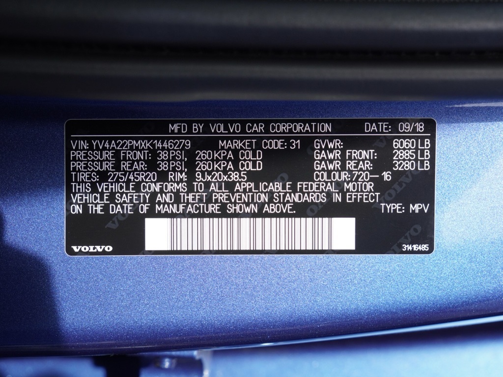 UsedRecent Arrival! CARFAX One-Owner. New Price!Certified. 2019 Bursting Blue Metallic Clean CARFAX. Volvo XC90 4D Sport Utility T6 R-Design Global Positioning Tracking System (S.W.A.T.) Guaranteed Protection & Recovery Program, Finishing Touch Complete (Synthetic Paint Sealant Application & Protection Program), NitroFill Advantage (Nitrogen Filled Tires & Protection Program), Genuine Nissan Wheel Locks (Anti-Theft Vehicle Wheel Protection), ParkView® / Park Assist Rear Back–Up Camera, McKinley/Nappa/Alcantara Leather Seats, Blind–Spot and Cross–Path Detection, Bluetooth Car Audio Receiver, SiriusXM® Satelite Radio, Apple Car Play/Android Auto, Automatic Climate Control, Backup Camera, Power Moonroof, 22–Inch Aluminum Painted/Polished Wheels, XC90 T6 R-Design AWD SUV, 4D Sport Utility, 2.0L 16V I4 Supercharged Turbo Drive-E Engine, Automatic with Geartronic, AWD, Bursting Blue Metallic, Charcoal w/Nappa Leather Seating Surfaces w/Charcoal Interior, 14 Speakers, 360 Degree Surroundview Camera, 3rd row seats: bucket, 4-Corner Air Suspension w/Four-C Active Chassis, 4-Wheel Disc Brakes, ABS brakes, Active Cruise Control, Advanced Package, Air Conditioning, Alloy wheels, AM/FM radio: SiriusXM, Anti-whiplash front head restraints, Apple CarPlay/Android Auto, Auto High-beam Headlights, Auto-dimming door mirrors, Auto-dimming Rear-View mirror, Automatic temperature control, Brake assist, Bumpers: body-color, Delay-off headlights, Driver door bin, Driver vanity mirror, Dual front impact airbags, Dual front side impact airbags, Electronic Stability Control, Emergency communication system: Volvo On-Call, Exterior Parking Camera Rear, Four wheel independent suspension, Front anti-roll bar, Front Bucket Seats, Front Center Armrest w/Storage, Front dual zone A/C, Front fog lights, Front reading lights, Full LED Headlights w/ABL, AHB2 & LED DRL, Fully automatic headlights, Garage door transmitter: HomeLink, Graphical Head-Up Display (HUD), harman/kardon Premium Audio, harman/kardon® Speakers, Headlight cleaning, Headlight High Pressure Cleaning, Heated door mirrors, Heated Front Bucket Seats, Heated front seats, Heated Rear Seats, Outer Positions, Heated Steering Wheel, Heated Steering Wheel & Rear Seats, Illuminated entry, Knee airbag, Leather Shift Knob, Low tire pressure warning, Memory seat, Navigation System, Nubuck/Nappa Leather Seating Surfaces, Occupant sensing airbag, Outside temperature display, Overhead airbag, Panic alarm, Park Assist Pilot & Front Park Assist, Passenger door bin, Passenger vanity mirror, Power door mirrors, Power driver seat, Power Liftgate, Power moonroof, Power passenger seat, Power steering, Power windows, Premium audio system: Sensus Connect, Radio data system, Radio: High Performance Audio System w/Sensus Nav, Rain sensing wipers, Rear air conditioning, Rear anti-roll bar, Rear dual zone A/C, Rear fog lights, Rear reading lights, Rear seat center armrest, Rear window defroster, Rear window wiper, Remote keyless entry, Roof rack: rails only, Security system, Speed-sensing steering, Split folding rear seat, Spoiler, Sport steering wheel, Steering wheel mounted audio controls, Tachometer, Telescoping steering wheel, Tilt steering wheel, Traction control, Trip computer, Turn signal indicator mirrors, Variably intermittent wipers, Wheels: 22″ 5-Double Spoke Matte Black Diamond Cut.Certification Program Details: • 3 Month/3,000 Mile Powertrain Limited Warranty (whichever comes first) • Covers repair or replacement of most major powertrain components, including transmission, engine and driveline. • 125-Point Vehicle Inspection. • CarFax Vehicle History Report. • A deductible applies per covered repair visit.Searching for an affordable, dependable car for your family? Temecula Nissan has you covered with the lowest prices in California and the biggest selection—over 300 used, certified pre-owned, nearly new, and low-mileage vehicles ready for you! Our no-haggle, limited-time sale prices ma
