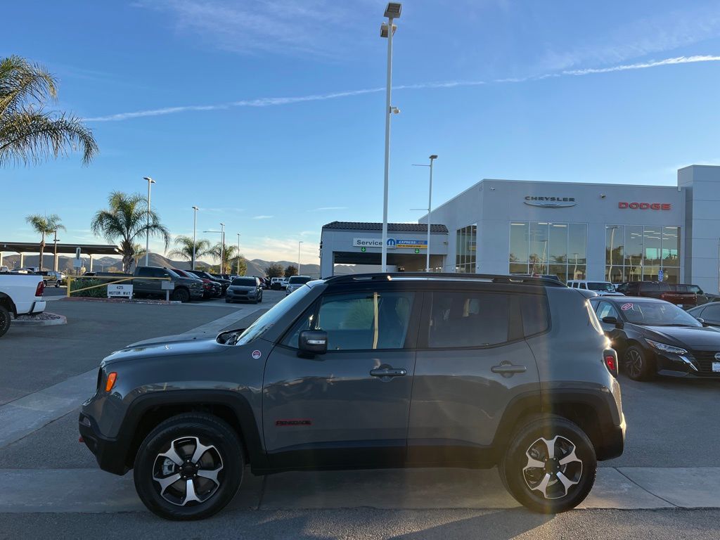 UsedAdventure comes standard in the Jeep Renegade Trailhawk 4×4 from Jeep. Finished in rugged Sting-Gray Clear-Coat with a contrasting black roof, this compact SUV is built to stand out—and climb over whatever’s in its way. Powered by a turbocharged 1.3L engine paired with a smooth 9-speed automatic transmission, the Renegade delivers punchy performance with impressive efficiency.True to its Trailhawk name, this Renegade is trail-rated and ready for action with Selec-Terrain® featuring Rock Mode, skid plates, tow hooks, Hill Descent Control, and confident 4×4 capability. Inside, you’ll find a smart, comfortable cabin with Apple CarPlay®, Android Auto™, dual-zone climate control, and available cold-weather features like heated seats and a heated steering wheel.Compact enough for city life but tough enough for off-road fun, the Jeep Renegade Trailhawk proves big adventure can come in a small package. Bold, capable, and always ready—this Jeep is your ticket to exploring beyond the pavement.