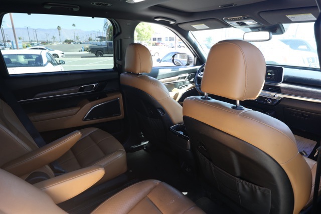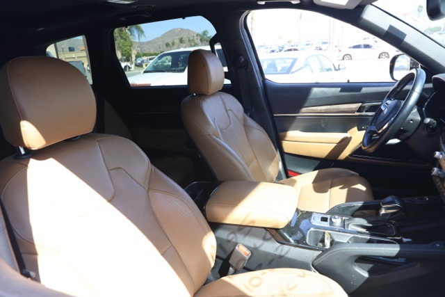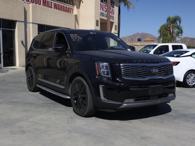 UsedThis 2020 Ebony Black Kia Telluride SX FWD is well equipped and includes these features and benefits: Towing Package (Self-Leveling Rear Suspension and Tow Hitch w/Harness), 10 Speakers, 3.648 Axle Ratio, 3rd row seats: split-bench, 4-Wheel Disc Brakes, ABS brakes, Air Conditioning, Alloy wheels, AM/FM radio: SiriusXM, Apple CarPlay & Android Auto, Auto High-beam Headlights, Auto-dimming Rear-View mirror, Automatic temperature control, Brake assist, Bumpers: body-color, Carpeted Floor Mats, Compass, Delay-off headlights, Driver door bin, Driver vanity mirror, Dual front impact airbags, Dual front side impact airbags, Electronic Stability Control, Emergency communication system: 911 Connect, Four wheel independent suspension, Front anti-roll bar, Front Bucket Seats, Front Center Armrest, Front dual zone A/C, Front fog lights, Front reading lights, Fully automatic headlights, Garage door transmitter: HomeLink, Heated & Ventilated Front Bucket Seats, Heated door mirrors, Heated front seats, Heated steering wheel, Illuminated entry, Knee airbag, Leather Shift Knob, Leather steering wheel, Leather-Trimmed Upholstery, Low tire pressure warning, Memory seat, Navigation System, Occupant sensing airbag, Outside temperature display, Overhead airbag, Overhead console, Panic alarm, Passenger door bin, Passenger vanity mirror, Power door mirrors, Power driver seat, Power Liftgate, Power moonroof, Power passenger seat, Power steering, Power windows, Radio data system, Radio: AM/FM/MP3/SiriusXM Audio System, Rear air conditioning, Rear anti-roll bar, Rear audio controls, Rear reading lights, Rear window defroster, Rear window wiper, Reclining 3rd row seat, Remote keyless entry, Roof rack: rails only, Security system, Speed control, Speed-sensing steering, Split folding rear seat, Spoiler, Steering wheel mounted audio controls, SX Butterscotch Leather Seats, Tachometer, Telescoping steering wheel, Tilt steering wheel, Traction control, Trip computer, Turn signal indicator mirrors, Variably intermittent wipers, Ventilated front seats, and Wheels: 7.5″ x 20″ Black Finish Sport Alloy Plus 3 Month 3000 Mile Warranty. See Dealer For Details. We have many different makes and models available including a wide selection of cars, trucks, vans, and SUV’s. Don’t see something you like! Pedder Nissan has access to thousands of new and used vehicles which means we can find the right vehicle FOR YOU. The Advertised Price for any vehicle does not include dealer installed accessories. These accessories can be purchased for an additional cost. All vehicles subject to prior sale. All prices plus government fees and taxes, any finance charges, any dealer document processing charges ($85), any electronic filing charge, and any emission testing charge. Offers and prices not available to other dealers, wholesalers, or brokers. This price may not be combined with any other offer. While every reasonable effort is made to ensure the accuracy of this information, we are not responsible for any errors or omissions contained on these pages. We are proud to serve the Hemet area from our Auto Mall Location. We work with most Credit Unions and we offer Military and First Responder discounts. Please verify all pricing, vehicle equipment, and any additional information in question with Pedder Nissan (951) 766-1446. Apple Car Play/Android Auto, Automatic Climate Control, Backup Camera. CARFAX One-Owner. 2020 Kia Telluride SX20/26 City/Highway MPGAwards: * Motor Trend Automobiles of the year * JD Power Automotive Performance, Execution and Layout (APEAL) Study * 2020 KBB.com 10 Favorite New-for-2020 Cars * 2020 KBB.com Best Buy Awards * 2020 KBB.com 10 Best SUVs Worth Waiting For * NACTOY 2020 North American Utility of the Year