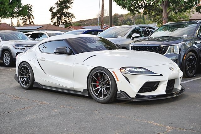 UsedThis 2020 White Toyota Supra 3.0 RWD is well equipped and includes these features and benefits: 10 Speakers, 4-Wheel Disc Brakes, ABS brakes, Adaptive suspension, Air Conditioning, Alcantara/Leather Seat Trim, Alloy wheels, AM/FM radio: SiriusXM, Apple CarPlay, Auto High-beam Headlights, Auto-dimming door mirrors, Automatic temperature control, Brake assist, Bumpers: body-color, Child-Seat-Sensing Airbag, Delay-off headlights, Driver door bin, Driver vanity mirror, Dual front impact airbags, Dual front side impact airbags, DVD-Audio, Electronic Stability Control, Emergency communication system, Exterior Parking Camera Rear, Four wheel independent suspension, Front anti-roll bar, Front Bucket Seats, Front Center Armrest, Front dual zone A/C, Front fog lights, Front reading lights, Front Sport Seats, Fully automatic headlights, Garage door transmitter: HomeLink, Heated door mirrors, Illuminated entry, Knee airbag, Leather Shift Knob, Leather steering wheel, Low tire pressure warning, Memory seat, Navigation System, Occupant sensing airbag, Outside temperature display, Overhead airbag, Panic alarm, Passenger door bin, Passenger vanity mirror, Power door mirrors, Power driver seat, Power passenger seat, Power steering, Power windows, Radio data system, Radio: 205-Watt AM/FM Stereo w/10 Speakers, Radio: 500-Watt AM/FM JBL Audio w/12 Speakers, Rain sensing wipers, Rear anti-roll bar, Rear window defroster, Remote keyless entry, Security system, Speed control, Speed-sensing steering, Speed-Sensitive Wipers, Steering wheel mounted audio controls, Tachometer, Telescoping steering wheel, Tilt steering wheel, Traction control, Trip computer, Turn signal indicator mirrors, Variably intermittent wipers, and Wheels: 19″ Forged Aluminum w/Painted Accents. Apple Car Play/Android Auto, Automatic Climate Control, Backup Camera.Priced below KBB Fair Purchase Price!Poway Hyundai located at 13910 Poway Road, and Poway CDJR are both proud members of the Pedder Auto Group. Like our sister stores, we take great pride in serving all of San Diego County with friendly and professional sales, service and parts. We have one of the largest inventories of quality pre-owned vehicles in the county including a huge selection of Certified Pre-owned Hyundai products to choose from. We offer excellent financing, and a relaxed, no-pressure environment. All prices exclude government fees and taxes, any finance charges, any dealer document preparation charge, dealer installed options, and any emissions test charge. The equipment display is intended to be used as an informational listing of the factory stock equipment and features for this vehicle. Equipment and features may have changed for this vehicle. All information is believed to be accurate but is not guaranteed. For accurate information, pls see dealer for details. Some incentives are OAC and in lieu of others.