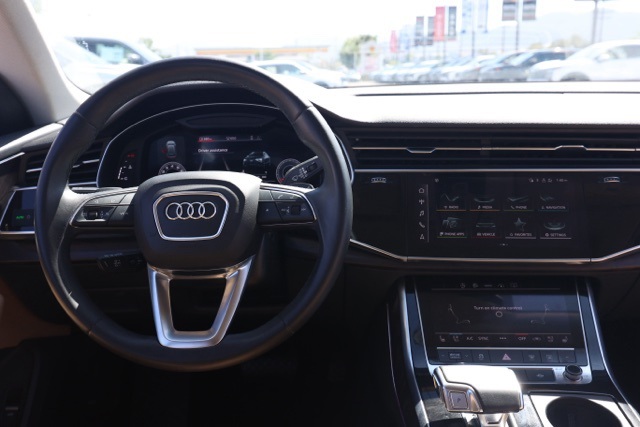 UsedThis 2021 Glacier White Metallic Audi Q8 55 Premium Plus AWD is well equipped and includes these features and benefits: Q8 55 Premium Plus quattro, 3.0L V6 Turbocharged DOHC 24V LEV3-ULEV70 335hp, 8-Speed Automatic with Tiptronic, quattro, Glacier White Metallic, Black w/Valcona Leather Seat Trim, 10 Speakers, 4-Wheel Disc Brakes, ABS brakes, Adaptive suspension, Air Conditioning, Alloy wheels, AM/FM radio: SiriusXM, Audi smartphone interface (Apple CarPlay/Android Auto), Auto High-beam Headlights, Auto-dimming Rear-View mirror, Automatic temperature control, Axle Ratio: TBD, Brake assist, Bumpers: body-color, Compass, Delay-off headlights, Driver door bin, Driver vanity mirror, Dual front impact airbags, Dual front side impact airbags, Electronic Stability Control, Emergency communication system: Audi connect CARE, PRIME & PLUS, Exterior Parking Camera Rear, Four wheel independent suspension, Front anti-roll bar, Front Bucket Seats, Front Center Armrest, Front dual zone A/C, Front fog lights, Front reading lights, Fully automatic headlights, Garage door transmitter: HomeLink, Genuine wood door panel insert, Heated door mirrors, Heated Front Bucket Seats, Heated front seats, Illuminated entry, Leather Seating Surfaces, Leather Shift Knob, Leather steering wheel, Low tire pressure warning, Memory seat, Navigation system: Audi MMI Navigation plus with Touch Response, Occupant sensing airbag, Outside temperature display, Overhead airbag, Overhead console, Panic alarm, Passenger door bin, Passenger vanity mirror, Power door mirrors, Power driver seat, Power Liftgate, Power moonroof, Power passenger seat, Power steering, Power windows, Radio data system, Radio: Audi MMI Navigation Plus w/Touch Response, Rain sensing wipers, Rear air conditioning, Rear anti-roll bar, Rear fog lights, Rear reading lights, Rear seat center armrest, Rear window defroster, Rear window wiper, Remote keyless entry, Roof rack: rails only, Security system, Speed control, Speed-sensing steering, Split folding rear seat, Spoiler, Steering wheel memory, Steering wheel mounted audio controls, Tachometer, Telescoping steering wheel, Tilt steering wheel, Traction control, Trip computer, Turn signal indicator mirrors, Variably intermittent wipers, and Wheels: 20″ 5-Arm Design. Apple Car Play/Android Auto, Automatic Climate Control, Backup Camera, Q8 55 Premium Plus quattro, 3.0L V6 Turbocharged DOHC 24V LEV3-ULEV70 335hp, 8-Speed Automatic with Tiptronic, quattro, Glacier White Metallic, Black w/Valcona Leather Seat Trim. Recent Arrival! Clean CARFAX. CARFAX One-Owner. Odometer is 21833 miles below market average!We have many different makes and models available including a wide selection of cars, trucks, vans, and SUV’s. Temecula Nissan auto group has access to thousands of new and used vehicles which means we can find the right vehicle FOR YOU.