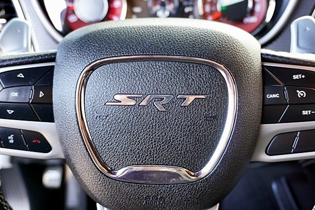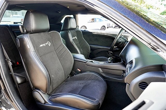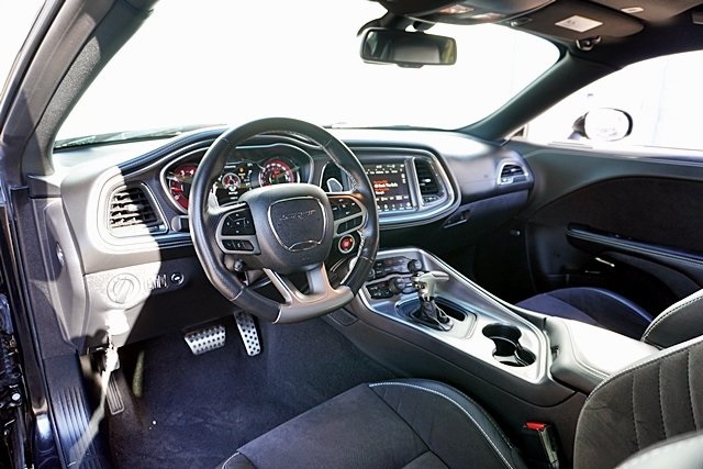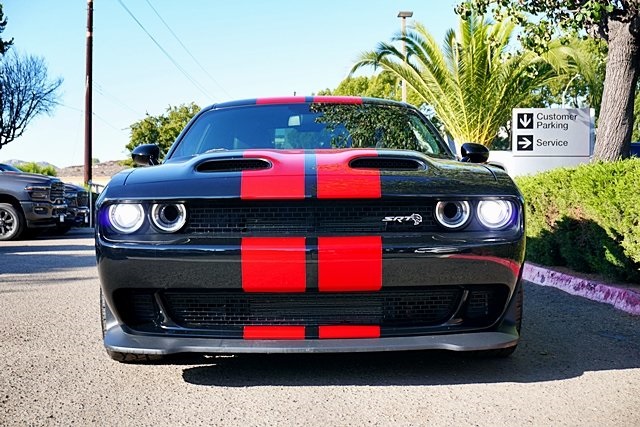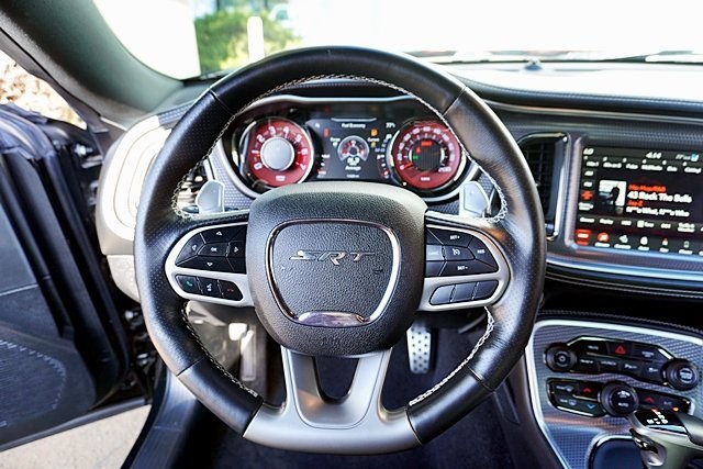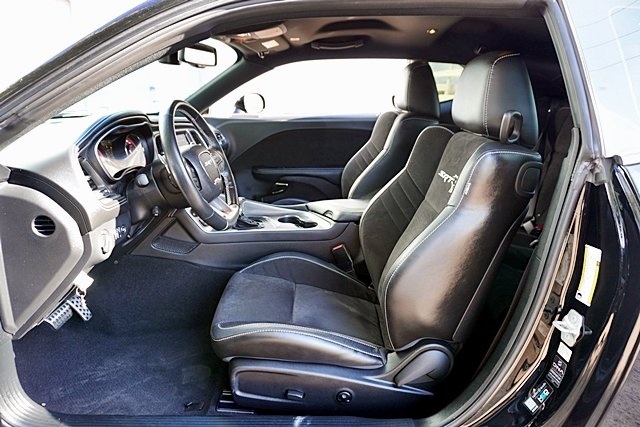 UsedThis 2021 Pitch Black Clearcoat Dodge Challenger SRT Hellcat RWD is well equipped and includes these features and benefits: Driver Convenience Group (Blind Spot & Cross Path Detection, High-Intensity Discharge Headlamps, and Power Multi-Function Foldaway Mirrors), Plus Package (Dark Engine Turn Interior Accents, Hellcat Logo Nappa/Alcantara Seat, Power Tilt/Telescope Steering Column, Premium-Stitched Dash Panel, Radio/Driver Seat/Mirrors Memory, Suede Door Trim Panel w/Map Pocket, and Ventilated Front Seats), Quick Order Package 26R SRT Hellcat (2.62 Rear Axle Ratio), 1-Yr SiriusXM Guardian Trial, 4-Wheel Disc Brakes, 4G LTE Wi-Fi Hot Spot, 5-Year SiriusXM Traffic Service, 5-Year SiriusXM Travel Link Service, 6 Speakers, 8.4″ Touchscreen Display, ABS brakes, Adaptive suspension, Air Conditioning, Alloy wheels, AM/FM radio: SiriusXM, Anti-whiplash front head restraints, Apple CarPlay, Apple CarPlay/Android Auto, Auto-dimming Rear-View mirror, Automatic temperature control, Brake assist, Bumpers: body-color, Compass, Delay-off headlights, Driver door bin, Driver vanity mirror, Dual front impact airbags, Dual front side impact airbags, Dual Stripe – Red, Electronic Stability Control, Emergency communication system: SiriusXM Guardian, For Details, Visit DriveUconnect.com, Four wheel independent suspension, Front anti-roll bar, Front Bucket Seats, Front Center Armrest, Front dual zone A/C, Front reading lights, Fully automatic headlights, Garage door transmitter, Google Android Auto, GPS Antenna Input, GPS Navigation, HD Radio, Heated door mirrors, Heated front seats, Heated steering wheel, Illuminated entry, Integrated Center Stack Radio, Integrated Voice Command w/Bluetooth, Leather Shift Knob, Low tire pressure warning, Media Hub (2 USB, AUX), Outside temperature display, Overhead airbag, Overhead console, Panic alarm, ParkView Rear Back-Up Camera, Passenger door bin, Passenger vanity mirror, Power door mirrors, Power driver seat, Power steering, Power windows, Radio data system, Radio: Uconnect 4C Nav w/8.4″ Display, Radio: Uconnect 4C w/8.4″ Display, Rear anti-roll bar, Rear reading lights, Rear seat center armrest, Rear window defroster, Remote keyless entry, Security system, Shark Fin Antenna, SiriusXM Satellite Radio, SiriusXM Traffic Plus, SiriusXM Travel Link, Speed control, Speed-sensing steering, Split folding rear seat, Spoiler, Sport steering wheel, SRT Hellcat Logo Houndstooth Seats, Steering wheel mounted audio controls, Tachometer, Telescoping steering wheel, Tilt steering wheel, Traction control, Trip computer, USB Host Flip, Variably intermittent wipers, Wheels: 20″ x 9.5″ Machined w/Granite Pocket, and Wheels: 20″ x 9.5″ SRT Lowgloss Black Performance Prices shown are manufacturer suggested retail price only and do not include taxes, license, documentation fee, smog fee, dealer installed options and other applicable charges. Vehicles are subject to prior sale. Vehicle information is based on standard equipment and may vary from vehicle to vehicle. Not responsible for typographical errors. Priced below KBB Fair Purchase Price!13/22 City/Highway MPG