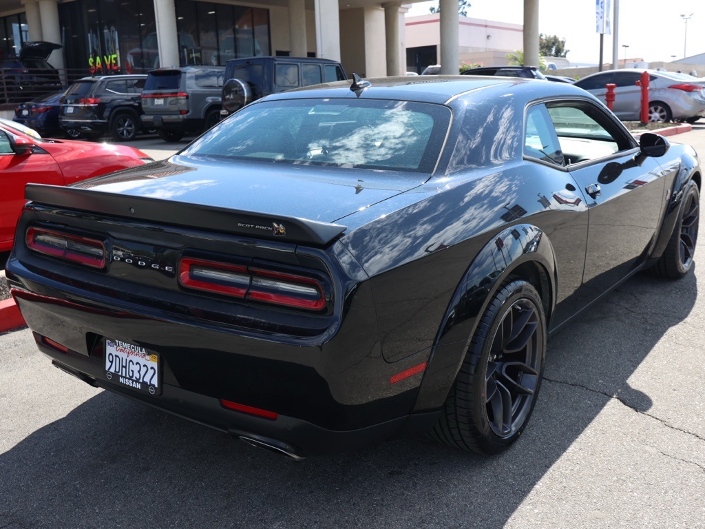 UsedThis 2021 Pitch Black Clearcoat Dodge Challenger R/T Scat Pack Widebody RWD is well equipped and includes these features and benefits: Driver Convenience Group (Blind Spot & Cross Path Detection, High-Intensity Discharge Headlamps, and Power Multi-Function Foldaway Mirrors), harman/kardon Audio Group w/Subwoofer (18 Speakers Premium Audio System, harman/kardon GreenEdge Amp, Surround Sound, and Trunk Mounted Subwoofer), Plus Package (Door Trim Panel w/Ambient Lighting, Heated Steering Wheel, Power Tilt/Telescope Steering Column, Premium-Stitched Dash Panel, and Radio/Driver Seat/Mirrors Memory), Quick Order Package 24N R/T Scat Pack Widebody (3.09 Rear Axle Ratio, Adaptive Damping Suspension, Brembo 6-Pot Fixed Front Caliper Brakes, Flat-Bottom Steering Wheel, Performance Shift Indicator, Wheels: 20″ x 11.0″ Devil’s Rim Aluminum, Widebody Competition Suspension, and Widebody Fender Flares), 1-Yr SiriusXM Guardian Trial, 230MM Rear Axle, 4-Wheel Disc Brakes, 6 Speakers, ABS brakes, Air Conditioning, Alloy wheels, AM/FM radio: SiriusXM, Anti-whiplash front head restraints, Apple CarPlay, Apple CarPlay/Android Auto, Auto-dimming Rear-View mirror, Automatic temperature control, Brake assist, Bumpers: body-color, Compass, Delay-off headlights, Driver door bin, Driver vanity mirror, Dual front impact airbags, Dual front side impact airbags, Electronic Stability Control, Emergency communication system: SiriusXM Guardian, Four wheel independent suspension, Front anti-roll bar, Front Bucket Seats, Front Center Armrest, Front dual zone A/C, Front fog lights, Front License Plate Bracket, Front reading lights, Fully automatic headlights, Garage door transmitter, Google Android Auto, GPS Antenna Input, Heated door mirrors, Heated front seats, Heated steering wheel, Illuminated entry, Integrated Center Stack Radio, Integrated Voice Command w/Bluetooth, Leather Shift Knob, Low tire pressure warning, Media Hub (2 USB, AUX), Outside temperature display, Overhead airbag, Overhead console, Panic alarm, ParkView Rear Back-Up Camera, Passenger door bin, Passenger vanity mirror, Power door mirrors, Power driver seat, Power steering, Power windows, Radio data system, Radio: Uconnect 4C w/8.4″ Display, Rear anti-roll bar, Rear reading lights, Rear seat center armrest, Rear window defroster, Red Brake Calipers, Remote keyless entry, Scat Pack Logo Houndstooth Seat, Security system, Shark Fin Antenna, SiriusXM Satellite Radio, Speed control, Speed-sensing steering, Split folding rear seat, Spoiler, Sport steering wheel, Steering wheel mounted audio controls, Tachometer, Telescoping steering wheel, Tilt steering wheel, Traction control, Trip computer, USB Host Flip, Variably intermittent wipers, and Wheels: 20″ x 9″ Lo Gloss Granite Crystal. Apple Car Play/Android Auto, Automatic Climate Control, Backup Camera. Clean CARFAX.We have many different makes and models available including a wide selection of cars, trucks, vans, and SUV’s. Temecula Nissan auto group has access to thousands of new and used vehicles which means we can find the right vehicle FOR YOU.