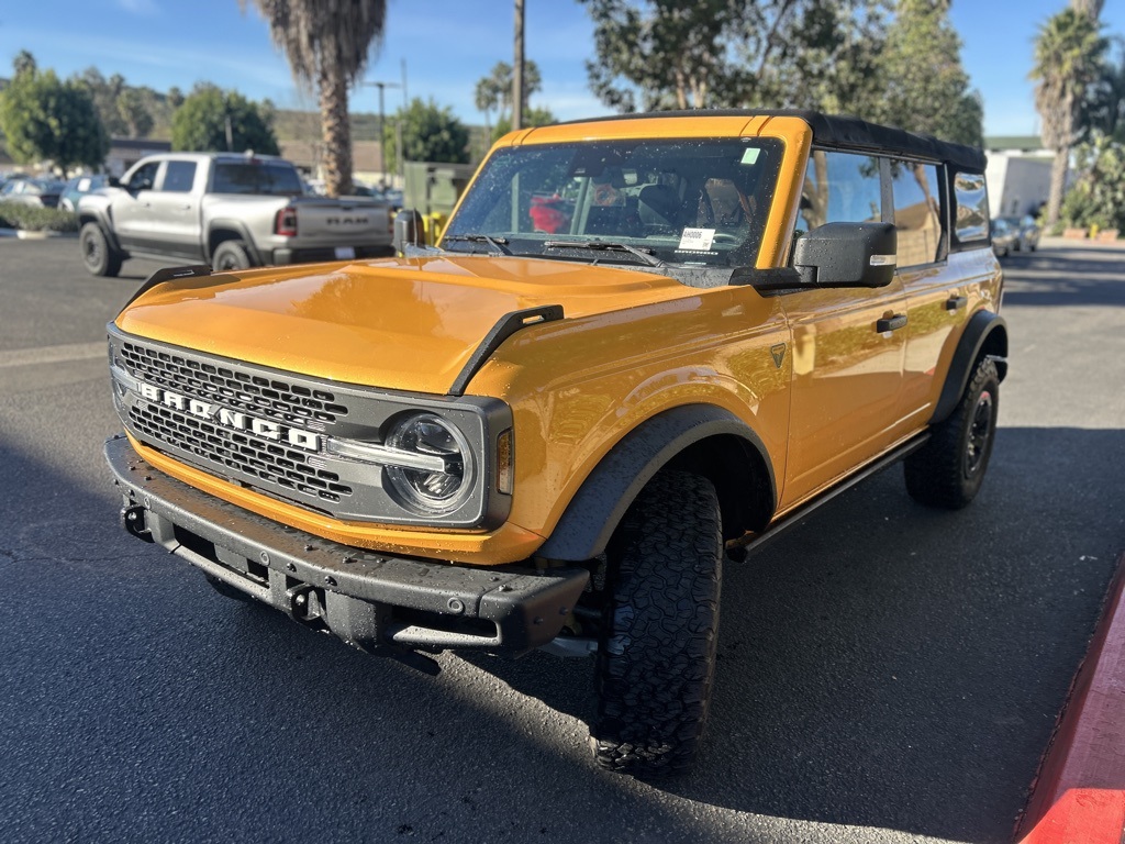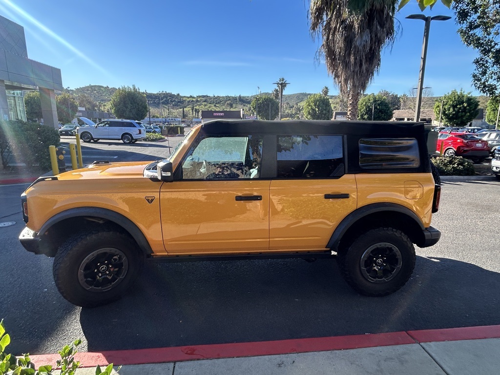 UsedThis 2021 Cyber Orange Metallic Tricoat Ford Bronco Badlands 4WD is well equipped and includes these features and benefits: Equipment Group 333A High Package (12″ LCD Capacitive Touchscreen w/Swipe Capability, 2-Door Intelligent Access w/Lock/Unlock, 360-Degree Camera, Additional Sound Deadening, Ambient Footwell Lighting, Auto-Dimming Interior Rear-View Mirror, Connected Navigation, Dr & Pass Illuminated Sliding Visor Vanity Mirrors, Dual-Zone Electronic Automatic Temperature Control, Enhanced Voice Recognition, Forward Sensing System, Front Row Heated Seats, Information on Demand Panel, Power Outlet – Back Side of Center Floor Console, Reverse Sensing System, and Sideview Mirrors), 4-Wheel Disc Brakes, 4.7 Axle Ratio, 6 Speakers, ABS brakes, Air Conditioning, Alloy wheels, AM/FM radio: SiriusXM with 360L, AM/FM Stereo, Auto High-Beam Headlamps, Auto High-beam Headlights, BLIS Blind Spot Information System, Brake assist, Compass, Connected Built-In Navigation, Delay-off headlights, Driver door bin, Driver vanity mirror, Dual front impact airbags, Dual front side impact airbags, Emergency communication system: 911 Assist, Exterior Parking Camera Rear, Front & Rear Floor Liners, Front anti-roll bar, Front Bucket Seats, Front Center Armrest, Front reading lights, Front Row Top Panels & Door Storage Bags, Front wheel independent suspension, Fully automatic headlights, Heated door mirrors, Illuminated entry, Integrated roll-over protection, Lane-Keeping System, Leather Shift Knob, Low tire pressure warning, Marine Grade Vinyl Bucket Seats, Occupant sensing airbag, Outside temperature display, Overhead airbag, Overhead console, Panic alarm, Passenger door bin, Passenger vanity mirror, Power door mirrors, Power steering, Power windows, Pre-Collision Assist w/Automatic Emergency Braking, Radio data system, Rear-View Camera, Remote keyless entry, Security system, SiriusXM Radio w/360L, Speed control, Split folding rear seat, Steering wheel mounted audio controls, SYNC 4, Tachometer, Telescoping steering wheel, Tilt steering wheel, Towing Capability, Traction control, Trip computer, Variably intermittent wipers, Voltmeter, Wheels: 17″ Black High Gloss-Painted Aluminum (64W), and Wheels: 17″ Machined Carbonized Aluminum. Apple Car Play/Android Auto, Automatic Climate Control, Backup Camera.Priced below KBB Fair Purchase Price!CARFAX One-Owner.New Price!Poway Hyundai located at 13910 Poway Road, and Poway CDJR are both proud members of the Pedder Auto Group. Like our sister stores, we take great pride in serving all of San Diego County with friendly and professional sales, service and parts. We have one of the largest inventories of quality pre-owned vehicles in the county including a huge selection of Certified Pre-owned Hyundai products to choose from. We offer excellent financing, and a relaxed, no-pressure environment. All prices exclude government fees and taxes, any finance charges, any dealer document preparation charge, dealer installed options, and any emissions test charge. The equipment display is intended to be used as an informational listing of the factory stock equipment and features for this vehicle. Equipment and features may have changed for this vehicle. All information is believed to be accurate but is not guaranteed. For accurate information, pls see dealer for details. Some incentives are OAC and in lieu of others.