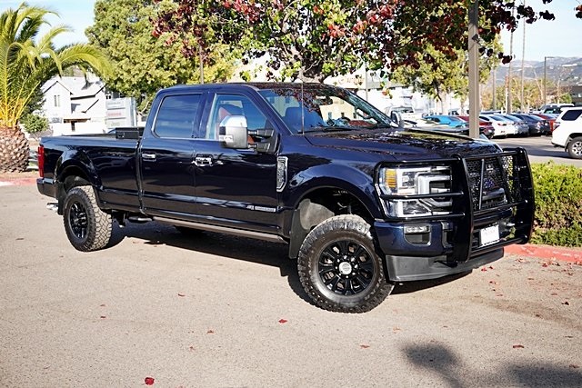 UsedThis 2021 Blue Metallic Ford F-250SD Platinum 4WD is well equipped and includes these features and benefits: FX4 Off-Road Package (Hill Descent Control, Off-Road Specifically Tuned Shock Absorbers, and Unique FX4 Off-Road Box Decal), GVWR: 10,000 lb Payload Package, Order Code 703A, 4WD, 10 Speakers, 110V/400W Outlet, 397 Amp Alternator, 4-Wheel Disc Brakes, ABS brakes, Adaptive Steering, Adjustable pedals, Air Conditioning, Alloy wheels, AM/FM radio: SiriusXM, Auto High-beam Headlights, Auto-dimming Rear-View mirror, Automatic temperature control, Brake assist, Compass, Customer-Placed Trailer Camera (Pre-Installed), Delay-off headlights, Driver door bin, Driver vanity mirror, Dual front impact airbags, Dual front side impact airbags, Electronic Stability Control, Emergency communication system: SYNC 3 911 Assist, Engine Block Heater, Exterior Parking Camera Rear, Flow-Through Console, Front anti-roll bar, Front Bucket Seats, Front Center Armrest, Front dual zone A/C, Front fog lights, Front License Plate Bracket, Front reading lights, Fully automatic headlights, Heated door mirrors, Illuminated entry, Leather steering wheel, Low tire pressure warning, Outside temperature display, Overhead airbag, Overhead console, Panic alarm, Passenger door bin, Passenger vanity mirror, Power door mirrors, Power driver seat, Power passenger seat, Power steering, Power windows, Radio data system, Radio: B&O System by Bang & Olufsen, Rapid-Heat Supplemental Cab Heater, Rear Parking Sensors, Rear reading lights, Rear seat center armrest, Rear step bumper, Rear window defroster, Remote keyless entry, Security system, SiriusXM Radio, Speed control, Split folding rear seat, Steering wheel mounted audio controls, SYNC 3 Communications & Entertainment System, Tachometer, Telescoping steering wheel, Tilt steering wheel, Traction control, Trip computer, Turn signal indicator mirrors, Upfitter Switches (6), and Variably intermittent wipers Prices shown are manufacturer suggested retail price only and do not include taxes, license, documentation fee, smog fee, dealer installed options and other applicable charges. Vehicles are subject to prior sale. Vehicle information is based on standard equipment and may vary from vehicle to vehicle. Not responsible for typographical errors. Priced below KBB Fair Purchase Price!