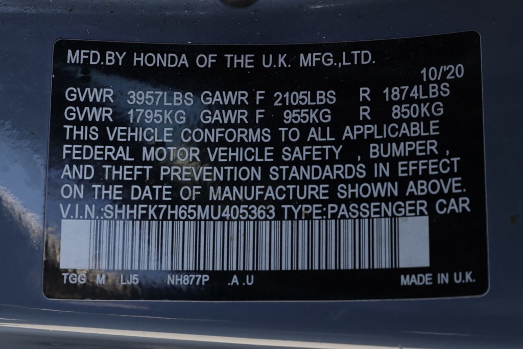 UsedThis 2021 Sonic Gray Pearl Honda Civic EX FWD is well equipped and includes these features and benefits: Black w/Fabric Seating Surfaces, 4-Wheel Disc Brakes, 8 Speakers, ABS brakes, Adaptive Cruise Control: Adaptive Cruise Control (ACC) with Low-Speed Follow, Air Conditioning, Alloy wheels, AM/FM radio: SiriusXM, Apple CarPlay/Android Auto, Auto High-beam Headlights, Automatic temperature control, Brake assist, Bumpers: body-color, Delay-off headlights, Driver door bin, Driver vanity mirror, Dual front impact airbags, Dual front side impact airbags, Electronic Stability Control, Emergency communication system: HondaLink, Exterior Parking Camera Rear, Fabric Seating Surfaces, Forward collision: Collision Mitigation Braking System (CMBS) + FCW mitigation, Four wheel independent suspension, Front anti-roll bar, Front Bucket Seats, Front Center Armrest, Front dual zone A/C, Front fog lights, Front reading lights, Fully automatic headlights, Heated door mirrors, Heated Front Bucket Seats, Heated front seats, Illuminated entry, Lane departure: Lane Keeping Assist System (LKAS) active, Leather Shift Knob, Low tire pressure warning, Occupant sensing airbag, Outside temperature display, Overhead airbag, Overhead console, Panic alarm, Passenger door bin, Passenger vanity mirror, Power door mirrors, Power driver seat, Power moonroof, Power steering, Power windows, Radio data system, Radio: 180-Watt HD Audio System, Rear anti-roll bar, Rear seat center armrest, Rear window defroster, Rear window wiper, Remote keyless entry, Security system, Speed control, Speed-sensing steering, Split folding rear seat, Spoiler, Steering wheel mounted audio controls, Tachometer, Telescoping steering wheel, Tilt steering wheel, Traction control, Trip computer, and Variably intermittent wipers.31/40 City/Highway MPG CARFAX One-Owner.We have many different makes and models available including a wide selection of cars, trucks, vans, and SUVs. Raceway Nissan in Riverside County has access to thousands of new and used vehicles which means we can find the right vehicle for you and your family. We are proud to serve the city of Riverside, all of the Metro Riverside County area, and the Inland Empire from our location in Moreno Valley. We are conveniently located in Riverside near the cities of San Bernardino, Redlands, Ontario, Corona, Perris, Beaumont, Temecula, Hemet and many others. We offer military discounts and work with many Credit Unions.