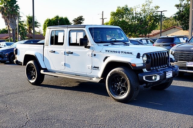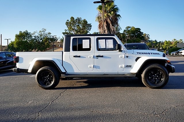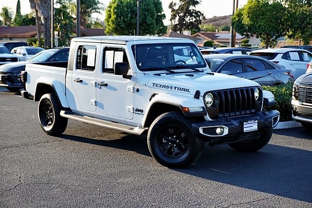This 2021 Bright White Clearcoat Jeep Gladiator Texas Trail 4WD is well equipped and includes these features and benefits:Priced below KBB Fair Purchase Price!CARFAX One-Owner.Poway Hyundai located at 13910 Poway Road, and Poway CDJR are both proud members of the Pedder Auto Group. Like our sister stores, we take great pride in serving all of San Diego County with friendly and professional sales, service and parts. We have one of the largest inventories of quality pre-owned vehicles in the county including a huge selection of Certified Pre-owned Hyundai products to choose from. We offer excellent financing, and a relaxed, no-pressure environment. All prices exclude government fees and taxes, any finance charges, any dealer document preparation charge, dealer installed options, and any emissions test charge. The equipment display is intended to be used as an informational listing of the factory stock equipment and features for this vehicle. Equipment and features may have changed for this vehicle. All information is believed to be accurate but is not guaranteed. For accurate information, pls see dealer for details. Some incentives are OAC and in lieu of others.