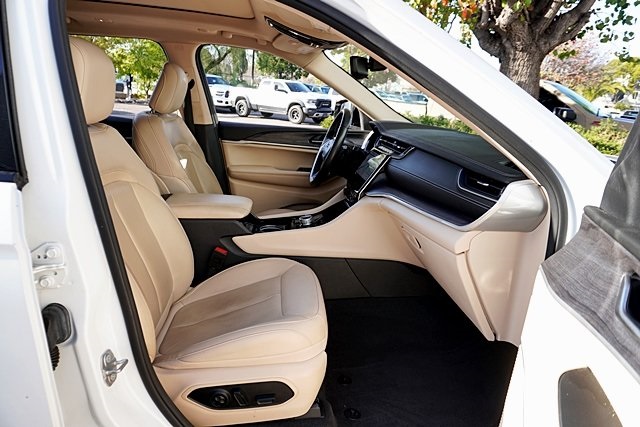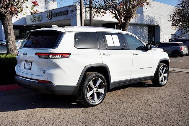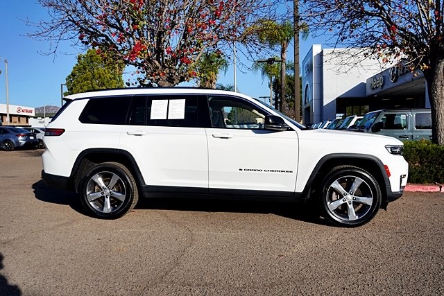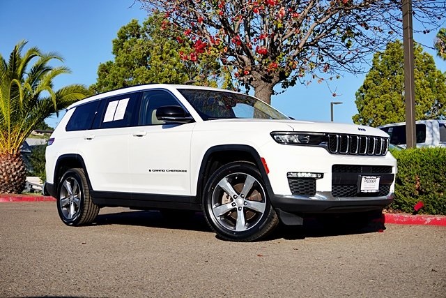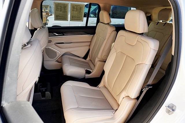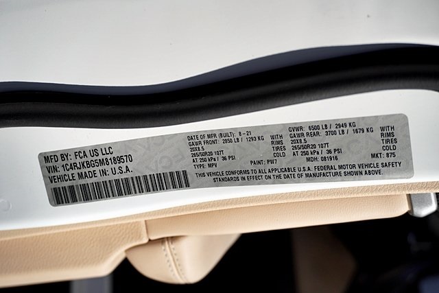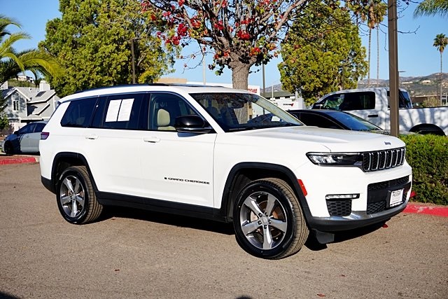 UsedThis 2021 Bright White Clearcoat Jeep Grand Cherokee L Limited 4WD is well equipped and includes these features and benefits: Quick Order Package 22E, 10.1″ Touchscreen Display, 3.45 Rear Axle Ratio, 3rd row seats: split-bench, 4-Wheel Disc Brakes, 506 Watt Amplifier, 6 Speakers, 9 Amplified Speakers w/Subwoofer, ABS brakes, Air Conditioning, Alloy wheels, AM/FM radio: SiriusXM w/360L, Anti-whiplash front head restraints, Apple CarPlay, Apple CarPlay/Android Auto, Audio memory, Auto High-beam Headlights, Automatic temperature control, Brake assist, Bridgestone Brand Tires, Bumpers: body-color, Capri Leather Seats, Compass, Connected Travel & Traffic Services, Connectivity – US/Canada, Delay-off headlights, Disassociated Touchscreen Display, Driver door bin, Driver vanity mirror, Dual front impact airbags, Dual front side impact airbags, Dual-Pane Panoramic Sunroof, Electronic Stability Control, Emergency communication system, Four wheel independent suspension, Front anti-roll bar, Front Bucket Seats, Front Center Armrest w/Storage, Front dual zone A/C, Front fog lights, Front reading lights, Fully automatic headlights, Garage door transmitter, Google Android Auto, GPS Antenna Input, GPS Navigation, HD Radio, Heated door mirrors, Heated front seats, Heated rear seats, Heated steering wheel, Illuminated entry, Integrated Center Stack Radio, Integrated Voice Command w/Bluetooth, Interior Rear Facing Camera, Knee airbag, Leather steering wheel, Low tire pressure warning, Manual Fold Seatbacks, Memory seat, Normal Duty Suspension, Occupant sensing airbag, Outside temperature display, Overhead airbag, Overhead console, Panic alarm, ParkView Rear Back-Up Camera, Passenger door bin, Passenger vanity mirror, Power door mirrors, Power driver seat, Power Liftgate, Power passenger seat, Power steering, Power windows, Radio data system, Radio: Uconnect 5 Nav w/10.1″ Display, Radio: Uconnect 5 w/8.4″ Display, Rear air conditioning, Rear anti-roll bar, Rear reading lights, Rear window defroster, Rear window wiper, Reclining 3rd row seat, Remote keyless entry, Roof rack: rails only, Security system, SiriusXM Satellite Radio, SiriusXM w/360L, Speed control, Speed-Sensitive Wipers, Split folding rear seat, Spoiler, Steering wheel mounted audio controls, Tachometer, Telescoping steering wheel, Tilt steering wheel, Traction control, Trip computer, Turn signal indicator mirrors, USB Host Flip, Variably intermittent wipers, Voltmeter, Wheels: 18″ x 8.0″ Fully Painted Aluminum 2, and Wheels: 20″ x 8.5″ Polished/Painted Aluminum (DISC) Prices shown are manufacturer suggested retail price only and do not include taxes, license, documentation fee, smog fee, dealer installed options and other applicable charges. Vehicles are subject to prior sale. Vehicle information is based on standard equipment and may vary from vehicle to vehicle. Not responsible for typographical errors. Priced below KBB Fair Purchase Price!18/25 City/Highway MPG