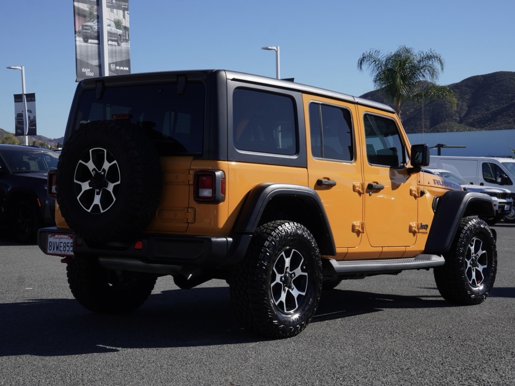Used2021 Jeep Wrangler Unlimited Rubicon 4×4 – Adventure Starts Here!Meet the Nacho Clear–Coat Rubicon that laughs in the face of pavement. With a 3.6L V6 eTorque engine, 8-speed automatic transmission, and Rock-Trac® 4:1 4WD system, this Jeep is ready to crush trails, mud, and weekend getaways.Step inside premium cloth seats with ambient LED lighting and Uconnect® 4C NAV on an 8.4-inch display, featuring Apple CarPlay®, Android Auto™, and Alpine® premium audio—because every adventure deserves a soundtrack. Optional all-weather Mopar® floor mats, Wi-Fi hotspot, and remote start make life easier, wherever you roam.Safety is serious fun here: ParkView® rear camera, electronic stability and roll mitigation, hill-start assist, trailer sway damping, heavy-duty 4-wheel disc brakes, Tru-Lok® axles, and front disconnecting stabilizer bar give you total control, on or off the road.The Rubicon looks as fierce as it drives, with 17-inch machined wheels, red tow hooks, black 3-piece hardtop, power-heated mirrors, and fog lamps. Optional packages include the Customer Preferred 25R package, premium audio group, and Jeep Trail-Rated Kit—so you’re fully equipped for adventure.Rugged. Safe. Connected. This Rubicon is ready to make every drive an epic story.CARFAX One-Owner. Priced below KBB Fair Purchase Price!FCA US LLC Certified Pre-Owned Details: * 125 Point Inspection * Limited Warranty: 3 Month/3,000 Mile (whichever comes first) after new car warranty expires or from certified purchase date * Transferable Warranty * Roadside Assistance * Warranty Deductible: $100 * Vehicles Up to 75,000 Miles and/or 5 Model Years. 24-Hour Towing & Roadside Assistance, Car Rental Allowance, CARFAX® Vehicle History ReportTM and an Introductory 3-month Subscription to SiriusXM® Satellite Radio & Certified Warranty Upgrades * Powertrain Limited Warranty: 84 Month/100,000 Mile (whichever comes first) from original in-service date * Vehicle HistoryAll vehicles subject to prior sale. The estimated selling price that appears after calculating dealer offers, financing and discounts is for informational purposes, only. You may not qualify for all the offers, incentives or financing on this page. Offers, incentives, or financing are subject to expiration, credit worthiness and other restrictions. See Lake Elsinore Chrysler Dodge Jeep Ram for qualifications and complete details or by calling (951) 291-9777. All prices plus government fees and taxes, any finance charges, $85 documentary fee, $33 electronic vehicle registration fee, any emission testing charge and $1.75 per new tire state tire fee. Offers and prices are not available to other dealers, wholesalers, or brokers. For out-of-state purchase customers, customers must be present to purchase. If shipping is required, dealership must facilitate, no exceptions. The sales price may not be combined with any other offer. The Advertised Price for any/all vehicles offered for sale does not include optional dealer pre-installed accessories or commercial upfits or aftermarket lift kit packages which can be purchased for an additional cost. Contact us for additional information at (951) 291-9773. All prices will be honored as cash.8-Speed Automatic 4WD 2021 Jeep Wrangler Unlimited Rubicon V6 4×419/24 City/Highway MPG