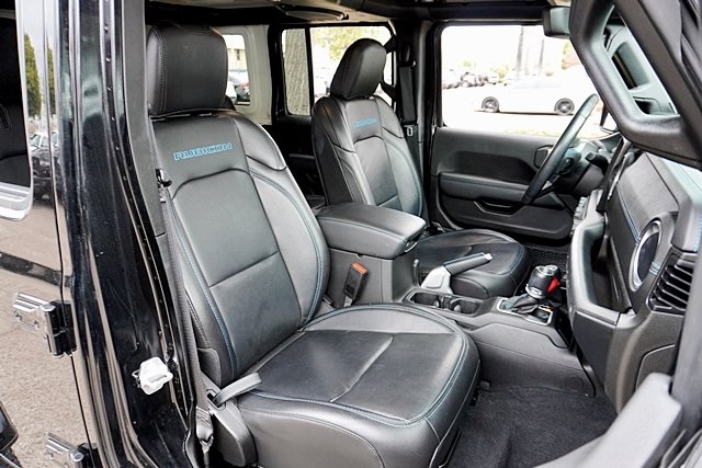 UsedThis 2021 Black Clearcoat Jeep Wrangler Unlimited Rubicon 4xe 4WD is well equipped and includes these features and benefits: Quick Order Package 29V, 2.0L I4 DOHC, 4-Wheel Disc Brakes, 4.10 Rear Axle Ratio, 9 Speakers, ABS brakes, Air Conditioning, Alloy wheels, AM/FM radio: SiriusXM, Apple CarPlay/Android Auto, Auto-dimming Rear-View mirror, Automatic temperature control, Body Color 3-Piece Hard Top, Body Color Fender Flares, Brake assist, Compass, Delay-off headlights, Driver door bin, Driver vanity mirror, Dual front impact airbags, Dual front side impact airbags, Electronic Stability Control, Emergency communication system: SiriusXM Guardian, Freedom Panel Storage Bag, Front anti-roll bar, Front Bucket Seats, Front Center Armrest w/Storage, Front dual zone A/C, Front fog lights, Front License Plate Bracket, Front reading lights, Fully automatic headlights, Garage door transmitter, Heated door mirrors, Illuminated entry, Integrated roll-over protection, Jeep Trail Rated Kit, Leather steering wheel, Low tire pressure warning, Navigation System, Occupant sensing airbag, Outside temperature display, Panic alarm, ParkView Rear Back-Up Camera, Passenger door bin, Passenger vanity mirror, Performance Suspension, Power door mirrors, Power steering, Power windows, Premium Cloth Low-Back Bucket Seats, Radio data system, Radio: Uconnect 4C Nav w/8.4″ Display, Rear anti-roll bar, Rear reading lights, Rear Window Defroster, Rear Window Wiper/Washer, Remote keyless entry, Remote Proximity Keyless Entry, Remote Start System, Security system, Speed control, Split folding rear seat, Steering wheel mounted audio controls, Tachometer, Telescoping steering wheel, Tilt steering wheel, Traction control, Trip computer, Variably intermittent wipers, Voltmeter, and Wheels: 17″ x 7.5″ Machined/Painted Black Prices shown are manufacturer suggested retail price only and do not include taxes, license, documentation fee, smog fee, dealer installed options and other applicable charges. Vehicles are subject to prior sale. Vehicle information is based on standard equipment and may vary from vehicle to vehicle. Not responsible for typographical errors. CARFAX One-Owner. Priced below KBB Fair Purchase Price!