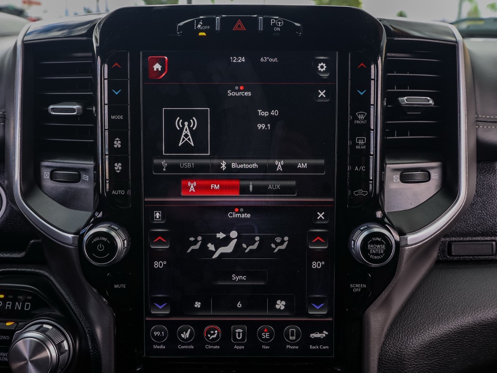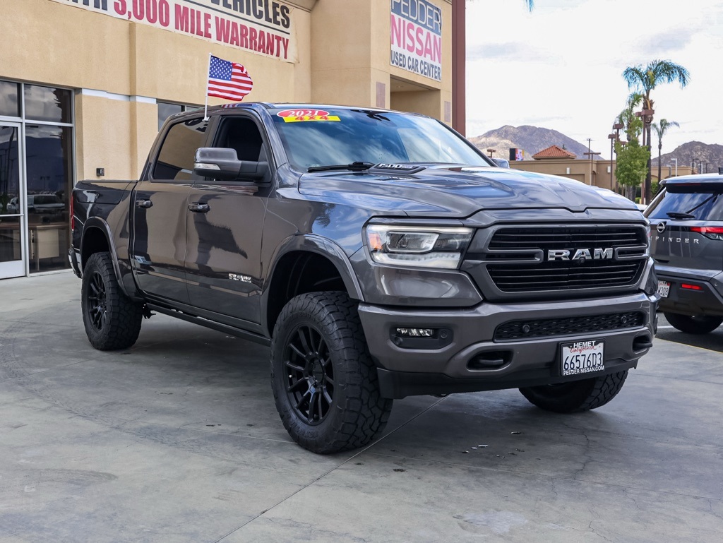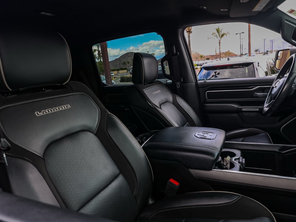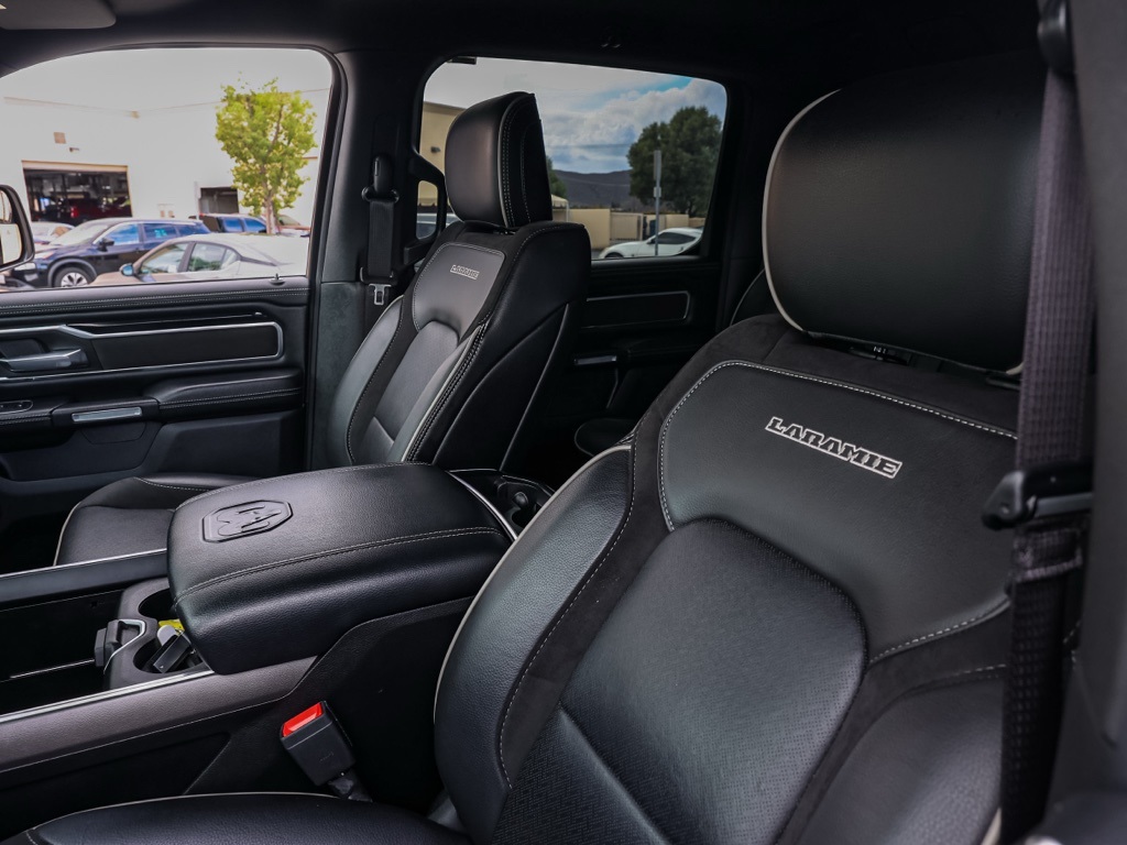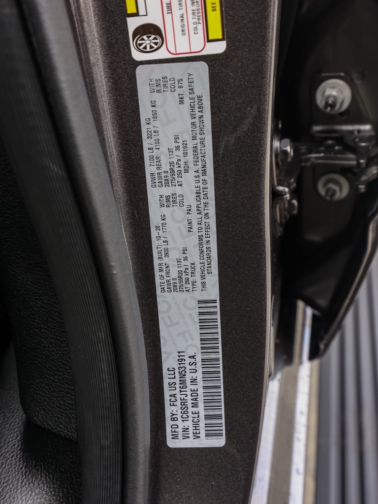 This 2021 Granite Crystal Metallic Clearcoat Ram 1500 Laramie 4WD is well equipped and includes these features and benefits: Advanced Safety Group (DISC) (Adaptive Cruise Control w/Stop & Go, Auto High Beam Headlamp Control, Lane Keep Assist, Parallel & Perp Park Assist w/Stop, and Pedestrian Emergency Braking), Bed Utility Group (MOPAR 4 Adjustable Cargo Tie-Down Hooks, MOPAR Deployable Bed Step, and Pick-Up Box Lighting), Laramie Level 2 Equipment Group (DISC) (1-Yr SiriusXM Guardian Trial, 4G LTE Wi-Fi Hot Spot, 5-Year SiriusXM Traffic Service, 5-Year SiriusXM Travel Link Service, 8.4″ Touchscreen Display, Apple CarPlay, Auto Dimming Exterior Passenger Mirror, Blind Spot & Cross Path Detection, Disassociated Touchscreen Display, Foam Bottle Insert (Door Trim Panel), For Details, Visit DriveUconnect.com, For More Info, Call 800-643-2112, Google Android Auto, GPS Antenna Input, GPS Navigation, HD Radio, Heated Second Row Seats, Integrated Center Stack Radio, Integrated Voice Command w/Bluetooth, ParkSense Front/Rear Park Assist w/Stop, Radio: Uconnect 4C Nav w/8.4″ Display, Rain Sensitive Windshield Wipers, Rear 60/40 Folding Split Recline Seat, Rear Underseat Compartment Storage, Remote Tailgate Release, SiriusXM Radio Service, SiriusXM Satellite Radio, SiriusXM Traffic Plus, SiriusXM Travel Link, Tailgate Ajar Warning Lamp, and USB Host Flip), Protection Group (Tow Hooks), Quick Order Package 25H Laramie, Sport Appearance Package (Black Interior Accents, Body Color Door Handles, Body Color Exterior Mirrors, Body Color Front Bumper, Body Color Premium Power Mirrors, Body Color Rear Bumper w/Step Pads, Grille Surround 3 Body Color Tex 2 Black, Sport Decal, Sport Performance Hood, and Wheels: 20″ x 9″ Premium Painted w/Inserts), Technology Group (DISC) (Heads-Up Display, LED CHMSL Lamp, and Rearview Autodim Digital Display Mirror), Trailer Tow Group (DISC) (Trailer Brake Control, Trailer Light Check, and Trailer Tire Pressure Monitoring System), #1 Seat Foam Cushion, 10 Speakers, 12″ Touchscreen Display, 3 Rear Seat Head Restraints, 4 Way Front Headrests, 4-Wheel Disc Brakes, 48V Belt Starter Generator, ABS brakes, Adjustable pedals, Air Conditioning, Alloy wheels, AM/FM radio: SiriusXM, Anti-Spin Differential Rear Axle, Apple CarPlay/Android Auto, Audio memory, Auto-dimming door mirrors, Auto-dimming Rear-View mirror, Automatic temperature control, Brake assist, Bumpers: chrome, Chrome Exterior Mirrors, Compass, Delay-off headlights, Driver door bin, Driver Seat Memory, Driver vanity mirror, Dual front impact airbags, Dual front side impact airbags, Electronic Stability Control, Exterior 115V AC Outlet, Front anti-roll bar, Front Center Armrest w/Storage, Front dual zone A/C, Front fog lights, Front License Plate Bracket, Front reading lights, Front Seat Back Map Pockets, Front wheel independent suspension, Fully automatic headlights, Garage door transmitter, Heated door mirrors, Heated Front Seats, Heated front seats, Heated Steering Wheel, Heated steering wheel, Illuminated entry, Leather steering wheel, Leather Trim 40/20/40 Bench Seat, Low tire pressure warning, Manufacturer’s Statement of Origin, Memory seat, MOPAR Front & Rear Rubber Floor Mats, Occupant sensing airbag, Outside temperature display, Overhead airbag, Overhead console, Panic alarm, ParkView Rear Back-Up Camera, Passenger door bin, Passenger vanity mirror, Pedal memory, Power 4-Way Driver Lumbar Adjust, Power 4-Way Passenger Lumbar Adjust, Power 8-Way Driver & Passenger Seats, Power door mirrors, Power driver seat, Power passenger seat, Power Running Boards, Power steering, Power windows, Radio data system, Radio: Uconnect 12 w/Navigation, Radio: Uconnect 4 w/8.4″ Display, RamBox Cargo Management System, Rear anti-roll bar, Rear seat center armrest, Rear step bumper, Rear window defroster, Remote keyless entry, Security system, SiriusXM w/360L, Speed control, Split folding rear seat, Steering wheel mounted audio controls, Tachometer, Telescoping steering wh