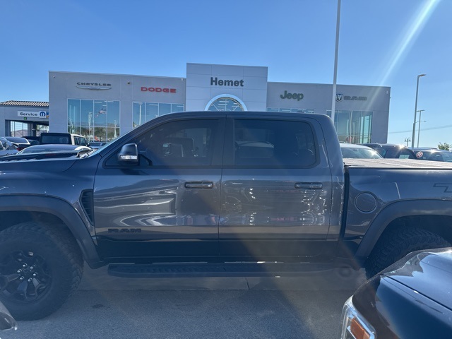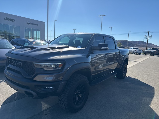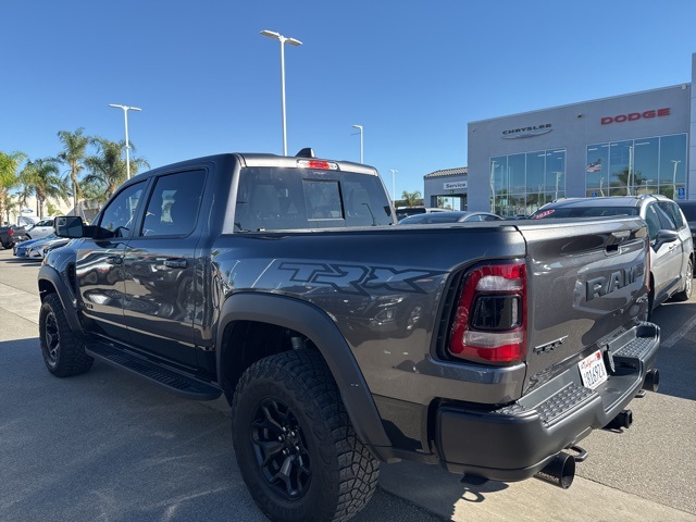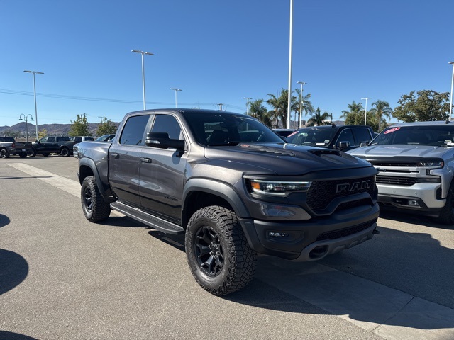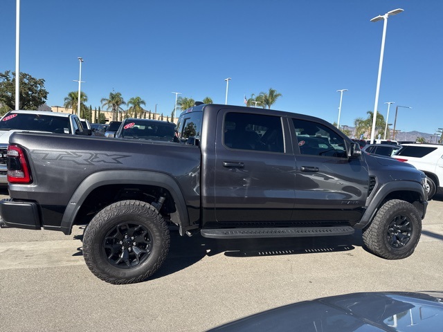 UsedThis 2021 Granite Crystal Metallic Clearcoat Ram 1500 TRX 4WD is well equipped and includes these features and benefits: Bed Utility Group (MOPAR 4 Adjustable Cargo Tie-Down Hooks, MOPAR Deployable Bed Step, and MOPAR Spray In Bedliner), Quick Order Package 29Y, TRX Level 1 Equipment Group (4 Way Front Headrests, Body Color Door Handles, Bucket Seats, Driver/Passenger Wrapped Assist Handles, Front Door Accent Lighting, Full Length Premium Upgraded Floor Console, Heated Front Seats, Heated Steering Wheel, IP LED Ambient Light Pipe, Leather Trimmed Bucket Seats, Leather/Suede Flat-Bottom Steering Wheel, Luxury Front Door Trim Panel, Pick-Up Box Lighting, Power 4-Way Driver Lumbar Adjust, Power 4-Way Passenger Lumbar Adjust, Power 8-Way Driver & Passenger Seats, Power Adjustable Pedals, Premium Wrapped IP Bezel, Rain Sensitive Windshield Wipers, Rear Door Accent Lighting, Rear Underseat Compartment Storage, Rear Window Defroster, Sun Visors w/Illuminated Vanity Mirrors, and Universal Garage Door Opener), 10 Speakers, 3.55 Rear Axle Ratio, 4-Wheel Disc Brakes, ABS brakes, Adaptive suspension, Air Conditioning, Alloy wheels, AM/FM radio: SiriusXM with 360L, Apple CarPlay/Android Auto, Auto High-beam Headlights, Auto-dimming door mirrors, Auto-dimming Rear-View mirror, Automatic temperature control, Black Exterior Mirrors, Brake assist, Cloth/Vinyl Bucket Seats, Compass, Delay-off headlights, Dome Dual LED Reading Lamp, Driver door bin, Dual front impact airbags, Dual front side impact airbags, Dual-Pane Panoramic Sunroof, Electronic Stability Control, Emergency communication system: SiriusXM Guardian, Exterior Mirrors Courtesy Lamps, Exterior Mirrors w/Heating Element, Exterior Mirrors w/Supplemental Signals, Front anti-roll bar, Front Bucket Seats, Front Center Armrest w/Storage, Front dual zone A/C, Front fog lights, Front reading lights, Front wheel independent suspension, Fully automatic headlights, Heated door mirrors, Illuminated entry, Leather Shift Knob, Leather steering wheel, Low tire pressure warning, MOPAR Off-Road Style Running Boards, Navigation System, Occupant sensing airbag, Outside temperature display, Overhead airbag, Overhead console, Panic alarm, ParkView Rear Back-Up Camera, Passenger door bin, Passenger vanity mirror, Power door mirrors, Power driver seat, Power steering, Power windows, Power-Folding Mirrors, Radio data system, Radio: Uconnect 12 w/Navigation, Rear seat center armrest, Rear step bumper, Remote keyless entry, Remote Start System, Security system, Speed control, Split folding rear seat, Sport steering wheel, Steering wheel mounted audio controls, Tachometer, Telescoping steering wheel, Tilt steering wheel, Traction control, Trip computer, Turn signal indicator mirrors, Variably intermittent wipers, Voltmeter, and Wheels: 18″ x 9″ Black Paint/Polish Aluminum. Apple Car Play/Android Auto, Automatic Climate Control. CARFAX One-Owner. 8-Speed Automatic Clean CARFAX.Recent Arrival! Odometer is 6977 miles below market average!Awards: * Motor Trend Automobiles of the year * JD Power Automotive Performance, Execution and Layout (APEAL) StudyWe have many different makes and models available including a wide selection of cars, trucks, vans, and SUV’s. Lake Elsinore CDJR auto group has access to thousands of new and used vehicles which means we can find the right vehicle FOR YOU.