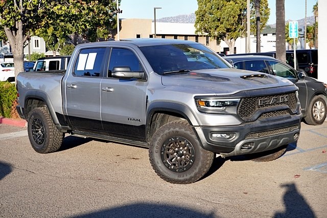 UsedThis 2021 Billet Silver Metallic Clearcoat Ram 1500 TRX 4WD is well equipped and includes these features and benefits: Bed Utility Group (MOPAR 4 Adjustable Cargo Tie-Down Hooks, MOPAR Deployable Bed Step, and MOPAR Spray In Bedliner), Quick Order Package 29Y, Trailer Tow Group (Trailer Brake Control, Trailer Light Check, and Trailer Tire Pressure Monitoring System), TRX Level 2 Equipment Group (Blind Spot & Cross Path Detection, Body Color Door Handles, Driver Seat Memory, Driver/Passenger Wrapped Assist Handles, Exterior Mirrors w/Memory, Front Door Accent Lighting, Full Length Premium Upgraded Floor Console, Heated Front Seats, Heated Second Row Seats, Heated Steering Wheel, IP LED Ambient Light Pipe, Leather Trimmed Bucket Seats, Leather/Suede Flat-Bottom Steering Wheel, Luxury Front Door Trim Panel, ParkSense Front/Rear Park Assist w/Stop, Pick-Up Box Lighting, Power 8-Way Driver & Passenger Seats, Power Adjustable Pedals w/Memory, Premium Wrapped IP Bezel, Radio/Driver Seat/Mirrors/Pedals Memory, Rain Sensitive Windshield Wipers, Rear 60/40 Folding Split Recline Seat, Rear Door Accent Lighting, Rear Underseat Compartment Storage, Rear Window Defroster, Remote Proximity Keyless Entry, Remote Start System, Remote Tailgate Release, Sun Visors w/Illuminated Vanity Mirrors, Surround View Camera System, Universal Garage Door Opener, Ventilated Front Seats, Ventilated Rear Seats, Wireless Charging Pad, 4 Way Front Headrests, Bucket Seats, Power 4-Way Driver Lumbar Adjust, and Power 4-Way Passenger Lumbar Adjust), 10 Speakers, 3.55 Rear Axle Ratio, 4-Wheel Disc Brakes, ABS brakes, Adaptive suspension, Air Conditioning, Alloy wheels, AM/FM radio: SiriusXM with 360L, Apple CarPlay/Android Auto, Auto High-beam Headlights, Auto-dimming door mirrors, Auto-dimming Rear-View mirror, Automatic temperature control, Black Exterior Mirrors, Brake assist, Cloth/Vinyl Bucket Seats, Compass, Delay-off headlights, Dome Dual LED Reading Lamp, Driver door bin, Dual front impact airbags, Dual front side impact airbags, Dual-Pane Panoramic Sunroof, Electronic Stability Control, Emergency communication system: SiriusXM Guardian, Exterior Mirrors Courtesy Lamps, Exterior Mirrors w/Heating Element, Exterior Mirrors w/Supplemental Signals, Front anti-roll bar, Front Bucket Seats, Front Center Armrest w/Storage, Front dual zone A/C, Front fog lights, Front License Plate Bracket, Front reading lights, Front wheel independent suspension, Fully automatic headlights, harman/kardon 19 Speaker Premium Sound, Heated door mirrors, Illuminated entry, Leather Shift Knob, Leather steering wheel, Low tire pressure warning, Manufacturer’s Statement of Origin, Navigation System, Occupant sensing airbag, Outside temperature display, Overhead airbag, Overhead console, Panic alarm, ParkView Rear Back-Up Camera, Passenger door bin, Passenger vanity mirror, Power door mirrors, Power driver seat, Power steering, Power windows, Power-Folding Mirrors, Radio data system, Radio: Uconnect 12 w/Navigation, Rear seat center armrest, Rear step bumper, Remote keyless entry, Security system, Speed control, Split folding rear seat, Sport steering wheel, Steering wheel mounted audio controls, Tachometer, Telescoping steering wheel, Tilt steering wheel, Traction control, Trailer Reverse Steering Control, Trip computer, Turn signal indicator mirrors, Variably intermittent wipers, Voltmeter, and Wheels: 18″ x 9″ Black Paint/Polish Aluminum Prices shown are manufacturer suggested retail price only and do not include taxes, license, documentation fee, smog fee, dealer installed options and other applicable charges. Vehicles are subject to prior sale. Vehicle information is based on standard equipment and may vary from vehicle to vehicle. Not responsible for typographical errors. Priced below KBB Fair Purchase Price!10/14 City/Highway MPGAwards: * JD Power Automotive Performance, Execution and Layout (APEAL) Study * Motor Trend Automobiles of the year