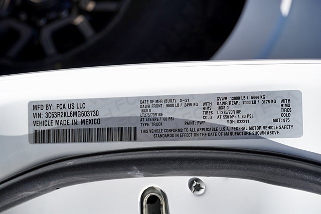 UsedThis 2021 Bright White Clearcoat Ram 3500 Laramie Longhorn RWD is well equipped and includes these features and benefits: Body Color Bumper Group (Painted Front Bumper and Painted Rear Bumper), Longhorn Level 1 Equipment Group (17 Speaker harman kardon Premium Sound, Blind Spot & Cross Path Detection, Power Deployable Running Boards, Radio: Uconnect 12.0 w/Navigation, Ramcharger Wireless Charging Pad, 1-Year SiriusXM Guardian Trial, 12″ Touchscreen Display, 4G LTE Wi-Fi Hot Spot, Apple CarPlay, Disassociated Touchscreen Display, Google Android Auto, GPS Antenna Input, GPS Navigation, HD Radio, Integrated Voice Command w/Bluetooth, Selectable Tire Fill Alert, SiriusXM Satellite Radio, SiriusXM Traffic Plus, SiriusXM Travel Link, and SiriusXM w/360L), Quick Order Package 21K Longhorn, Safety Group (Adaptive Cruise Control w/Stop, Adaptive Steering System, Digital Rearview Mirror, Full Speed Forward Collision Warning Plus, and Lane Keep Assist), Towing Technology Group (Surround View Camera System and Trailer Reverse Guidance), 50 Gallon Fuel Tank, Power Sunroof, 10 Speakers, 115V Auxiliary Rear Power Outlet, 2 Way Rear Headrest Seat, 220 Amp Alternator, 3.73 Axle Ratio, 4 Way Front Headrests, 4-Wheel Disc Brakes, 5th Wheel/Gooseneck Towing Prep Group, 8.4″ Touchscreen Display, ABS brakes, Active Noise Control System, Adjustable pedals, Air Conditioning, Alloy wheels, AM/FM radio: SiriusXM, Apple CarPlay/Android Auto, Audio memory, Auto High-beam Headlights, Auto-dimming Rear-View mirror, Automatic temperature control, Blind Spot & Cross Path Detection (DISC), Brake assist, Bucket Seats, Bumpers: chrome, Center Hub, Compass, CTR Stop Lamp w/Cargo View Camera, Dash Pass Thru Wire Circuits, Delay-off headlights, Driver door bin, Driver vanity mirror, Dual Alternators Rated At 440 Amps, Dual front impact airbags, Dual front side impact airbags, Electronic Stability Control, Electronically Controlled Throttle, Emergency communication system: SiriusXM Guardian, Exterior Parking Camera Rear, Folding Flat Load Floor Storage, Front anti-roll bar, Front Bucket Seats, Front Center Armrest w/Storage, Front dual zone A/C, Front fog lights, Front License Plate Bracket, Front reading lights, Front Seat Back Map Pockets, Full Length Premium Upgraded Floor Console, Fully automatic headlights, Garage door transmitter, Genuine wood console insert, Genuine wood dashboard insert, Genuine wood door panel insert, Heated door mirrors, Heated Front Seats, Heated front seats, Heated rear seats, Heated Second Row Seats, Heated Steering Wheel, Heated steering wheel, High Back Seats, I/P Mounted Auxiliary Switches, Illuminated entry, Integrated Center Stack Radio, Leather steering wheel, Low tire pressure warning, Manufacturer’s Statement of Origin, Memory seat, MOPAR Deployable Bed Step, Navigation System, Occupant sensing airbag, Outside temperature display, Overhead airbag, Overhead console, Panic alarm, Passenger door bin, Passenger vanity mirror, Pedal memory, Power 8-Way Adjustable Passenger Seat, Power Adjust 8-Way Driver Seat, Power door mirrors, Power driver seat, Power passenger seat, Power steering, Power windows, Premium Filigree Leather Seats, Radio data system, Radio: Uconnect 4C Nav w/8.4″ Display, Rain sensing wipers, Rear 60/40 Folding Seat, Rear reading lights, Rear seat center armrest, Rear step bumper, Rear Wheelhouse Liners, Rear window defroster, Remote keyless entry, Security system, Speed control, Split folding rear seat, Steering wheel mounted audio controls, Tachometer, Tilt steering wheel, Tip Start, Traction control, Trip computer, Turn signal indicator mirrors, Variably intermittent wipers, Ventilated Front Seats, Ventilated front seats, Voltmeter, and Wheels: 18″ x 8.0″ Polished Aluminum Prices shown are manufacturer suggested retail price only and do not include taxes, license, documentation fee, smog fee, dealer installed options and other applicable charges. Vehicles are subject to prior sale. Vehicle information is based on