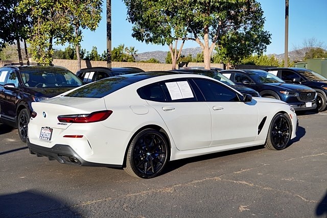 UsedThis 2022 Mineral White Metallic BMW 8 Series M850i xDrive Gran Coupe AWD is well equipped and includes these features and benefits: Comfort Seating Package (Front & Rear Heated Seats and Power Rear Sunshade & Rear Side Window Shades), Connected Package Pro, Driving Assistance Package (Active Blind Spot Detection, Active Driving Assistant, Active Park Distance Control, Drive Recorder, Parking Assistant Plus, Rear-View Camera, and Surround View w/3D View), Driving Assistance Professional Package (Active Driving Assistant Pro and Extended Traffic Jam Assistant), 16 Speakers, 4-Wheel Disc Brakes, ABS brakes, Adaptive suspension, Air Conditioning, Alloy wheels, AM/FM radio: SiriusXM with 360L, Anthracite Alcantara Headliner, Apple CarPlay & Android Auto Compatibility, Apple CarPlay Compatibility, Auto High-beam Headlights, Auto tilt-away steering wheel, Auto-dimming door mirrors, Auto-dimming Rear-View mirror, Automatic temperature control, BMW Assist eCall, BMW TeleServices, Bowers & Wilkins Diamond Surround Sound System (DISC), Brake assist, Bumpers: body-color, Carbon Fiber Trim, ConnectedDrive Services, Delay-off headlights, Door auto-latch, Driver door bin, Driver vanity mirror, Dual front impact airbags, Dual front side impact airbags, Electronic Stability Control, Emergency communication system: BMW Assist eCall, Extended Merino Leather Upholstery, Extended Shadowline Trim, Exterior Parking Camera Rear, Four wheel independent suspension, Front anti-roll bar, Front Bucket Seats, Front Center Armrest, Front dual zone A/C, Front reading lights, Front Ventilated Seats, Fully automatic headlights, Garage door transmitter, Glass Controls, harman/kardon Surround Sound System, harman/kardon® Speakers, Heads-Up Display, Heated door mirrors, Heated front seats, Heated Front Seats w/Armrests & Steering Wheel, Heated steering wheel, Illuminated entry, Leather Shift Knob, Leather steering wheel, Live Cockpit Pro w/Navi, Low tire pressure warning, Memory seat, Multi-Functional Seats, Navigation System, Occupant sensing airbag, Outside temperature display, Overhead airbag, Panic alarm, Passenger door bin, Passenger vanity mirror, Power door mirrors, Power driver seat, Power moonroof: Panorama, Power passenger seat, Power steering, Power windows, Radio data system, Radio: AM/FM Audio System, Rain sensing wipers, Rear air conditioning, Rear anti-roll bar, Rear dual zone A/C, Rear Window Blind, Rear window defroster, Remote keyless entry, Security system, SiriusXM w/360L, Speed control, Speed-sensing steering, Speed-Sensitive Wipers, Split folding rear seat, Sport steering wheel, Steering wheel memory, Steering wheel mounted audio controls, Tachometer, Telescoping steering wheel, Tilt steering wheel, Traction control, Trip computer, Turn signal indicator mirrors, Variably intermittent wipers, Ventilated front seats, Wheels: 20″ x 8″ Fr & 20″ x 9″ Rr M V-Spoke, Wheels: 20″ x 8″ Fr & 20″ x 9″ Rr M V-Spoke (1N1), WiFi Hotspot, Wireless Charging, and Wireless Charging (DISC) Apple Car Play/Android Auto, Automatic Climate Control, Backup Camera.CARFAX One-Owner.Poway Hyundai located at 13910 Poway Road, and Poway CDJR are both proud members of the Pedder Auto Group. Like our sister stores, we take great pride in serving all of San Diego County with friendly and professional sales, service and parts. We have one of the largest inventories of quality pre-owned vehicles in the county including a huge selection of Certified Pre-owned Hyundai products to choose from. We offer excellent financing, and a relaxed, no-pressure environment. All prices exclude government fees and taxes, any finance charges, any dealer document preparation charge, dealer installed options, and any emissions test charge. The equipment display is intended to be used as an informational listing of the factory stock equipment and features for this vehicle. Equipment and features may have changed for this vehicle. All information is believed to be accurate but is not guaran