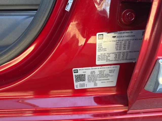 This 2022 Cherry Red Tintcoat Chevrolet Silverado 1500 High Country 4WD is well equipped and includes these features and benefits: Dark Essentials Package (LPO) (Black Name Plates (LPO)), High Capacity Suspension Package, Preferred Equipment Group 3LZ (10-Way Power Driver Seat w/Lumbar, 10-Way Power Passenger Seat Adjuster w/Lumbar, 12.3″ Multicolor Reconfigurable Digital Display, 120-Volt Bed Mounted Power Outlet, 120-Volt Instrument Panel Power Outlet, 2 USB Data Ports, 2nd Row Heated Outboard Seats, Auto-Dimming Inside Rear-View Mirror, Auto-Locking Rear Differential, Bed View Camera, Bluetooth® For Phone, Body-Color Painted Mirror Caps, Chevrolet Connected Access Capable, Chevytec Spray-On Black Bedliner, Chrome Assist Steps, Chrome Recovery Hooks, Color-Keyed Carpeting Floor Covering, Compass, Deep-Tinted Glass, Driver Memory, Dual Exhaust w/Polished Outlets, Dual Rear USB Ports (Charge Only), Electric Rear-Window Defogger, Electrical Steering Column Lock, Electronic Cruise Control, Floor Mounted Center Console, Front Carpeted Floor Mats, Front LED Fog Lamps, Front Rainsensing Wipers, HD Surround Vision, Heated Driver & Front Outboard Passenger Seats, Heated Steering Wheel, Hitch Guidance w/Hitch View, Integrated Trailer Brake Controller, Keyless Open & Start, Leather Wrapped Steering Wheel, LED Cargo Area Lighting, OnStar & Chevrolet Connected Services Capable, Outside Heated Power-Adjustable Mirrors, Perimeter Lighting, Power Front Passenger Windows w/Express Up/Down, Power Front Windows w/Driver Express Up/Down, Power Rear Windows w/Express Down, Power Sliding Rear Window w/Rear Defogger, Power Tailgate, Power Tilt & Telescoping Steering Column, Rear Carpeted Floor Mats, Rear Cross Traffic Alert-Braking, Rear Pedestrian Detection, Rear Wheelhouse Liners, Remote Vehicle Starter System, Safety Alert Seat, SiriusXM w/360L, Standard Tailgate, Steering Wheel Audio Controls, Theft Deterrent System (Unauthorized Entry), Trailer Camera Provisions, Trailer Side Blind Zone Alert, Trailering App, Ultrasonic Front & Rear Park Assist, Universal Home Remote, Ventilated Driver & Front Passenger Seats, Wi-Fi Hot Spot Capable, Wireless Charging, and Wireless Phone Projection), Technology Package (15″ Diagonal Multicolor Head-Up Display, Adaptive Cruise Control, Enhanced Automatic Emergency Braking, and Rear Camera Mirror), Trailering Package (Hitch Guidance), Up-Level Rear Seat w/Storage Package, Z71 Off-Road Package (Heavy-Duty Air Filter, Hill Descent Control, and Off-Road Suspension), 10-Speed Automatic, 4WD, Jet Black Leather, 170 Amp Alternator, 220 Amp Alternator, 3.23 Rear Axle Ratio, 4-Wheel Disc Brakes, 7 Speakers, ABS brakes, Air Conditioning, All-Weather Floor Liner (LPO) (AAK), Alloy wheels, AM/FM radio: SiriusXM with 360L, Apple CarPlay/Android Auto, Auto High-beam Headlights, Auto-dimming door mirrors, Auto-dimming Rear-View mirror, Automatic Emergency Braking, Automatic temperature control, Bodyside moldings, Brake assist, Bumpers: body-color, Delay-off headlights, Driver door bin, Driver vanity mirror, Dual front impact airbags, Dual front side impact airbags, Electronic Stability Control, Electronic Transmission Range Selector Shifter, Engine Block Heater, EZ Lift Power Lock & Release Tailgate, Following Distance Indicator, Forward Collision Alert, Front anti-roll bar, Front Black Bowtie Emblem (LPO), Front Bucket Seats, Front Center Armrest, Front dual zone A/C, Front fog lights, Front License Plate Kit, Front Pedestrian Braking, Front reading lights, Front wheel independent suspension, Fully automatic headlights, Garage door transmitter, Genuine wood console insert, Genuine wood dashboard insert, Genuine wood door panel insert, Heated door mirrors, Heated front seats, Heated rear seats, Heated steering wheel, Illuminated entry, IntelliBeam Automatic High Beam On/Off, Lane Keep Assist w/Lane Departure Warning, Low tire pressure warning, Memory seat, Molded Black Splash Guards (LPO), Multi-Flex Tailgate, Not Equipped