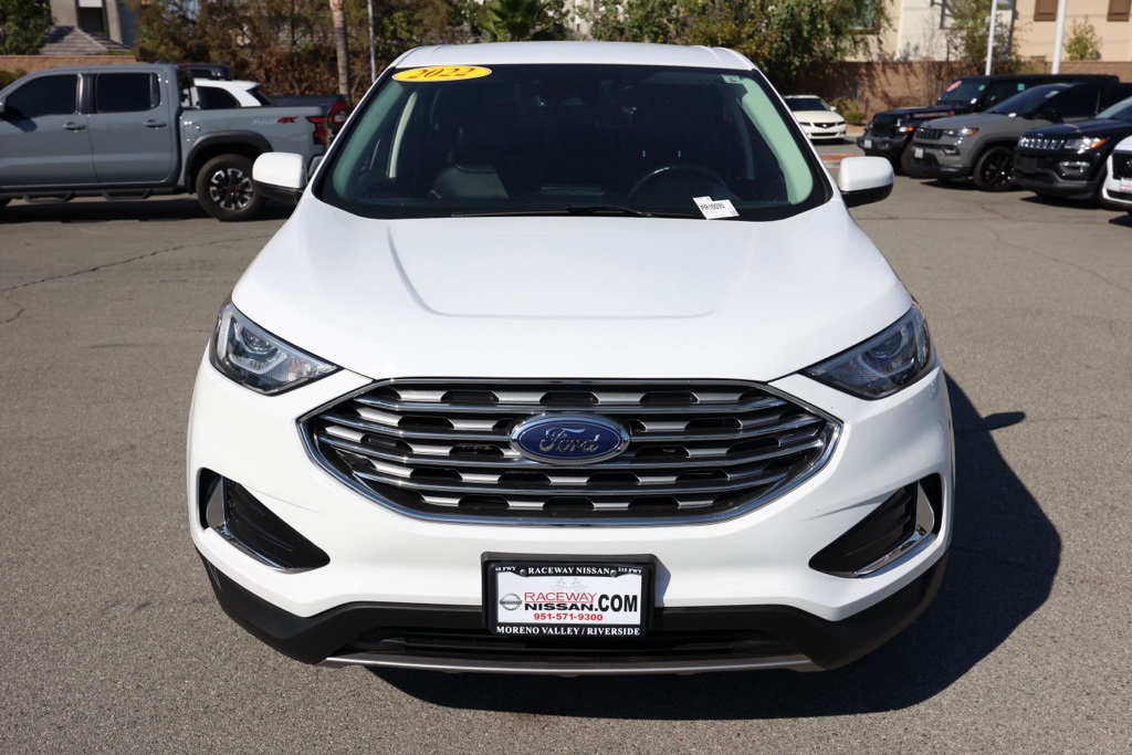 UsedThis 2022 Oxford White Ford Edge SEL AWD is well equipped and includes these features and benefits: Equipment Group 201A, AWD, 3.80 Axle Ratio, 4-Wheel Disc Brakes, 6 Speakers, ABS brakes, ActiveX Seating Material Heated Bucket Seats, Air Conditioning, Alloy wheels, AM/FM radio: SiriusXM with 360L, Auto High-beam Headlights, Auto-dimming Rear-View mirror, Automatic temperature control, Brake assist, Bumpers: body-color, Compass, Delay-off headlights, Driver door bin, Driver vanity mirror, Dual front impact airbags, Dual front side impact airbags, Electronic Stability Control, Emergency communication system: SYNC 4 911 Assist, FordPass Connect, Four wheel independent suspension, Front anti-roll bar, Front Bucket Seats, Front Center Armrest w/Storage, Front dual zone A/C, Front License Plate Bracket, Front reading lights, Fully automatic headlights, Heated door mirrors, Heated front seats, Illuminated entry, Knee airbag, Low tire pressure warning, Occupant sensing airbag, Outside temperature display, Overhead airbag, Overhead console, Panic alarm, Passenger door bin, Passenger vanity mirror, Power door mirrors, Power driver seat, Power passenger seat, Power steering, Power windows, Radio: AM/FM Stereo/MP3 Capable, Rear anti-roll bar, Rear Parking Sensors, Rear reading lights, Rear seat center armrest, Rear window defroster, Rear window wiper, Remote keyless entry, SiriusXM w/360L, Speed control, Speed-Sensitive Wipers, Split folding rear seat, Spoiler, Steering wheel mounted audio controls, SYNC 4A w/Enhanced Voice Recognition, Tachometer, Telescoping steering wheel, Tilt steering wheel, Traction control, Trip computer, Variably intermittent wipers, and Wheels: 18″ Sparkle Silver-Painted Aluminum.Priced below KBB Fair Purchase Price!21/28 City/Highway MPG CARFAX One-Owner. Clean CARFAX.We have many different makes and models available including a wide selection of cars, trucks, vans, and SUVs. Raceway Nissan in Riverside County has access to thousands of new and used vehicles which means we can find the right vehicle for you and your family. We are proud to serve the city of Riverside, all of the Metro Riverside County area, and the Inland Empire from our location in Moreno Valley. We are conveniently located in Riverside near the cities of San Bernardino, Redlands, Ontario, Corona, Perris, Beaumont, Temecula, Hemet and many others. We offer military discounts and work with many Credit Unions.