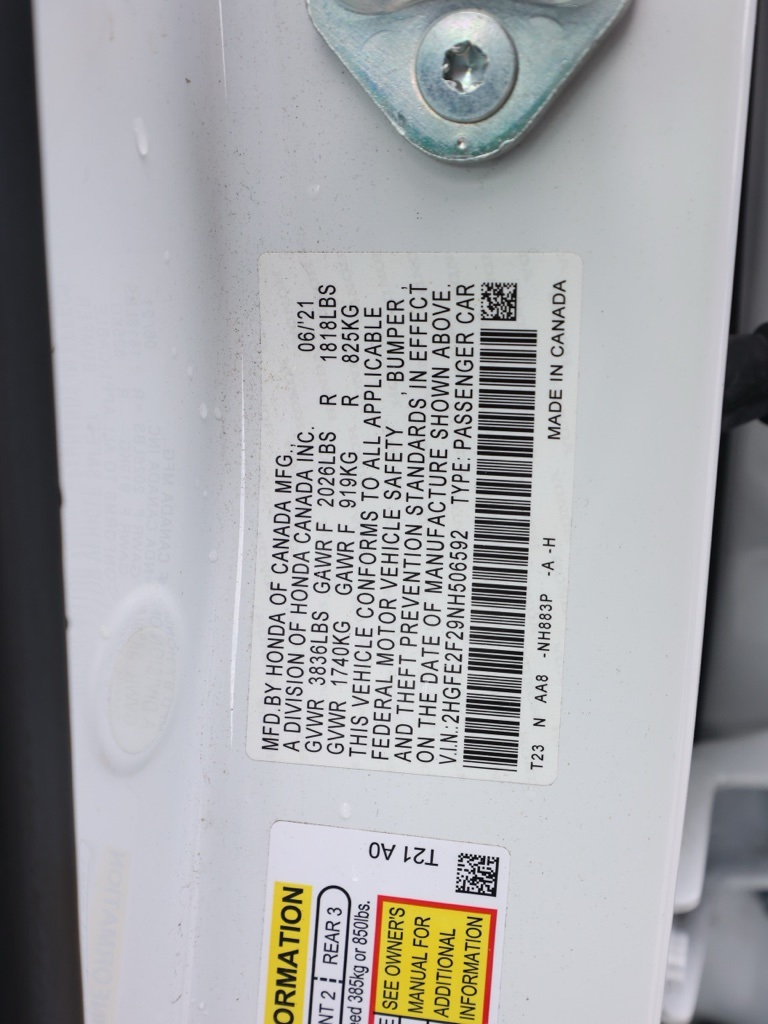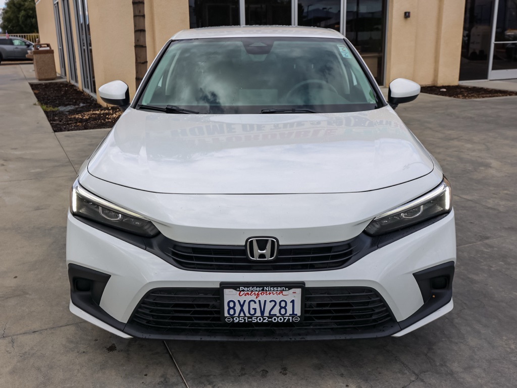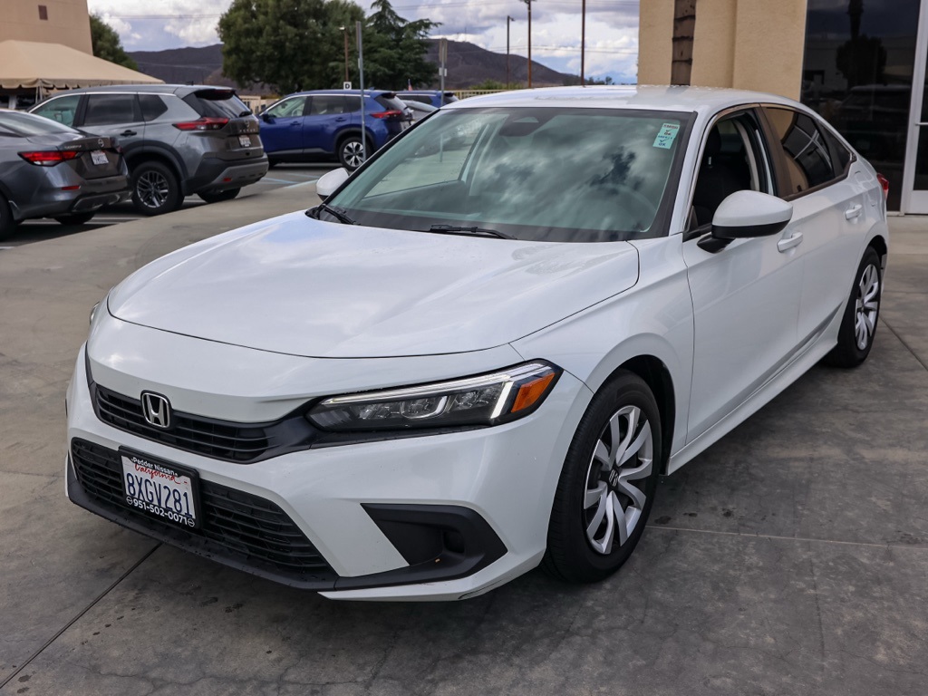 UsedThis 2022 White Honda Civic LX FWD is well equipped and includes these features and benefits: Black Cloth, 16″ Wheels w/Full Covers, 4 Speakers, 4-Wheel Disc Brakes, ABS brakes, Adaptive Cruise Control: Adaptive Cruise Control (ACC) with Low-Speed Follow, Air Conditioning, AM/FM radio, Apple CarPlay/Android Auto, Auto High-beam Headlights, Automatic temperature control, Brake assist, Bumpers: body-color, Cloth Seat Trim, Delay-off headlights, Driver door bin, Driver vanity mirror, Dual front impact airbags, Dual front side impact airbags, Electronic Stability Control, Emergency communication system: HondaLink, Exterior Parking Camera Rear, Forward collision: Collision Mitigation Braking System (CMBS) + FCW mitigation, Four wheel independent suspension, Front anti-roll bar, Front Bucket Seats, Front Center Armrest, Front reading lights, Fully automatic headlights, Illuminated entry, Knee airbag, Low tire pressure warning, Occupant sensing airbag, Outside temperature display, Overhead airbag, Panic alarm, Passenger door bin, Passenger vanity mirror, Power door mirrors, Power steering, Power windows, Radio data system, Radio: 160-Watt AM/FM Audio System, Rear anti-roll bar, Rear side impact airbag, Rear window defroster, Remote keyless entry, Security system, Speed control, Speed-sensing steering, Steering wheel mounted audio controls, Tachometer, Telescoping steering wheel, Tilt steering wheel, Traction control, and Trip computer Plus 3 Month 3000 Mile Warranty. See Dealer For Details. We have many different makes and models available including a wide selection of cars, trucks, vans, and SUV’s. Don’t see something you like! Pedder Nissan has access to thousands of new and used vehicles which means we can find the right vehicle FOR YOU. The Advertised Price for any vehicle does not include dealer installed accessories. These accessories can be purchased for an additional cost. All vehicles subject to prior sale. All prices plus government fees and taxes, any finance charges, any dealer document processing charges ($85), any electronic filing charge, and any emission testing charge. Offers and prices not available to other dealers, wholesalers, or brokers. This price may not be combined with any other offer. While every reasonable effort is made to ensure the accuracy of this information, we are not responsible for any errors or omissions contained on these pages. We are proud to serve the Hemet area from our Auto Mall Location. We work with most Credit Unions and we offer Military and First Responder discounts. Please verify all pricing, vehicle equipment, and any additional information in question with Pedder Nissan (951) 766-1446. Apple Car Play/Android Auto, Automatic Climate Control, Backup Camera, Black Cloth. CARFAX One-Owner. Priced below KBB Fair Purchase Price! 2022 Honda Civic LX31/40 City/Highway MPGAwards: * NACTOY 2022 North American Car of the Year