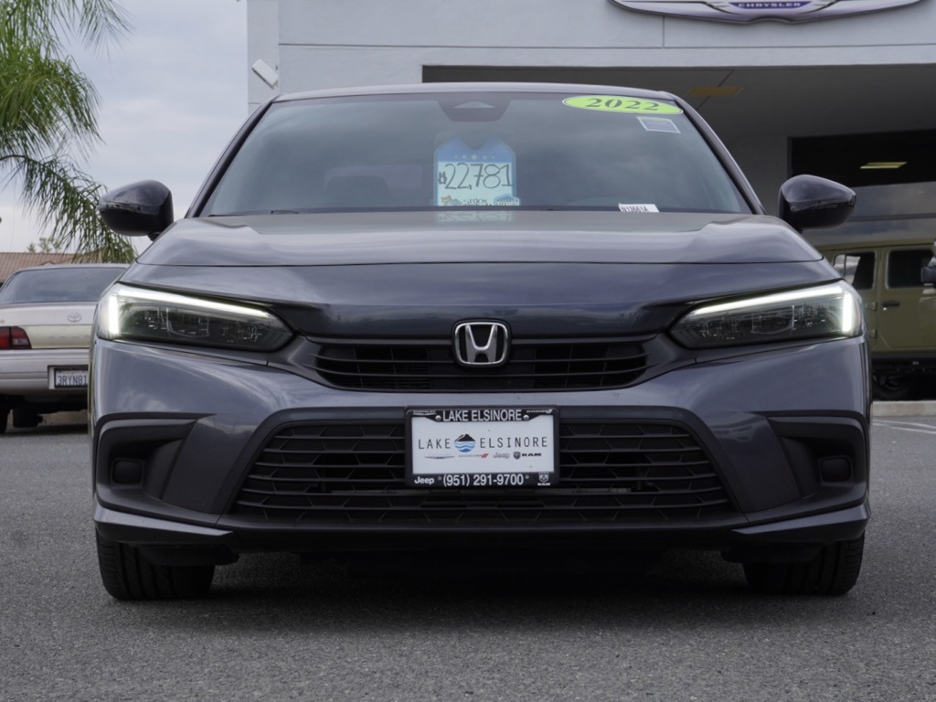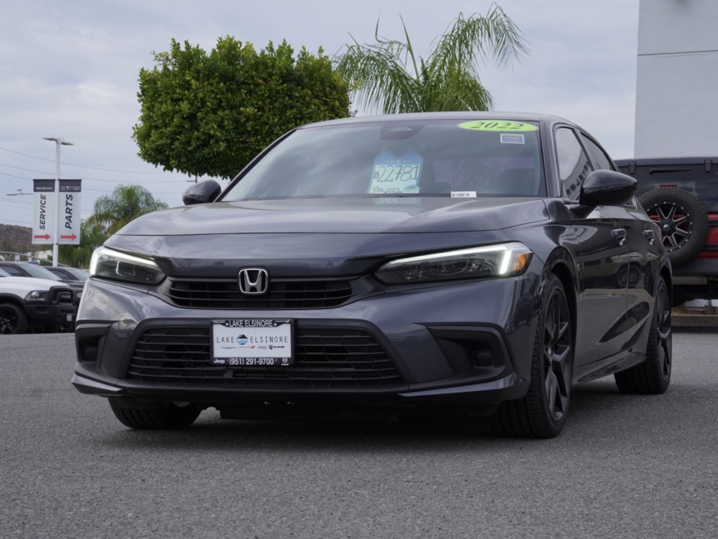 Used2022 Meteorite Gray Metallic Certified. Honda Civic 4D Sedan Sport Clean CARFAX. KARR Bluetooth Security System Anti-Theft Vehicle Security System & Protection Program, Global Positioning Tracking System (S.W.A.T.) Guaranteed Protection & Recovery Program, Finishing Touch Complete Synthetic Paint Sealant Application & Protection Program, NitroFill Advantage Nitrogen Filled Tires & Protection Program, Genuine Mopar Wheel Locks Anti-Theft Vehicle Wheel Protection, ParkView® / Park Assist Rear Back–Up Camera, Blind–Spot and Cross–Path Detection, Bluetooth Car Audio Receiver, SiriusXM® Satelite Radio, Apple Car Play/Android Auto, Automatic Climate Control, Backup Camera, 18–Inch Aluminum Painted/Polished Wheels, Civic Sport Sedan 4D, 4D Sedan, 2.0L I4 DOHC 16V i-VTEC, CVT, FWD, Meteorite Gray Metallic, Black w/Cloth Seat Trim, 18″ Black Alloy Wheels, 4-Wheel Disc Brakes, 8 Speakers, ABS brakes, Active Cruise Control, Adaptive Cruise Control: Adaptive Cruise Control (ACC) with Low-Speed Follow, Air Conditioning, Alloy wheels, AM/FM radio, Apple CarPlay/Android Auto, Auto High-beam Headlights, Automatic temperature control, Brake assist, Bumpers: body-color, Cloth Seat Trim, Delay-off headlights, Door Sill Protection Film, Driver door bin, Driver vanity mirror, Dual front impact airbags, Dual front side impact airbags, Electronic Stability Control, Emergency communication system: HondaLink, Exterior Parking Camera Rear, Forward collision: Collision Mitigation Braking System (CMBS) + FCW mitigation, Four wheel independent suspension, Front anti-roll bar, Front Bucket Seats, Front Center Armrest, Front reading lights, Fully automatic headlights, Illuminated entry, Knee airbag, Leather Shift Knob, Leather steering wheel, Low tire pressure warning, Occupant sensing airbag, Outside temperature display, Overhead airbag, Panic alarm, Passenger door bin, Passenger vanity mirror, Power door mirrors, Power steering, Power windows, Protection Package I, Radio data system, Radio: 180-Watt AM/FM Audio System, Rear anti-roll bar, Rear Bumper Applique, Rear side impact airbag, Rear window defroster, Remote keyless entry, Security system, Speed control, Speed-sensing steering, Splash Guard Set, Steering wheel mounted audio controls, Tachometer, Telescoping steering wheel, Tilt steering wheel, Traction control, Trip computer, Trunk Tray, Wheel Lock Nut (AS), Wheels: 18″ Gloss Black Alloy. Priced to Go! Unbeatable Prices: Our dynamic pricing ensures you get unbeatable prices on vehicles that not only fit your budget but also exceed your expectations. We understand the importance of getting the most value for your hard-earned money. Schedule Your Test Drive: Don’t miss out on this opportunity. Schedule your test drive now before the vehicle you desire is gone. Call us at (951) 291-9773 or visit our dealership at lakecdjr.com to experience the thrill of driving your new dream car. Join the ranks of our satisfied customers from Palm Springs, Lake Elsinore, San Jacinto, Sun City, Riverside, Menifee, Murrieta, Temecula, Moreno Valley, Perris, Escondido, Corona, and San Diego County. They’ve discovered the exceptional value we offer, and you can too. CARFAX One-Owner.Certification Program Details: • 3 Month/3,000 Mile Max Care Limited Warranty (whichever comes first). • Maximum Care covers most vehicle components (Over 5,000 Components). • 125-Point Vehicle Inspection. • CarFax Vehicle History Report. • $500 Emergency Trip Reimbursement. • 45/Day Car Rental or Taxi Allowance. • $100 “Sign-and-Go” Roadside Assistance. • $75 Additional in the instances with a trailer. • 3 Month Trial subscription to SiriusXM. • A deductible applies per covered repair visit.All vehicles subject to prior sale. The estimated selling price that appears after calculating dealer offers, financing and discounts is for informational purposes, only. You may not qualify for all the offers, incentives or financing on this page. Offers, incentives,