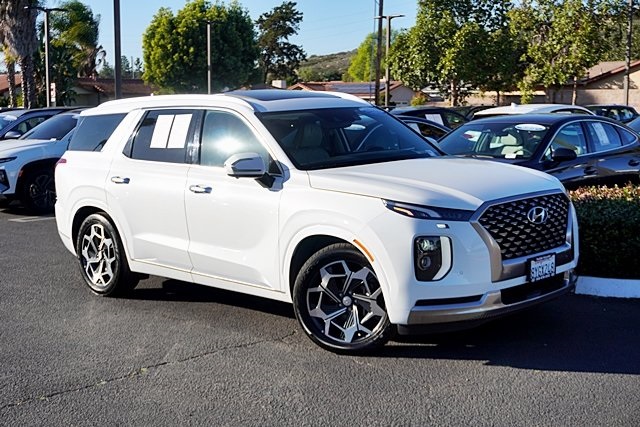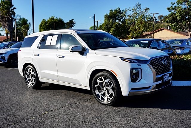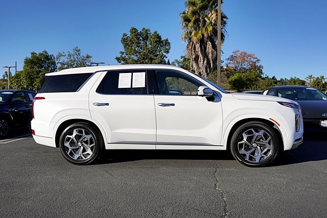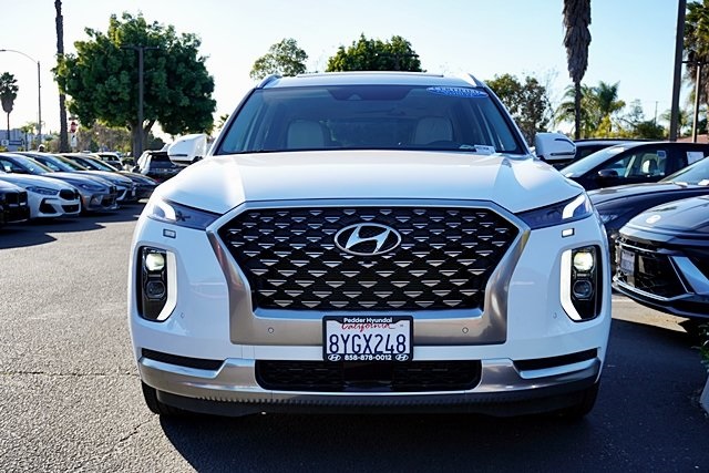 UsedThis 2022 Hyper White Hyundai Palisade Calligraphy FWD is well equipped and includes these features and benefits: Cargo Package (Cargo Block, Cargo Net, and Cargo Tray), Option Group 01, Hyundai Certified Used Vehicles Certified, 12 Speakers, 3.648 Axle Ratio, 3rd row seats: split-bench, 4-Wheel Disc Brakes, ABS brakes, Air Conditioning, Alloy wheels, AM/FM radio: SiriusXM, Apple CarPlay & Android Auto, Auto High-beam Headlights, Auto-dimming Rear-View mirror, Auto-leveling suspension, Automatic temperature control, Brake assist, Bumpers: body-color, Carpeted Floor Mats, Compass, Delay-off headlights, Driver door bin, Driver vanity mirror, Dual front impact airbags, Dual front side impact airbags, Electronic Stability Control, Emergency communication system: Blue Link Connected Car Service (3-year complimentary subscription), First Aid Kit, Four wheel independent suspension, Front anti-roll bar, Front Bucket Seats, Front Center Armrest, Front dual zone A/C, Front reading lights, Fully automatic headlights, Garage door transmitter: HomeLink, harman/kardon® Speakers, Heads-Up Display, Heated & Ventilated Front Bucket Seats, Heated door mirrors, Heated front seats, Heated rear seats, Heated steering wheel, Illuminated entry, Knee airbag, Low tire pressure warning, Memory seat, Navigation System, Occupant sensing airbag, Outside temperature display, Overhead airbag, Overhead console, Panic alarm, Passenger door bin, Passenger vanity mirror, Power door mirrors, Power driver seat, Power Liftgate, Power moonroof, Power passenger seat, Power steering, Power windows, Premium Nappa Leather Seat Trim, Radio data system, Radio: AM/FM/MP3 Premium Audio System, Rain sensing wipers, Rear air conditioning, Rear anti-roll bar, Rear audio controls, Rear reading lights, Rear window defroster, Rear window wiper, Reclining 3rd row seat, Remote keyless entry, Security system, Speed control, Speed-sensing steering, Split folding rear seat, Spoiler, Steering wheel mounted audio controls, Tachometer, Telescoping steering wheel, Tilt steering wheel, Traction control, Trip computer, Turn signal indicator mirrors, Variably intermittent wipers, Ventilated front seats, Ventilated rear seats, Wheel Locks, and Wheels: 20″ x 7.5J Calligraphy Exclusive Alloy. Apple Car Play/Android Auto, Automatic Climate Control, **CERTIFIED**, Backup Camera.CARFAX One-Owner.Certified. Hyundai Certified Used Vehicles Details: * Roadside Assistance * Includes 10-year/Unlimited Mileage Roadside Assistance with Rental Car and Trip Interruption Reimbursement; Please See Dealers for Specific Vehicle Eligibility Requirements. 10-Year/100,000 Mile Hybrid/EV Battery Warranty. 3-Months SiriusXM Trial Subscription. Complimentary 1 Year (Connected Care & Remote Pkgs). * Powertrain Limited Warranty: 120 Month/100,000 Mile (whichever comes first) from original in-service date * Limited Warranty: 60 Month/60,000 Mile (whichever comes first) from original in-service date * 173+ Point Inspection * Vehicle History * Warranty Deductible: $50Poway Hyundai located at 13910 Poway Road, and Poway CDJR are both proud members of the Pedder Auto Group. Like our sister stores, we take great pride in serving all of San Diego County with friendly and professional sales, service and parts. We have one of the largest inventories of quality pre-owned vehicles in the county including a huge selection of Certified Pre-owned Hyundai products to choose from. We offer excellent financing, and a relaxed, no-pressure environment. All prices exclude government fees and taxes, any finance charges, any dealer document preparation charge, dealer installed options, and any emissions test charge. The equipment display is intended to be used as an informational listing of the factory stock equipment and features for this vehicle. Equipment and features may have changed for this vehicle. All information is believed to be accurate but is not guaranteed. For accurate information, pls see dealer for d