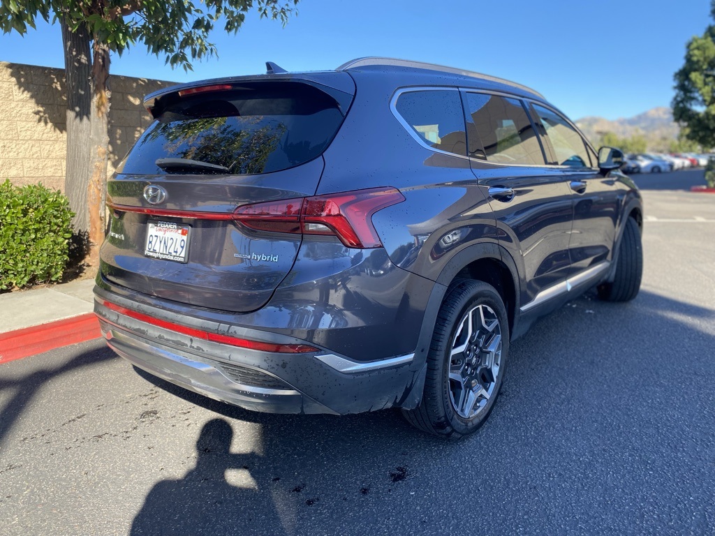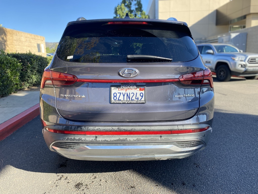 UsedThis 2022 Lagoon Blue Hyundai Santa Fe Hybrid Limited AWD is well equipped and includes these features and benefits: Option Group 01, Hyundai Certified Used Vehicles Certified, I4, 12 Speakers, 3.510 Axle Ratio, 4-Wheel Disc Brakes, ABS brakes, Air Conditioning, Alloy wheels, AM/FM radio: SiriusXM, Apple CarPlay & Android Auto, Auto High-beam Headlights, Auto-dimming Rear-View mirror, Automatic temperature control, Brake assist, Bumpers: body-color, Cargo Cover/Screen, Cargo Net, Cargo Tray, Carpeted Floor Mats, Delay-off headlights, Driver door bin, Driver vanity mirror, Dual front impact airbags, Dual front side impact airbags, Electronic Stability Control, Emergency communication system, First Aid Kit, Four wheel independent suspension, Front anti-roll bar, Front Bucket Seats, Front Center Armrest, Front dual zone A/C, Front reading lights, Fully automatic headlights, Garage door transmitter: HomeLink, harman/kardon® Speakers, Heated & Ventilated Front Bucket Seats, Heated door mirrors, Heated front seats, Heated rear seats, Heated steering wheel, Illuminated entry, Leather Seat Trim, Leather steering wheel, Low tire pressure warning, Memory seat, Mudguards, Navigation System, Occupant sensing airbag, Outside temperature display, Overhead airbag, Overhead console, Panic alarm, Passenger door bin, Passenger vanity mirror, Power door mirrors, Power driver seat, Power Liftgate, Power moonroof, Power passenger seat, Power steering, Power windows, Radio: AM/FM Harman Kardon Audio, Rain sensing wipers, Rear anti-roll bar, Rear seat center armrest, Rear window defroster, Rear window wiper, Remote keyless entry, Roof Rack Crossbars, Security system, Speed control, Speed-sensing steering, Split folding rear seat, Spoiler, Steering wheel mounted audio controls, Tachometer, Telescoping steering wheel, Tilt steering wheel, Traction control, Trip computer, Turn signal indicator mirrors, Variably intermittent wipers, Ventilated front seats, and Wheels: 19″ x 7.5J Alloy. Apple Car Play/Android Auto, Automatic Climate Control, **CERTIFIED**, Backup Camera, I4.Certified. Hyundai Certified Used Vehicles Details: * Warranty Deductible: $50 * 173+ Point Inspection * Vehicle History * Includes 10-year/Unlimited Mileage Roadside Assistance with Rental Car and Trip Interruption Reimbursement; Please See Dealers for Specific Vehicle Eligibility Requirements. 10-Year/100,000 Mile Hybrid/EV Battery Warranty. 3-Months SiriusXM Trial Subscription. Complimentary 1 Year (Connected Care & Remote Pkgs). * Roadside Assistance * Limited Warranty: 60 Month/60,000 Mile (whichever comes first) from original in-service date * Powertrain Limited Warranty: 120 Month/100,000 Mile (whichever comes first) from original in-service datePoway Hyundai located at 13910 Poway Road, and Poway CDJR are both proud members of the Pedder Auto Group. Like our sister stores, we take great pride in serving all of San Diego County with friendly and professional sales, service and parts. We have one of the largest inventories of quality pre-owned vehicles in the county including a huge selection of Certified Pre-owned Hyundai products to choose from. We offer excellent financing, and a relaxed, no-pressure environment. All prices exclude government fees and taxes, any finance charges, any dealer document preparation charge, dealer installed options, and any emissions test charge. The equipment display is intended to be used as an informational listing of the factory stock equipment and features for this vehicle. Equipment and features may have changed for this vehicle. All information is believed to be accurate but is not guaranteed. For accurate information, pls see dealer for details. Some incentives are OAC and in lieu of others.
