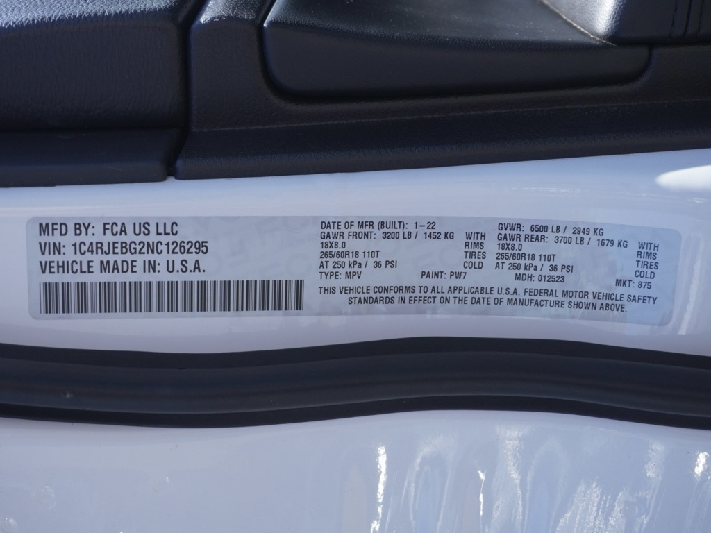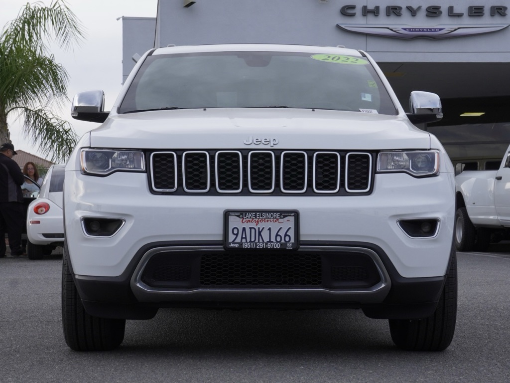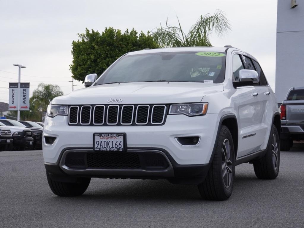 Used2022 Bright White Clearcoat Certified. Jeep Grand Cherokee 4D Sport Utility Limited Clean CARFAX. KARR Bluetooth Security System Anti-Theft Vehicle Security System & Protection Program, Global Positioning Tracking System (S.W.A.T.) Guaranteed Protection & Recovery Program, Finishing Touch Complete Synthetic Paint Sealant Application & Protection Program, NitroFill Advantage Nitrogen Filled Tires & Protection Program, Genuine Mopar Wheel Locks Anti-Theft Vehicle Wheel Protection, ParkView® / Park Assist Rear Back–Up Camera, Blind–Spot and Cross–Path Detection, Bluetooth Car Audio Receiver, SiriusXM® Satelite Radio, McKinley/Nappa/Alcantara Leather Seats, Apple Car Play/Android Auto, Automatic Climate Control, Backup Camera, Power Moonroof, 18–Inch Aluminum Painted/Polished Wheels, Grand Cherokee Limited 4X2 SUV, 4D Sport Utility, 3.6L V6 24V VVT, 8-Speed Automatic, RWD, Bright White Clearcoat, Black w/Leather Trimmed Bucket Seats, 3.27 Rear Axle Ratio, 4-Wheel Disc Brakes, 506 Watt Amplifier, 6 Speakers, ABS brakes, Active Cruise Control, Active Noise Control System, Air Conditioning, Alloy wheels, AM/FM radio: SiriusXM, Anti-whiplash front head restraints, Apple CarPlay/Android Auto, Audio memory, Auto-dimming door mirrors, Auto-dimming Rear-View mirror, Automatic temperature control, Brake assist, Bumpers: body-color, Compass, Delay-off headlights, Driver door bin, Driver vanity mirror, Dual front impact airbags, Dual front side impact airbags, Eco Suspension I, Electronic Stability Control, Emergency communication system: SiriusXM Guardian, Four wheel independent suspension, Front anti-roll bar, Front Bucket Seats, Front Center Armrest w/Storage, Front dual zone A/C, Front fog lights, Front reading lights, Fully automatic headlights, Garage door transmitter, Heated door mirrors, Heated front seats, Heated steering wheel, Illuminated entry, Knee airbag, Leather Shift Knob, Leather Trimmed Bucket Seats, Low tire pressure warning, Memory seat, MOPAR Front & Rear Door Entry Guards, Navigation System, Occupant sensing airbag, Outside temperature display, Overhead airbag, Overhead console, Panic alarm, ParkView Rear Back-Up Camera, Passenger door bin, Passenger vanity mirror, Power door mirrors, Power driver seat, Power Liftgate, Power moonroof, Power passenger seat, Power steering, Power windows, Quick Order Package 2BH, Radio data system, Radio: Uconnect 4C Nav w/8.4″ Display, Rain Sensitive Windshield Wipers, Rear anti-roll bar, Rear reading lights, Rear seat center armrest, Rear window defroster, Rear window wiper, Remote keyless entry, Security system, Speed control, Speed-sensing steering, Speed-Sensitive Wipers, Split folding rear seat, Spoiler, Steering wheel mounted audio controls, Tachometer, Telescoping steering wheel, Tilt steering wheel, Traction control, Trip computer, Turn signal indicator mirrors, Variably intermittent wipers, Wheels: 18″ x 8.0″ Tech Gray Diamond Cut. Priced to Go! Unbeatable Prices: Our dynamic pricing ensures you get unbeatable prices on vehicles that not only fit your budget but also exceed your expectations. We understand the importance of getting the most value for your hard-earned money. Schedule Your Test Drive: Don’t miss out on this opportunity. Schedule your test drive now before the vehicle you desire is gone. Call us at (951) 291-9773 or visit our dealership at lakecdjr.com to experience the thrill of driving your new dream car. Join the ranks of our satisfied customers from Palm Springs, Lake Elsinore, San Jacinto, Sun City, Riverside, Menifee, Murrieta, Temecula, Moreno Valley, Perris, Escondido, Corona, and San Diego County. They’ve discovered the exceptional value we offer, and you can too. CARFAX One-Owner. Priced below KBB Fair Purchase Price!Certification Program Details: • 7 Year/100,000 Mile Powertrain Limited Warranty (whichever comes first) • Covers repair or replacement of most major powertrain components, including transmission, engine and driveline • 3 Mo