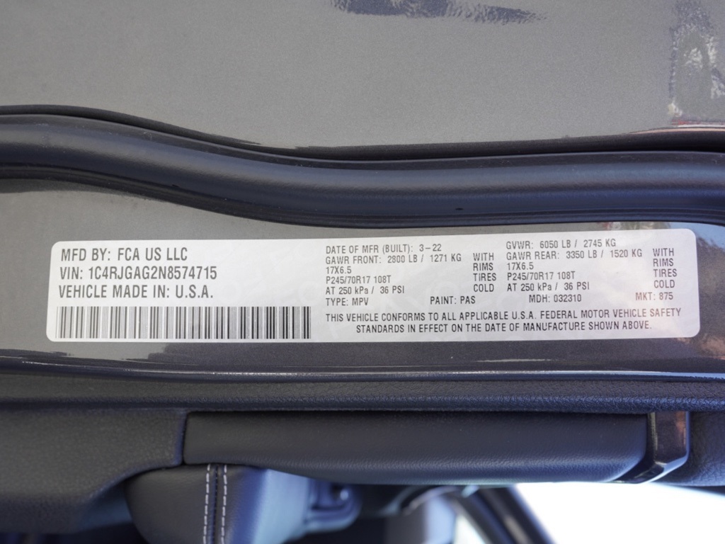 UsedRecent Arrival! 2022 Baltic Gray Metallic Clearcoat Jeep Grand Cherokee 4D Sport Utility Laredo KARR Bluetooth Security System Anti-Theft Vehicle Security System & Protection Program, Global Positioning Tracking System (S.W.A.T.) Guaranteed Protection & Recovery Program, Finishing Touch Complete Synthetic Paint Sealant Application & Protection Program, NitroFill Advantage Nitrogen Filled Tires & Protection Program, Genuine Mopar Wheel Locks Anti-Theft Vehicle Wheel Protection, ParkView® / Park Assist Rear Back–Up Camera, Blind–Spot and Cross–Path Detection, Bluetooth Car Audio Receiver, SiriusXM® Satelite Radio, Apple Car Play/Android Auto, Automatic Climate Control, Backup Camera. Priced to Go! Unbeatable Prices: Our dynamic pricing ensures you get unbeatable prices on vehicles that not only fit your budget but also exceed your expectations. We understand the importance of getting the most value for your hard-earned money. Schedule Your Test Drive: Don’t miss out on this opportunity. Schedule your test drive now before the vehicle you desire is gone. Call us at (951) 291-9773 or visit our dealership at lakecdjr.com to experience the thrill of driving your new dream car. Join the ranks of our satisfied customers from Palm Springs, Lake Elsinore, San Jacinto, Sun City, Riverside, Menifee, Murrieta, Temecula, Moreno Valley, Perris, Escondido, Corona, and San Diego County. They’ve discovered the exceptional value we offer, and you can too.All vehicles subject to prior sale. The estimated selling price that appears after calculating dealer offers, financing and discounts is for informational purposes, only. You may not qualify for all the offers, incentives or financing on this page. Offers, incentives, or financing are subject to expiration, credit worthiness and other restrictions. See Lake Elsinore Chrysler Dodge Jeep Ram for qualifications and complete details or by calling (951) 291-9777. All prices plus government fees and taxes, any finance charges, $85 documentary fee, $33 electronic vehicle registration fee, any emission testing charge and $1.75 per new tire state tire fee. Offers and prices are not available to other dealers, wholesalers, or brokers. For out-of-state purchase customers, customers must be present to purchase. If shipping is required, dealership must facilitate, no exceptions. The sales price may not be combined with any other offer. The Advertised Price for any/all vehicles offered for sale does not include optional dealer pre-installed accessories or commercial upfits or aftermarket lift kit packages which can be purchased for an additional cost. Contact us for additional information at (951) 291-9773. All prices will be honored as cash.8-Speed Automatic RWD 2022 Jeep Grand Cherokee Laredo19/26 City/Highway MPG