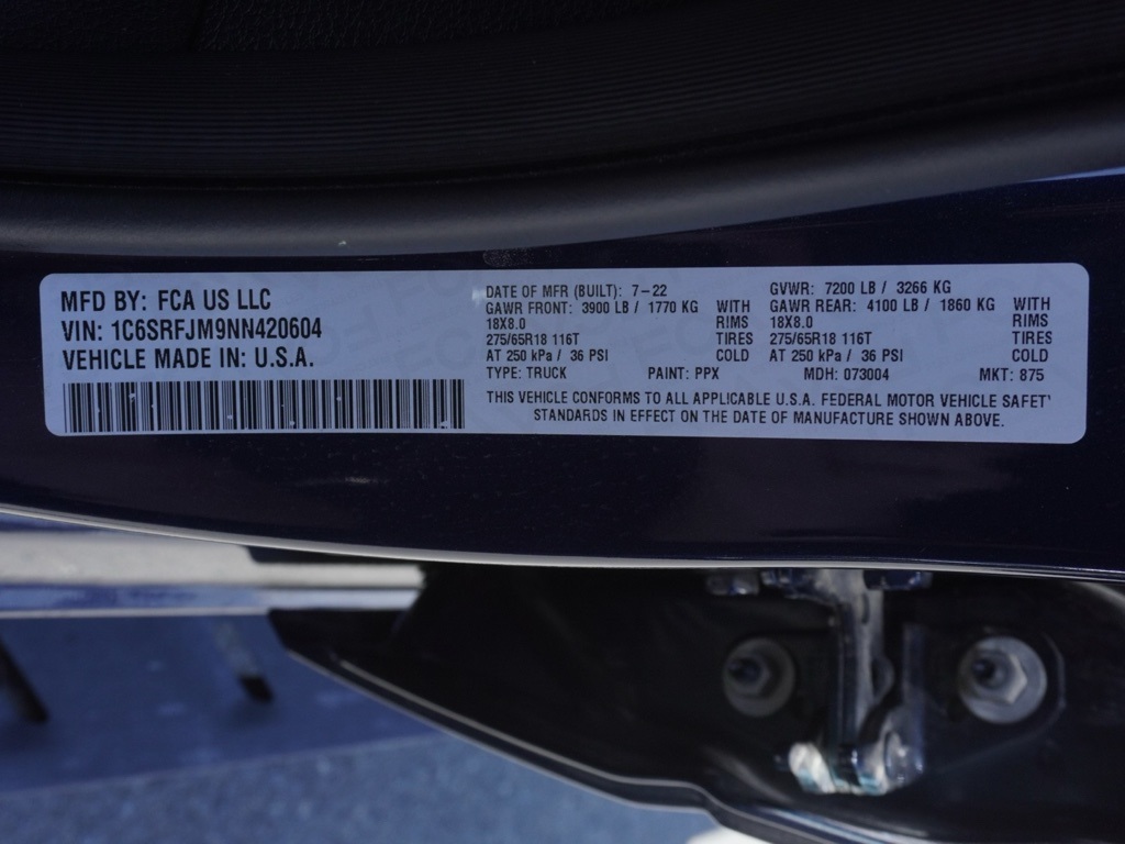 Used2022 Patriot Blue Pearlcoat Certified. Ram 1500 4D Crew Cab Laramie Clean CARFAX. CARFAX One-Owner. Priced below KBB Fair Purchase Price!Certification Program Details: • 7 Year/100,000 Mile Powertrain Limited Warranty (whichever comes first) • Covers repair or replacement of most major powertrain components, including transmission, engine and driveline • 3 Month/3,000 Mile Max Care Limited Warranty (whichever comes first) • Maximum Care covers most vehicle components (over 5,000) • 125-Point Vehicle Inspection • CarFax Vehicle History Report • 45/Day Car Rental or Taxi Allowance • $100 “Sign-and-Go” Roadside Assistance • 3 Month Trial subscription to SiriusXM • A deductible applies per covered repair visit. Priced to Go! Unbeatable Prices: Our dynamic pricing ensures you get unbeatable prices on vehicles that not only fit your budget but also exceed your expectations. We understand the importance of getting the most value for your hard-earned money. Schedule Your Test Drive: Don’t miss out on this opportunity. Schedule your test drive now before the vehicle you desire is gone. Call us at (951) 291-9773 or visit our dealership at lakecdjr.com to experience the thrill of driving your new dream car. Join the ranks of our satisfied customers from Palm Springs, Lake Elsinore, San Jacinto, Sun City, Riverside, Menifee, Murrieta, Temecula, Moreno Valley, Perris, Escondido, Corona, and San Diego County. They’ve discovered the exceptional value we offer, and you can too.All vehicles subject to prior sale. The estimated selling price that appears after calculating dealer offers, financing and discounts is for informational purposes, only. You may not qualify for all the offers, incentives or financing on this page. Offers, incentives, or financing are subject to expiration, credit worthiness and other restrictions. See Lake Elsinore Chrysler Dodge Jeep Ram for qualifications and complete details or by calling (951) 291-9777. All prices plus government fees and taxes, any finance charges, $85 documentary fee, $33 electronic vehicle registration fee, any emission testing charge and $1.75 per new tire state tire fee. Offers and prices are not available to other dealers, wholesalers, or brokers. For out-of-state purchase customers, customers must be present to purchase. If shipping is required, dealership must facilitate, no exceptions. The sales price may not be combined with any other offer. The Advertised Price for any/all vehicles offered for sale does not include optional dealer pre-installed accessories or commercial upfits or aftermarket lift kit packages which can be purchased for an additional cost. Contact us for additional information at (951) 291-9773. All prices will be honored as cash.8-Speed Automatic 4WD 2022 Ram 1500 Laramie Crew Cab 4X4 KARR Bluetooth Security System Anti-Theft Vehicle Security System & Protection Program, Global Positioning Tracking System (S.W.A.T.) Guaranteed Protection & Recovery Program, Finishing Touch Complete Synthetic Paint Sealant Application & Protection Program, NitroFill Advantage Nitrogen Filled Tires & Protection Program, Genuine Mopar Wheel Locks Anti-Theft Vehicle Wheel Protection, ParkView® / Park Assist Rear Back–Up Camera, Blind–Spot and Cross–Path Detection, Bluetooth Car Audio Receiver, SiriusXM® Satelite Radio, McKinley/Nappa/Alcantara Leather Seats, Apple Car Play/Android Auto, Automatic Climate Control, Backup Camera, 18–Inch Aluminum Painted/Polished Wheels, Trailer Tow Package, 1500 Laramie Crew Cab 4X4, 4D Crew Cab, EcoDiesel 3.0L V6, 8-Speed Automatic, 4WD, Patriot Blue Pearlcoat, Black w/Leather Trim 40/20/40 Bench Seat or Leather/Vinyl Bucket Seats or Leather Trimmed Bucket Seats, 10 Speakers, 2nd Row In Floor Storage Bins, 3 Rear Seat Head Restraints, 3.21 Rear Axle Ratio, 4 Way Front Headrests, 4-Wheel Disc Brakes, 48V Belt Starter Generator, 4G LTE Wi-Fi Hot Spot, 8.4″ Touchscreen Display, 800 Amp Maintenance Free Battery, ABS brakes