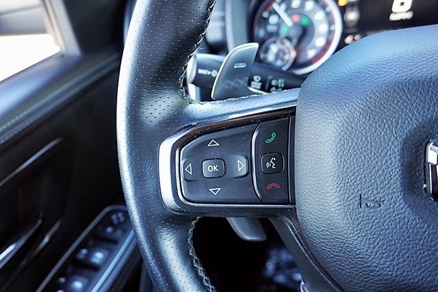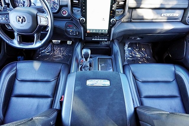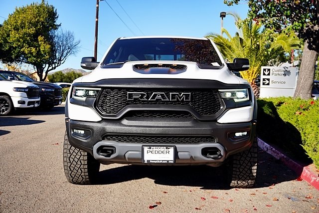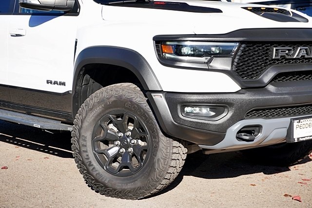 UsedThis 2022 Bright White Clearcoat Ram 1500 TRX 4WD is well equipped and includes these features and benefits: Quick Order Package 29Y, TRX Level 1 Equipment Group (Body Color Door Handles, Driver/Passenger Wrapped Assist Handles, Front Door Accent Lighting, Full Length Premium Upgraded Floor Console, Heated Steering Wheel, IP LED Ambient Light Pipe, Leather Trimmed Bucket Seats, Luxury Front Door Trim Panel, MOPAR Bright Pedal Kit, Pick-Up Box Lighting, Power 8-Way Driver & Passenger Seats, Power Adjustable Pedals, Premium Wrapped IP Bezel, Rain Sensitive Windshield Wipers, Rear Door Accent Lighting, Rear Underseat Compartment Storage, Rear Window Defroster, Sun Visors w/Illuminated Vanity Mirrors, Universal Garage Door Opener, #2 Seat Foam Cushion, 4 Way Front Headrests, Bucket Seats, Center Console Parts Module, Front Seat Back Map Pockets, Heated Front Seats, Power 4-Way Driver Lumbar Adjust, Power 4-Way Passenger Lumbar Adjust, and Rear 60/40 Folding Seat), 10 Speakers, 3.55 Rear Axle Ratio, 4-Wheel Disc Brakes, ABS brakes, Adaptive suspension, Air Conditioning, Alloy wheels, AM/FM radio: SiriusXM with 360L, Apple CarPlay/Android Auto, Auto High-beam Headlights, Auto-dimming door mirrors, Auto-dimming Rear-View mirror, Automatic temperature control, Black Exterior Mirrors, Brake assist, Cloth/Vinyl Bucket Seats, Compass, Delay-off headlights, Driver door bin, Dual front impact airbags, Dual front side impact airbags, Electronic Stability Control, Exterior Mirrors Courtesy Lamps, Exterior Mirrors w/Heating Element, Exterior Mirrors w/Supplemental Signals, Front anti-roll bar, Front Bucket Seats, Front Center Armrest w/Storage, Front dual zone A/C, Front fog lights, Front License Plate Bracket, Front reading lights, Front wheel independent suspension, Fully automatic headlights, Heated door mirrors, Illuminated entry, Leather Shift Knob, Leather steering wheel, Low tire pressure warning, Navigation System, Occupant sensing airbag, Outside temperature display, Overhead airbag, Overhead console, Panic alarm, ParkView Rear Back-Up Camera, Passenger door bin, Passenger vanity mirror, Power door mirrors, Power driver seat, Power steering, Power windows, Power-Folding Mirrors, Radio data system, Radio: Uconnect 5 Nav w/12.0″ Display, Rear seat center armrest, Rear step bumper, Remote keyless entry, Security system, Speed control, Split folding rear seat, Sport steering wheel, Steering wheel mounted audio controls, Tachometer, Telescoping steering wheel, Tilt steering wheel, Traction control, Trip computer, Turn signal indicator mirrors, Variably intermittent wipers, Voltmeter, and Wheels: 18″ x 9″ Black Paint/Polish Aluminum Prices shown are manufacturer suggested retail price only and do not include taxes, license, documentation fee, smog fee, dealer installed options and other applicable charges. Vehicles are subject to prior sale. Vehicle information is based on standard equipment and may vary from vehicle to vehicle. Not responsible for typographical errors. Priced below KBB Fair Purchase Price!10/14 City/Highway MPG