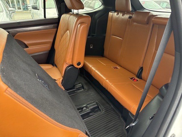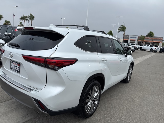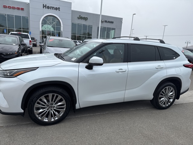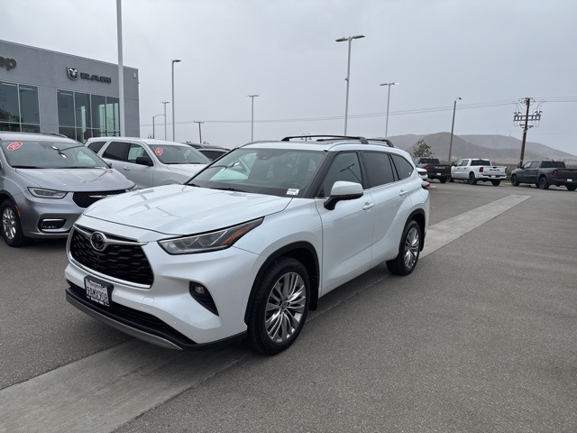 UsedThis 2022 Wind Chill Pearl Toyota Highlander Platinum FWD is well equipped and includes these features and benefits: 11 Speakers, 20″ Painted Alloy Wheels, 3.003 Axle Ratio, 3rd row seats: split-bench, 4-Wheel Disc Brakes, ABS brakes, Air Conditioning, Alloy wheels, AM/FM radio: SiriusXM, Apple CarPlay/Android Auto, Auto High-beam Headlights, Auto-dimming Rear-View mirror, Automatic temperature control, Brake assist, Bumpers: body-color, Delay-off headlights, Digital Rearview Mirror w/HomeLink, Driver door bin, Driver vanity mirror, Dual front impact airbags, Dual front side impact airbags, Electronic Stability Control, Emergency communication system: Safety Connect with 1-year trial, Four wheel independent suspension, Front anti-roll bar, Front Bucket Seats, Front Center Armrest, Front dual zone A/C, Front fog lights, Front reading lights, Fully automatic headlights, Garage door transmitter: HomeLink, Heads-Up Display, Heated door mirrors, Heated front seats, Heated rear seats, Heated steering wheel, Heated/Ventilated Front Bucket Seats, High Grade LED Projector Headlights, Illuminated entry, Knee airbag, Leather Seat Trim, Leather Shift Knob, Low tire pressure warning, Memory seat, Navigation system: Dynamic Navigation (3-year trial), Occupant sensing airbag, Outside temperature display, Overhead airbag, Overhead console, Panic alarm, Panoramic Moonroof, Panoramic View Monitor, Passenger door bin, Passenger vanity mirror, Power door mirrors, Power driver seat, Power Liftgate, Power moonroof, Power passenger seat, Power steering, Power windows, Radio: Premium Audio w/JBL Clari-Fi, Rain sensing wipers, Rear air conditioning, Rear anti-roll bar, Rear reading lights, Rear window defroster, Rear window wiper, Reclining 3rd row seat, Remote keyless entry, Roof rack: rails only, Security system, Speed control, Speed-sensing steering, Split folding rear seat, Spoiler, Steering wheel mounted audio controls, Tachometer, Telescoping steering wheel, Tilt steering wheel, Traction control, Trip computer, Turn signal indicator mirrors, Variably intermittent wipers, and Ventilated front seats. Apple Car Play/Android Auto, Automatic Climate Control. CARFAX One-Owner. 8-Speed Automatic21/29 City/Highway MPGWe have many different makes and models available including a wide selection of cars, trucks, vans, and SUV’s. Lake Elsinore CDJR auto group has access to thousands of new and used vehicles which means we can find the right vehicle FOR YOU.