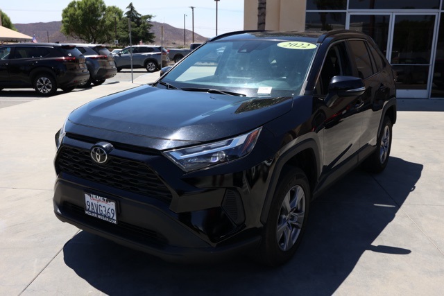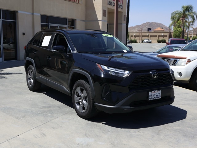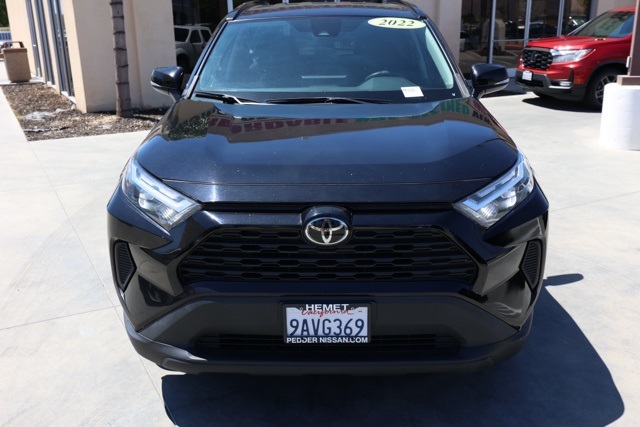 UsedThis 2022 Black Toyota RAV4 XLE FWD is well equipped and includes these features and benefits: Black Cloth, 4-Wheel Disc Brakes, 6 Speakers, ABS brakes, Air Conditioning, Alloy wheels, AM/FM radio: SiriusXM, AM/FM Stereo, Apple CarPlay/Android Auto, Auto High-beam Headlights, Automatic temperature control, Axle Ratio: 3.177, Brake assist, Bumpers: body-color, Delay-off headlights, Driver door bin, Driver vanity mirror, Dual front impact airbags, Dual front side impact airbags, Electronic Stability Control, Emergency communication system: Safety Connect with 1-year trial, Exterior Parking Camera Rear, Fabric Seat Trim, Four wheel independent suspension, Front anti-roll bar, Front Bucket Seats, Front Center Armrest, Front dual zone A/C, Front reading lights, Fully automatic headlights, Heated door mirrors, Illuminated entry, Knee airbag, Low tire pressure warning, Occupant sensing airbag, Outside temperature display, Overhead airbag, Overhead console, Panic alarm, Passenger door bin, Passenger vanity mirror, Power door mirrors, Power driver seat, Power steering, Power windows, Radio data system, Rear anti-roll bar, Rear seat center armrest, Rear window defroster, Rear window wiper, Remote keyless entry, Roof rack: rails only, Speed control, Speed-sensing steering, Split folding rear seat, Spoiler, Steering wheel mounted audio controls, Tachometer, Telescoping steering wheel, Tilt steering wheel, Traction control, Trip computer, Turn signal indicator mirrors, Variably intermittent wipers, and Wheels: 17″ 5-Spoke Silver Alloy Plus 3 Month 3000 Mile Warranty. See Dealer For Details. We have many different makes and models available including a wide selection of cars, trucks, vans, and SUV’s. Don’t see something you like! Pedder Nissan has access to thousands of new and used vehicles which means we can find the right vehicle FOR YOU. The Advertised Price for any vehicle does not include dealer installed accessories. These accessories can be purchased for an additional cost. All vehicles subject to prior sale. All prices plus government fees and taxes, any finance charges, any dealer document processing charges ($85), any electronic filing charge, and any emission testing charge. Offers and prices not available to other dealers, wholesalers, or brokers. This price may not be combined with any other offer. While every reasonable effort is made to ensure the accuracy of this information, we are not responsible for any errors or omissions contained on these pages. We are proud to serve the Hemet area from our Auto Mall Location. We work with most Credit Unions and we offer Military and First Responder discounts. Please verify all pricing, vehicle equipment, and any additional information in question with Pedder Nissan (951) 766-1446. Apple Car Play/Android Auto, Automatic Climate Control, Backup Camera, Black Cloth. CARFAX One-Owner. Priced below KBB Fair Purchase Price! 2022 Toyota RAV4 XLEClean CARFAX. 27/35 City/Highway MPG