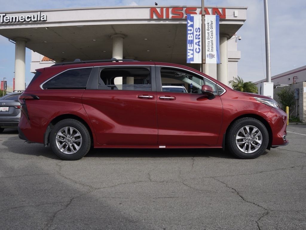 UsedRecent Arrival! CARFAX One-Owner.Certified. 2022 Ruby Flare Pearl Toyota Sienna 4D Passenger Van XLE Plus Global Positioning Tracking System (S.W.A.T.) Guaranteed Protection & Recovery Program, Finishing Touch Complete (Synthetic Paint Sealant Application & Protection Program), NitroFill Advantage (Nitrogen Filled Tires & Protection Program), Genuine Nissan Wheel Locks (Anti-Theft Vehicle Wheel Protection), ParkView® / Park Assist Rear Back–Up Camera, McKinley/Nappa/Alcantara Leather Seats, Blind–Spot and Cross–Path Detection, Bluetooth Car Audio Receiver, SiriusXM® Satelite Radio, Apple Car Play/Android Auto, Automatic Climate Control, Backup Camera, Sienna XLE Plus 8 Passenger Minivan 4D, 4D Passenger Van, 2.5L I4, CVT, FWD, Ruby Flare Pearl, Graphite w/Leather Seat Material, 17″ Alloy Wheels, 3rd row seats: split-bench, 4-Wheel Disc Brakes, 8 Speakers, ABS brakes, Air Conditioning, All Weather Floor Liners (TMS), Alloy wheels, AM/FM radio: SiriusXM, Apple CarPlay/Android Auto, Auto High-beam Headlights, Auto-dimming door mirrors, Auto-dimming Rear-View mirror, Automatic temperature control, Axle Ratio: TBA, Brake assist, Bumpers: body-color, Compass, Delay-off headlights, Door auto-latch, Door Sill Protectors (TMS), Driver door bin, Driver vanity mirror, Driver’s Seat Mounted Armrest, Dual front impact airbags, Dual front side impact airbags, Electronic Stability Control, Emergency communication system: Safety Connect with 3-year trial, Exterior Parking Camera Rear, Four wheel independent suspension, Front anti-roll bar, Front Bucket Seats, Front dual zone A/C, Front fog lights, Front Heated Bucket Seats, Front reading lights, Fully automatic headlights, Garage door transmitter: HomeLink, Heated door mirrors, Heated front seats, Illuminated entry, Knee airbag, Lane Departure Warning System, Leather Shift Knob, Leather steering wheel, Low tire pressure warning, Occupant sensing airbag, Outside temperature display, Overhead airbag, Overhead console, Panic alarm, Passenger door bin, Passenger seat mounted armrest, Passenger vanity mirror, Power door mirrors, Power driver seat, Power Liftgate, Power moonroof, Power passenger seat, Power steering, Power windows, Preferred Accessory Pkg w/Carpet Floor Mats (TMS), Protection Package (TMS), Radio data system, Radio: Audio Plus, Radio: Premium JBL Audio w/Navigation, Rear air conditioning, Rear anti-roll bar, Rear dual zone A/C, Rear reading lights, Rear side impact airbag, Rear window defroster, Rear window wiper, Reclining 3rd row seat, Remote keyless entry, SofTex Seat Trim, Speed control, Speed-sensing steering, Split folding rear seat, Spoiler, Steering wheel mounted audio controls, Tachometer, Telescoping steering wheel, Tilt steering wheel, Traction control, Trip computer, Turn signal indicator mirrors, Variably intermittent wipers, Wireless Charger, XLE Plus Package.Certification Program Details: • 3 Month/3,000 Mile Powertrain Limited Warranty (whichever comes first) • Covers repair or replacement of most major powertrain components, including transmission, engine and driveline. • Multi-Point Vehicle Inspection. • CarFax Vehicle History Report. • A deductible applies per covered repair visit.Searching for an affordable, dependable car for your family? Temecula Nissan has you covered with the lowest prices in California and the biggest selection—over 300 used, certified pre-owned, nearly new, and low-mileage vehicles ready for you! Our no-haggle, limited-time sale prices make it easy to save big, but hurry—our inventory is flying off the lot, and when a car is gone, so is the deal. Don’t let credit worries hold you back; we approve everyone, whether you have bad credit, bankruptcy, or are a first-time buyer. We believe everyone deserves a quality car! Hablamos Español y negociamos en su idioma—serving all families in our community. Imagine driving home today with zero to little money down and payments as low as $199 a month on an extensive s