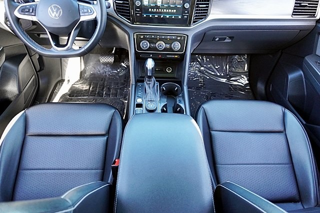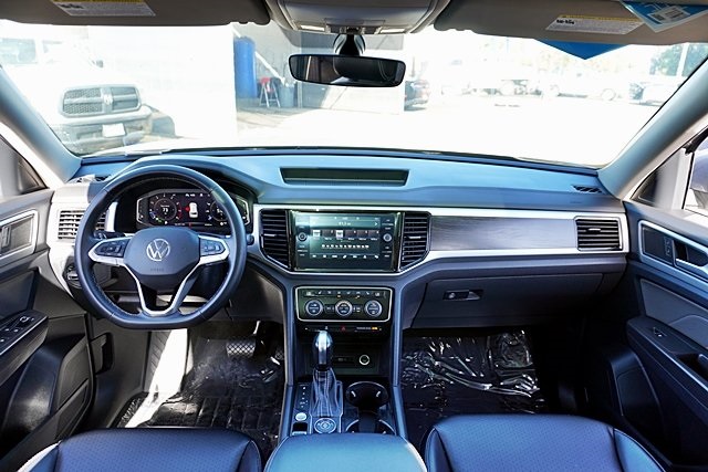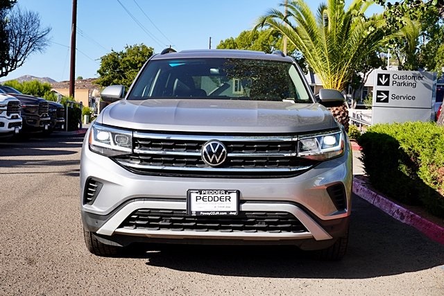 UsedThis 2022 Silver Volkswagen Atlas 3.6L V6 SE w/Technology AWD is well equipped and includes these features and benefits: 3.60 Axle Ratio, 3rd row seats: split-bench, 4-Wheel Disc Brakes, 6 Speakers, ABS brakes, Air Conditioning, Alloy wheels, AM/FM radio: SiriusXM with 360L, Auto-dimming Rear-View mirror, Automatic temperature control, Brake assist, Bumpers: body-color, Compass, Delay-off headlights, Driver door bin, Driver vanity mirror, Dual front impact airbags, Dual front side impact airbags, Electronic Stability Control, Emergency communication system, Exterior Parking Camera Rear, Four wheel independent suspension, Front anti-roll bar, Front Bucket Seats, Front Center Armrest, Front dual zone A/C, Front fog lights, Front reading lights, Fully automatic headlights, Heated Comfort Front Bucket Seats, Heated door mirrors, Heated front seats, Illuminated entry, Leather Shift Knob, Low tire pressure warning, Occupant sensing airbag, Outside temperature display, Overhead airbag, Overhead console, Panic alarm, Passenger door bin, Passenger vanity mirror, Perforated V-Tex Leatherette Seating Surfaces, Power door mirrors, Power driver seat, Power Liftgate, Power steering, Power windows, Radio data system, Radio: MIB3 Composition Media w/8″ Touchscreen, Rain sensing wipers, Rear air conditioning, Rear anti-roll bar, Rear reading lights, Rear seat center armrest, Rear window defroster, Rear window wiper, Remote keyless entry, Roof rack: rails only, Security system, Speed control, Speed-sensing steering, Split folding rear seat, Spoiler, Standard Suspension, Steering wheel mounted audio controls, Tachometer, Telescoping steering wheel, Tilt steering wheel, Traction control, Trip computer, Turn signal indicator mirrors, Variably intermittent wipers, and Wheels: 20″ x 8J 5-Spoke Silver Painted Alloy Prices shown are manufacturer suggested retail price only and do not include taxes, license, documentation fee, smog fee, dealer installed options and other applicable charges. Vehicles are subject to prior sale. Vehicle information is based on standard equipment and may vary from vehicle to vehicle. Not responsible for typographical errors. CARFAX One-Owner. Priced below KBB Fair Purchase Price!17/23 City/Highway MPG
