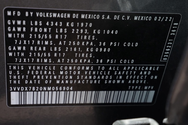 UsedThis 2022 Platinum Gray Metallic Volkswagen Taos 1.5T S FWD is well equipped and includes these features and benefits: Taos 1.5T S, 4D Sport Utility, 1.5L I4 Turbocharged DOHC 16V LEV3-SULEV30 158hp, 8-Speed Automatic with Tiptronic, FWD, Platinum Gray Metallic, Gray/Black w/Cloth Seating Surfaces, 17″ Silver Alloy Wheels, 3.23 Axle Ratio, 4-Wheel Disc Brakes, 6 Speakers, ABS brakes, Air Conditioning, Alloy wheels, AM/FM radio, Brake assist, Bumpers: body-color, Cloth Seating Surfaces, Compass, Delay-off headlights, Driver door bin, Driver vanity mirror, Dual front impact airbags, Dual front side impact airbags, Electronic Stability Control, Emergency communication system: Car-Net, Exterior Parking Camera Rear, Front anti-roll bar, Front Bucket Seats, Front Center Armrest, Front reading lights, Front Strut Rear Torsion Beam Suspension, Front wheel independent suspension, Fully automatic headlights, Illuminated entry, Low tire pressure warning, Occupant sensing airbag, Outside temperature display, Overhead airbag, Overhead console, Panic alarm, Passenger door bin, Passenger vanity mirror, Power door mirrors, Power steering, Power windows, Radio data system, Radio: Composition Color AM/FM, Rear anti-roll bar, Rear seat center armrest, Rear window defroster, Rear window wiper, Remote keyless entry, Roof rack: rails only, Speed control, Speed-sensing steering, Split folding rear seat, Spoiler, Steering wheel mounted audio controls, Tachometer, Telescoping steering wheel, Tilt steering wheel, Traction control, Trip computer, and Variably intermittent wipers. Apple Car Play/Android Auto, Automatic Climate Control, Backup Camera, Taos 1.5T S, 4D Sport Utility, 1.5L I4 Turbocharged DOHC 16V LEV3-SULEV30 158hp, 8-Speed Automatic with Tiptronic, FWD, Platinum Gray Metallic, Gray/Black w/Cloth Seating Surfaces. Recent Arrival! Clean CARFAX. CARFAX One-Owner.28/36 City/Highway MPGWe have many different makes and models available including a wide selection of cars, trucks, vans, and SUV’s. Temecula Nissan auto group has access to thousands of new and used vehicles which means we can find the right vehicle FOR YOU.