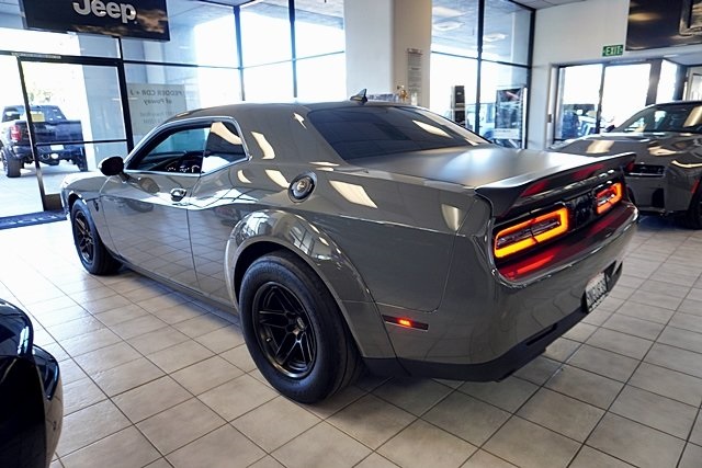 UsedThis 2023 Destroyer Gray Clearcoat Dodge Challenger SRT Hellcat Redeye Widebody RWD is well equipped and includes these features and benefits: ABS brakes, Alloy wheels, Compass, Electronic Stability Control, Front dual zone A/C, Heated door mirrors, Heated Front Seats, Heated front seats, Illuminated entry, Low tire pressure warning, ParkView Rear Back-Up Camera, Remote keyless entry, Traction control, 1-Yr SiriusXM Guardian Trial, 4-Wheel Disc Brakes, 4G LTE Wi-Fi Hot Spot, 6 Speakers, 8.4″ Touchscreen Display, Adaptive suspension, Air Conditioning, AM/FM radio: SiriusXM, Anti-whiplash front head restraints, Apple CarPlay, Apple CarPlay/Android Auto, Auto-dimming Rear-View mirror, Automatic temperature control, Body Color Exterior Mirrors, Brake assist, Bumpers: body-color, Compass Gauge, Delay-off headlights, Driver door bin, Driver vanity mirror, Dual front impact airbags, Dual front side impact airbags, Emergency communication system: SiriusXM Guardian, Exterior Mirrors w/Heating Element, For Details, Visit DriveUconnect.com, For More Info, Call 800-643-2112, Four wheel independent suspension, Front anti-roll bar, Front Bucket Seats, Front Center Armrest, Front reading lights, Fully automatic headlights, Garage door transmitter, Google Android Auto, GPS Antenna Input, HD Radio, Heated Steering Wheel, Heated steering wheel, Integrated Center Stack Radio, Integrated Voice Command w/Bluetooth, Leather Shift Knob, Media Hub (2 USB, AUX), Outside temperature display, Overhead airbag, Overhead console, Panic alarm, Passenger door bin, Passenger vanity mirror, Power door mirrors, Power driver seat, Power steering, Power windows, Radio data system, Radio: Uconnect 4C w/8.4″ Display, Rear anti-roll bar, Rear reading lights, Rear seat center armrest, Rear window defroster, Security system, Shark Fin Antenna, SiriusXM Radio Service, SiriusXM Satellite Radio, Speed control, Speed-sensing steering, Split folding rear seat, Spoiler, Sport steering wheel, SRT Hellcat Logo Houndstooth Seats, Steering wheel mounted audio controls, Tachometer, Telescoping steering wheel, Tilt steering wheel, Trip computer, USB Host Flip, Variably intermittent wipers, and Wheels: 20″ x 9.5″ Low Gloss Black Drag Prices shown are manufacturer suggested retail price only and do not include taxes, license, documentation fee, smog fee, dealer installed options and other applicable charges. Vehicles are subject to prior sale. Vehicle information is based on standard equipment and may vary from vehicle to vehicle. Not responsible for typographical errors. CARFAX One-Owner.13/22 City/Highway MPG